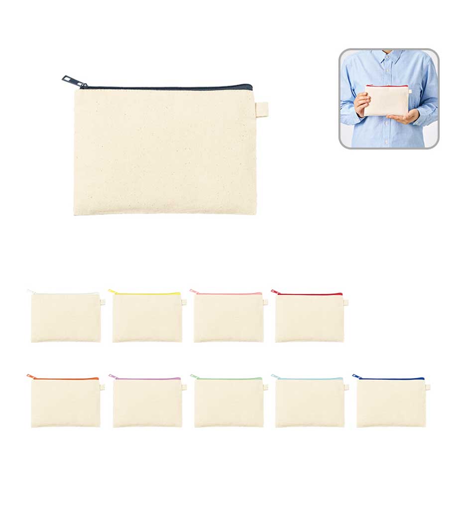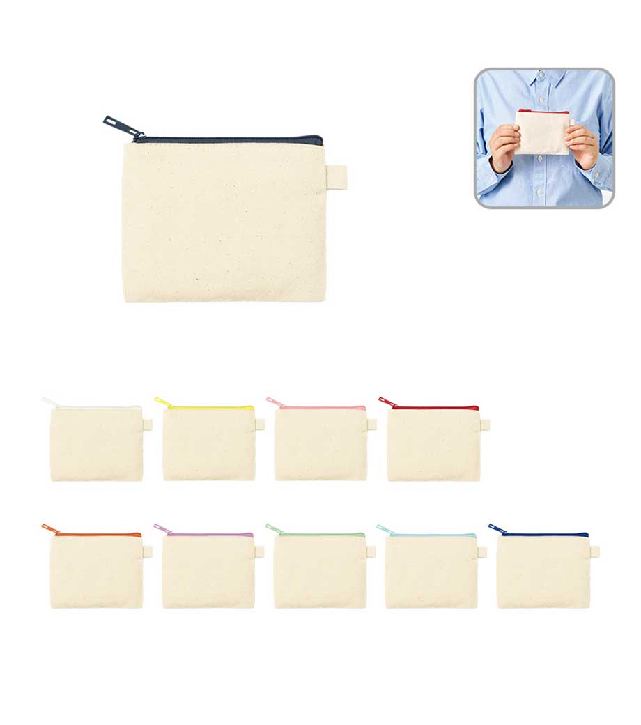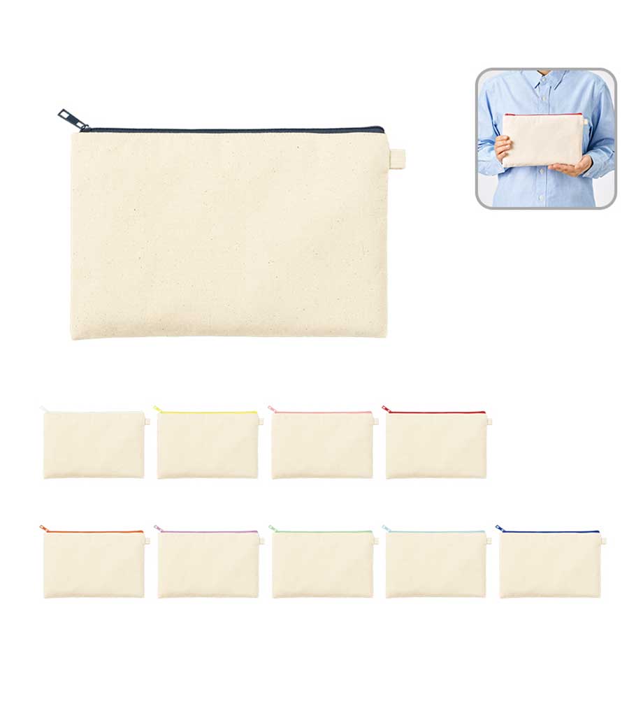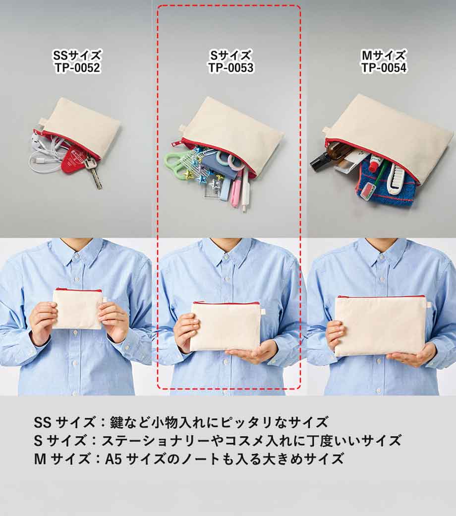 「キャンバスフラットポーチ(S)」はバッグに入れてもかさばらない薄型なので、メイクアップ用品やアクセサリー、ステーショナリーなどの持ち運びに便利。