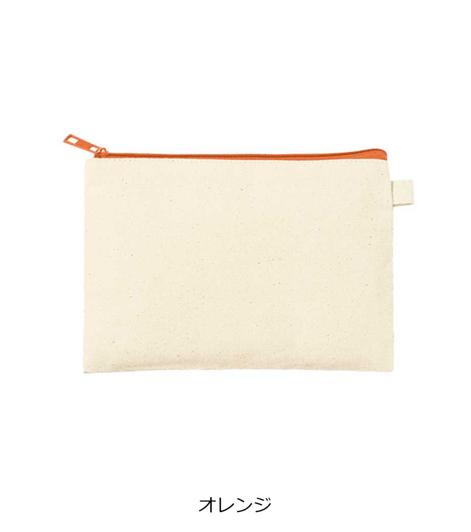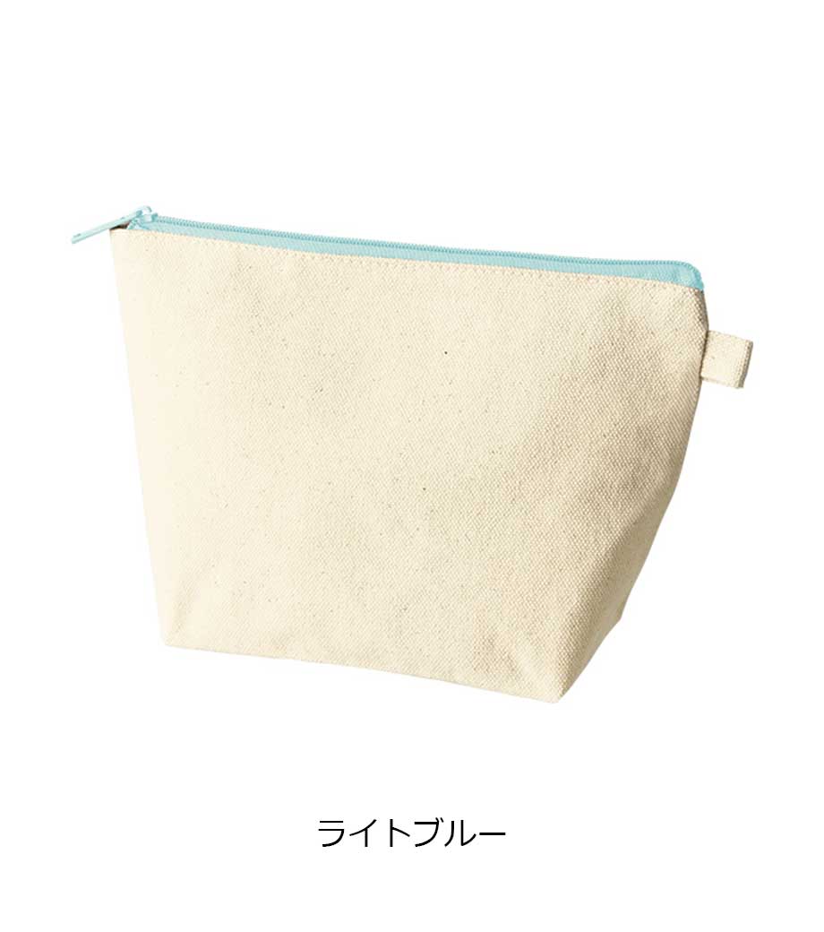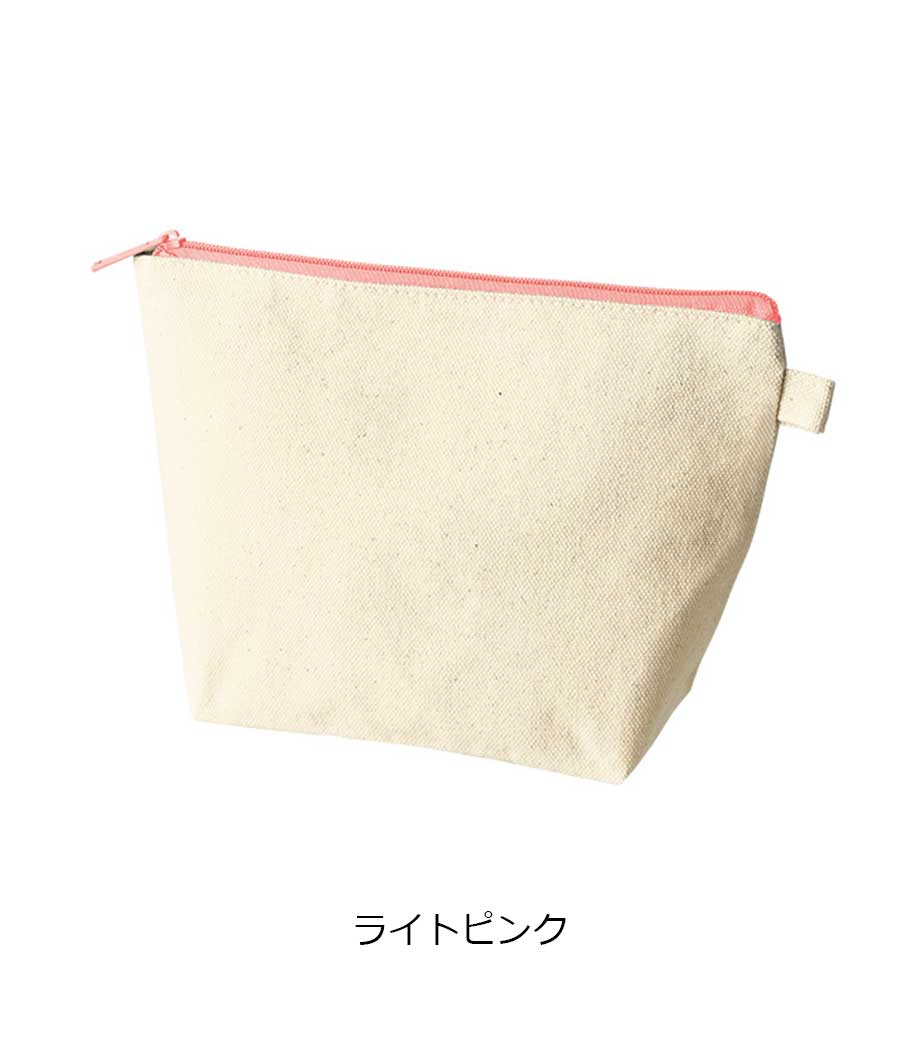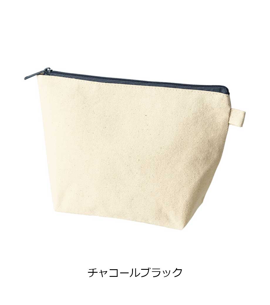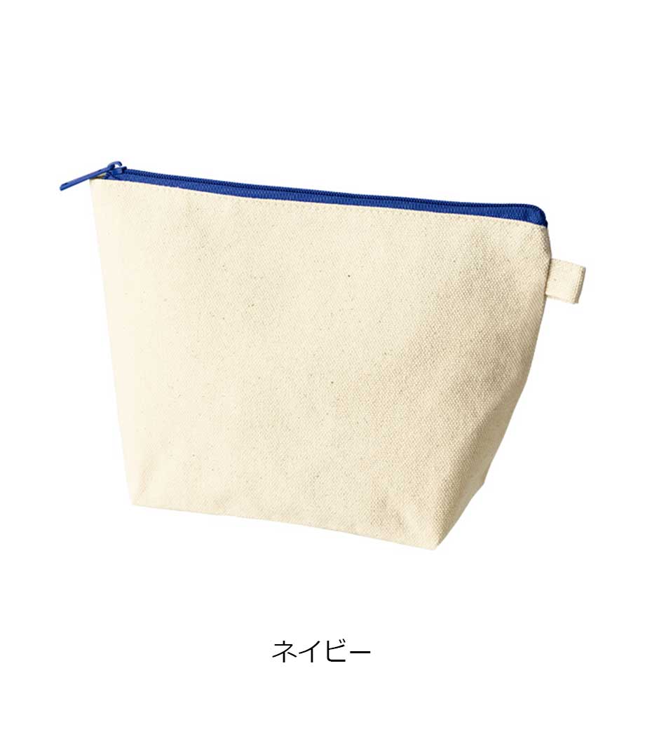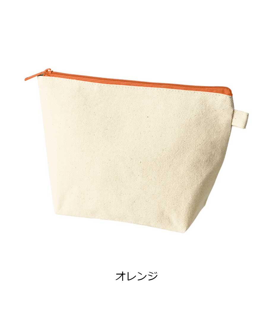 ファスナーの差し色がアクセントになったキャンバスポーチです。マチ付きでしっかり自立する舟形デザインで、コスメや小物をたっぷり収納できる使い勝手の良さが魅力です。サイドループ付きでキーホルダーやチャームも付けられ、アレンジを楽しめます。