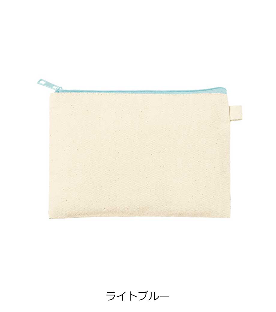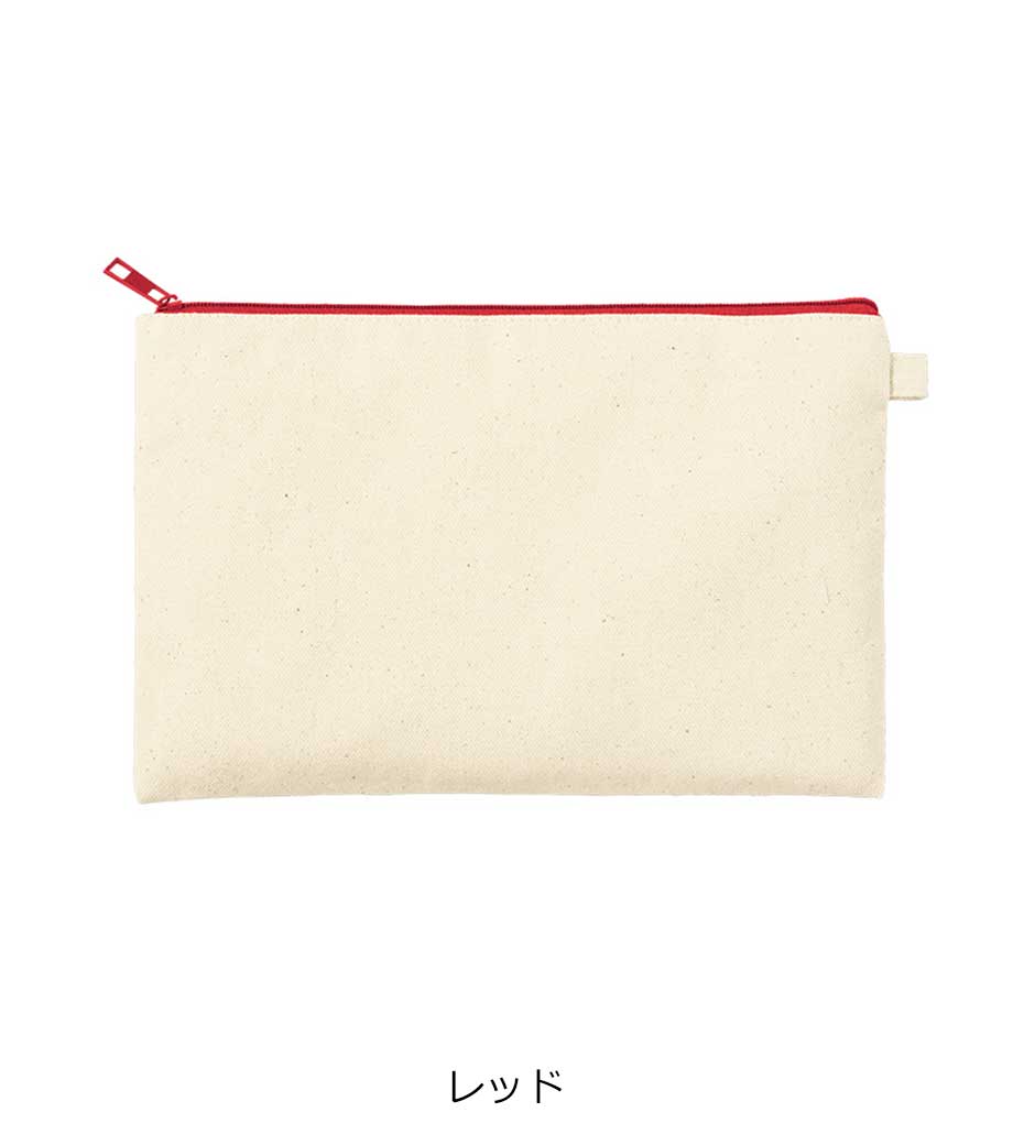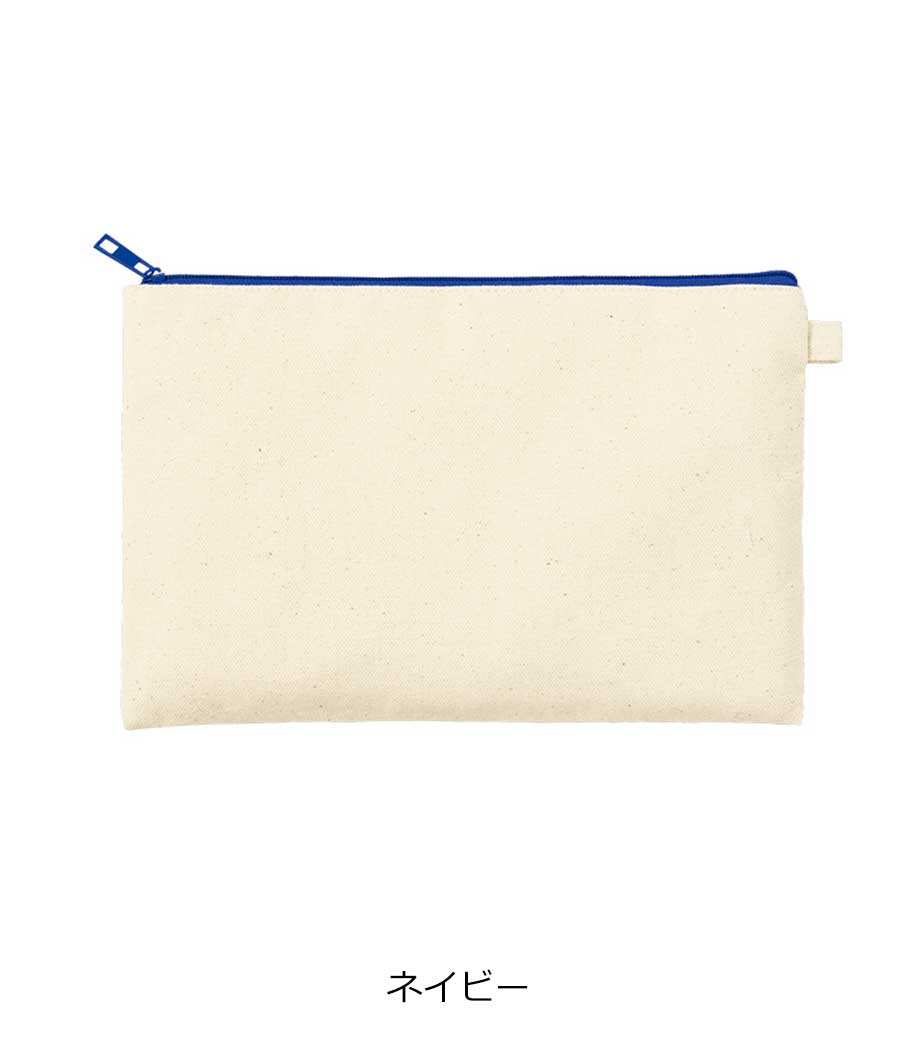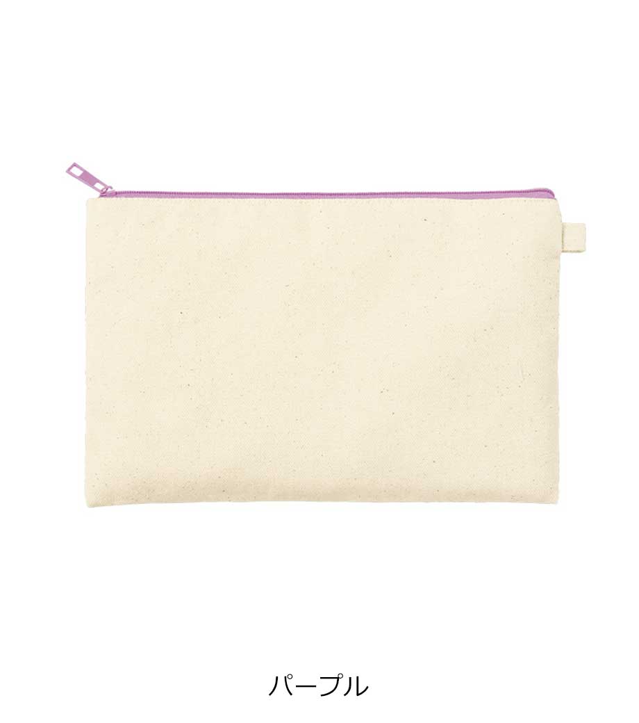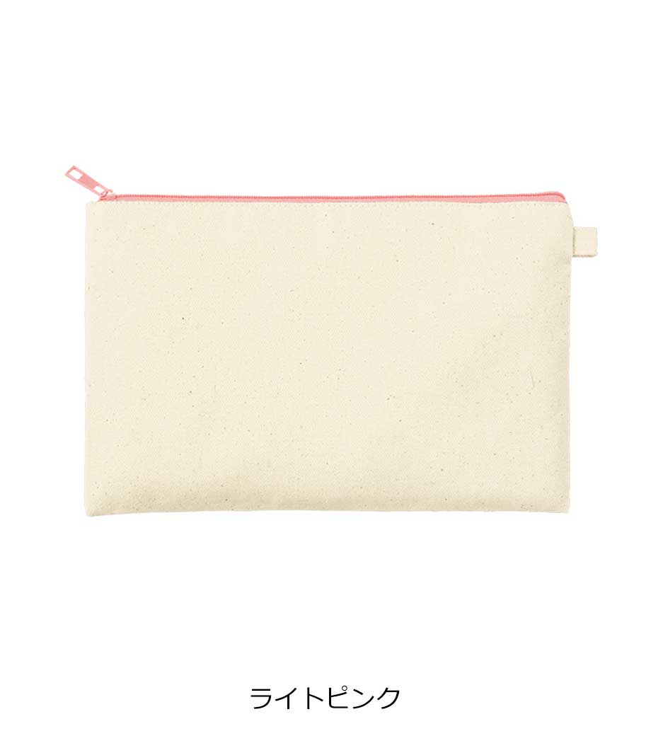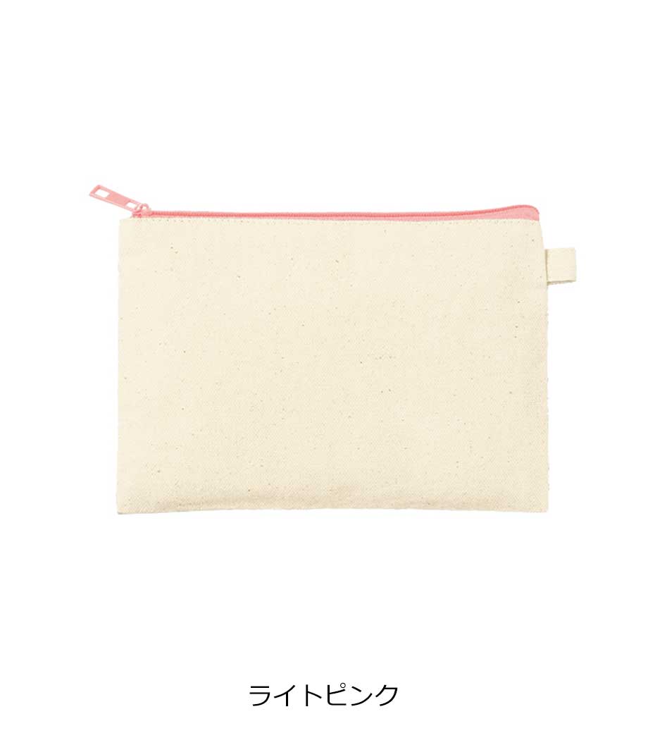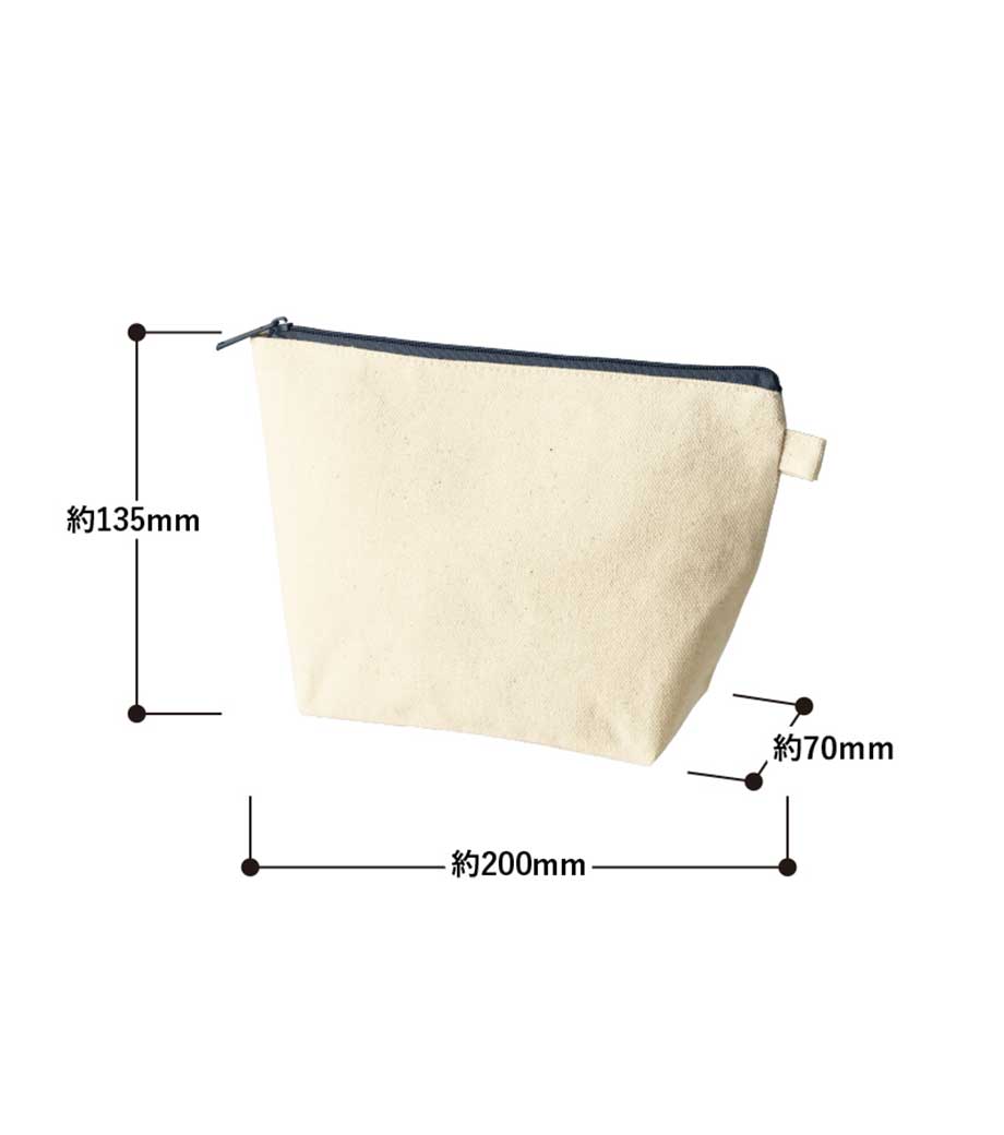 ファスナーの差し色がアクセントになったキャンバスポーチです。マチ付きでしっかり自立する舟形デザインで、コスメや小物をたっぷり収納できる使い勝手の良さが魅力です。サイドループ付きでキーホルダーやチャームも付けられ、アレンジを楽しめます。