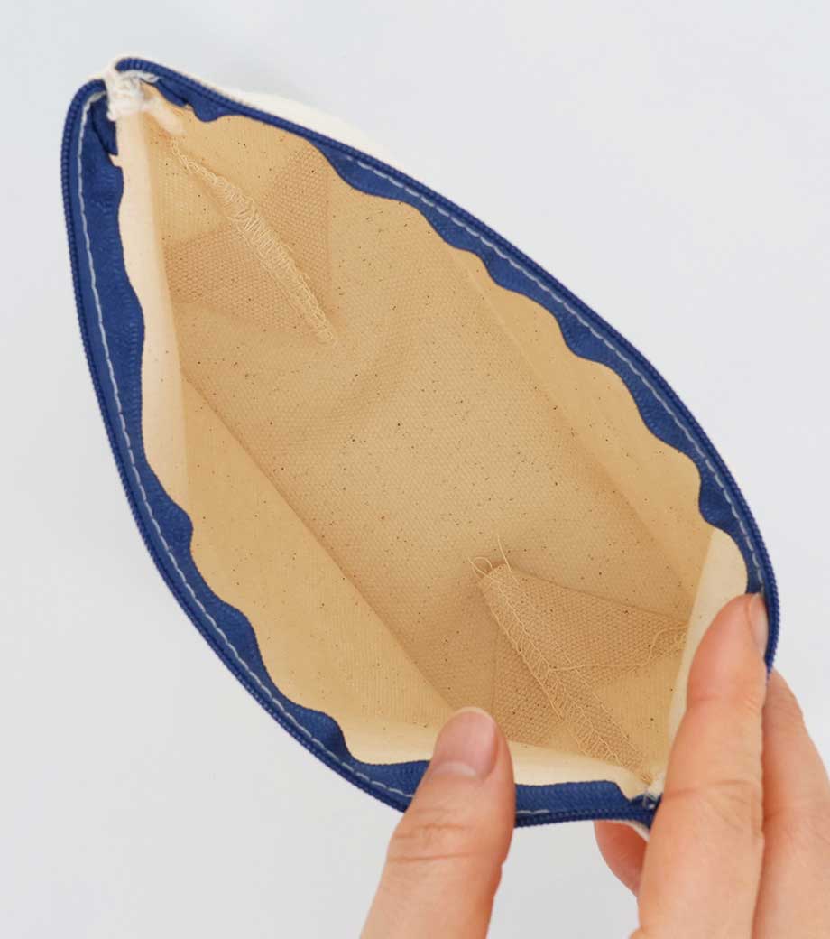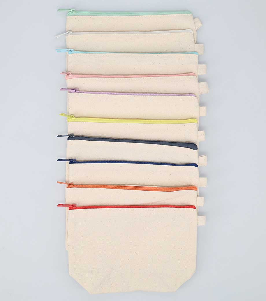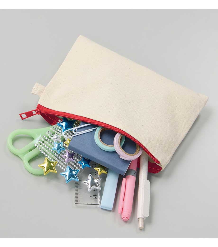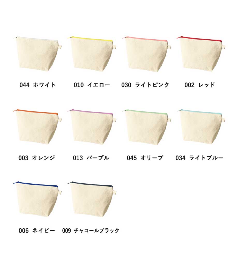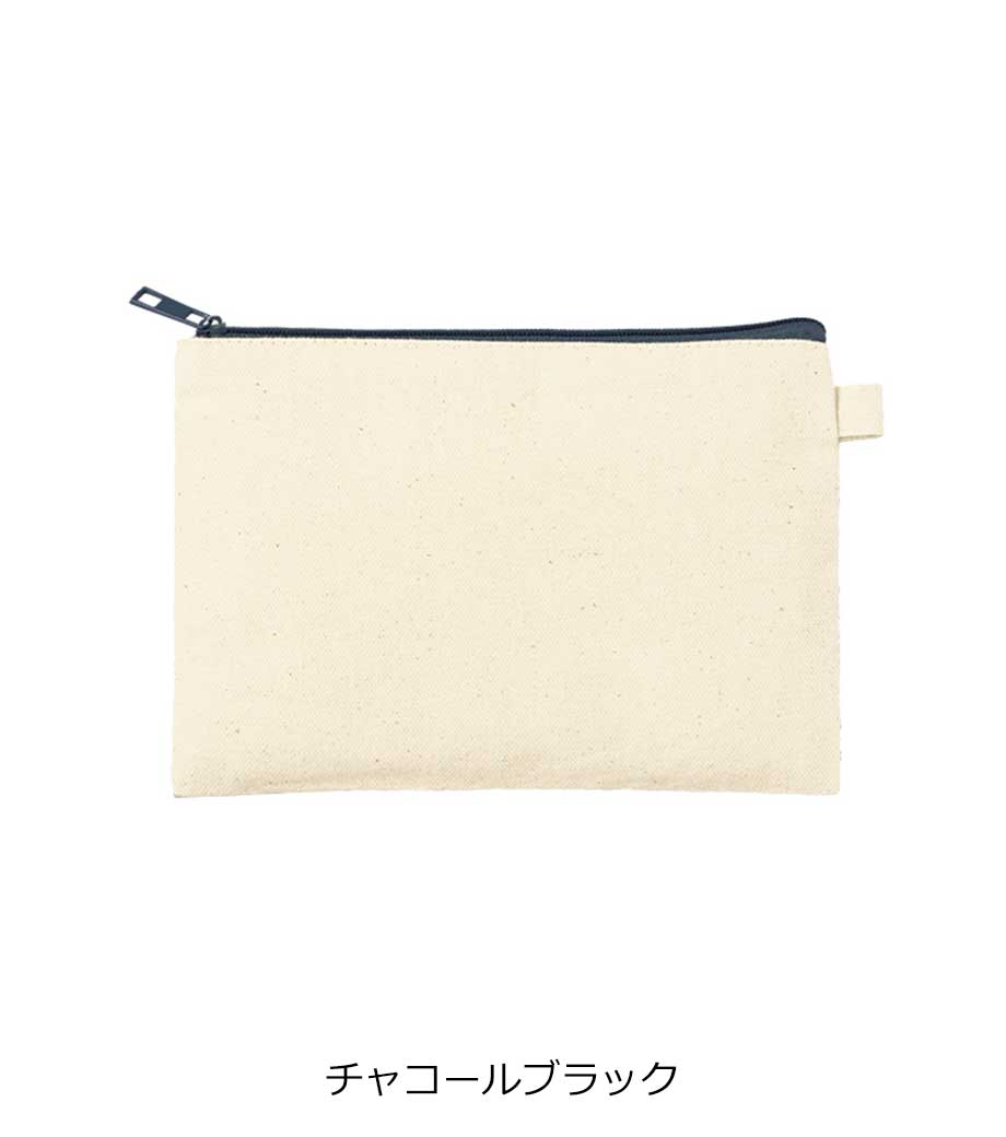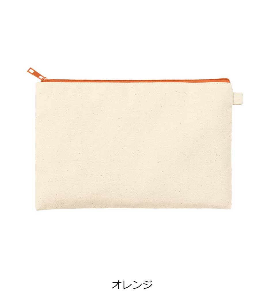 ファスナーの差し色がアクセントになったキャンバスポーチです。マチ付きでしっかり自立する舟形デザインで、コスメや小物をたっぷり収納できる使い勝手の良さが魅力です。サイドループ付きでキーホルダーやチャームも付けられ、アレンジを楽しめます。