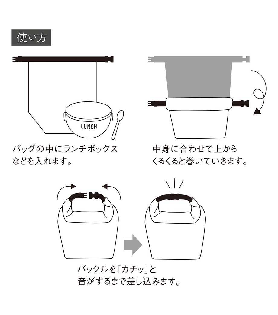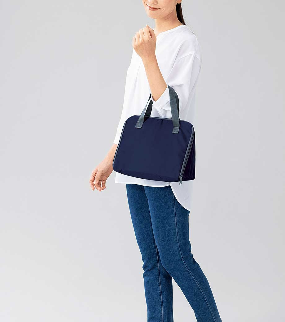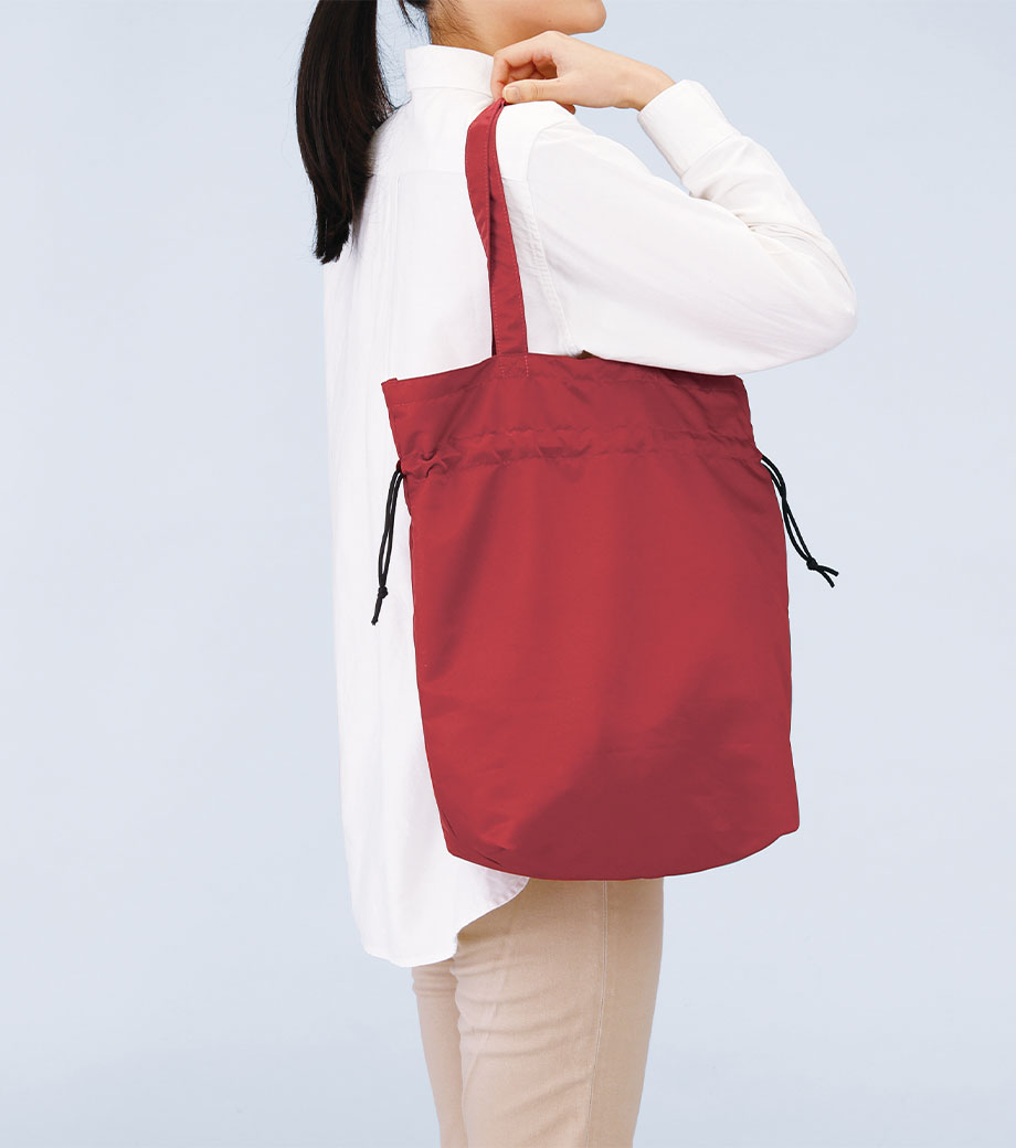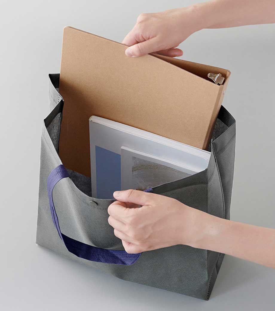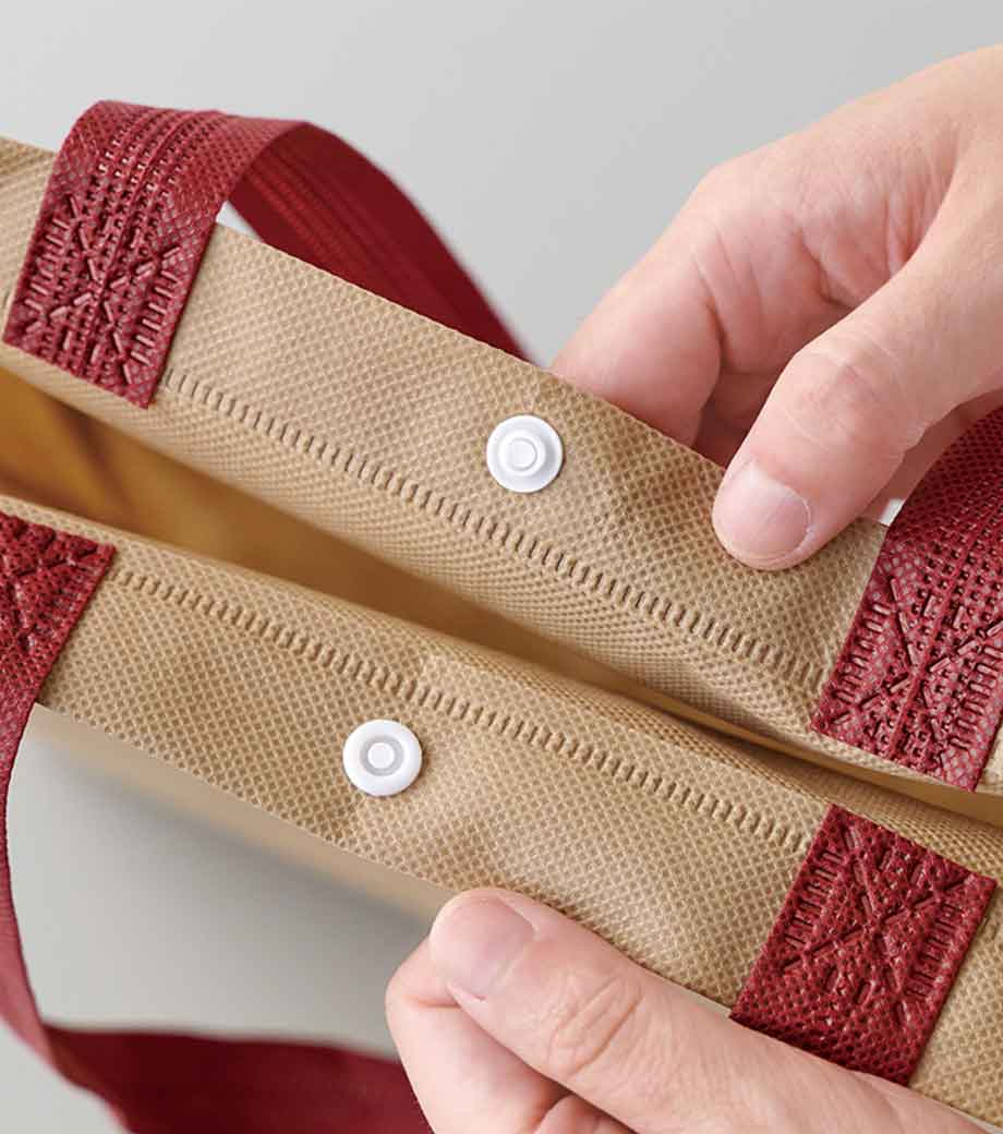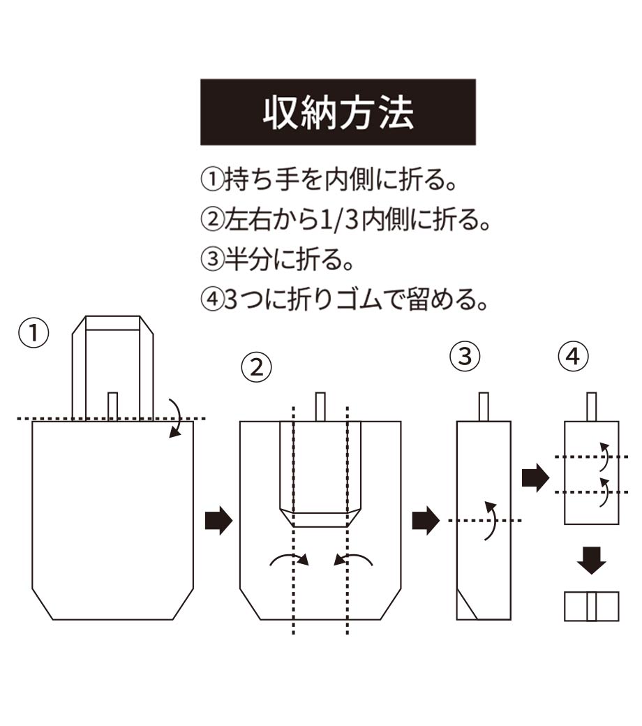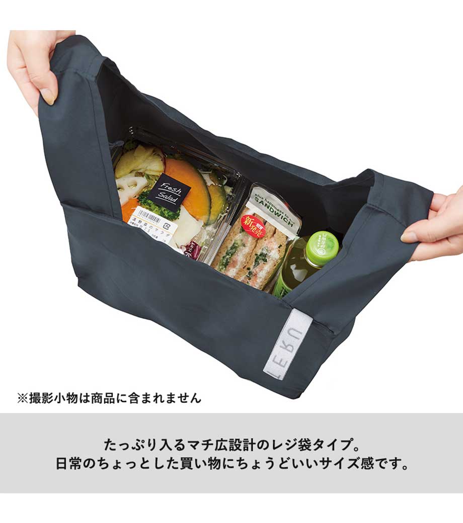 バッグ本体はスッキリとコンパクトに折り畳むことができ、面ファスナーで留めるだけのお手軽さ!普段使うバッグに忍ばせておけばいつでもさっと取り出せます。