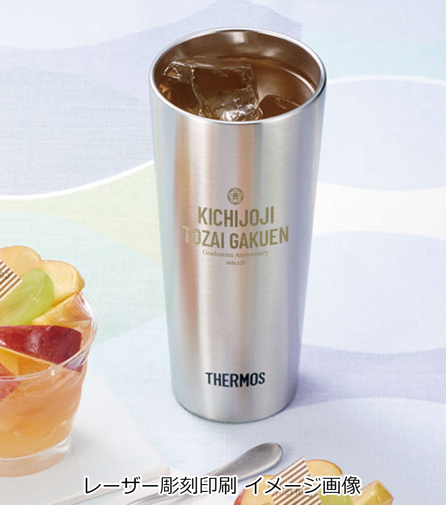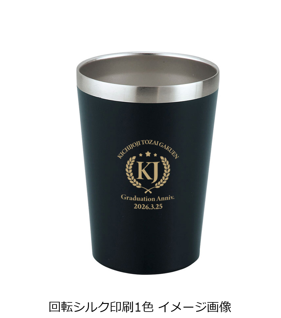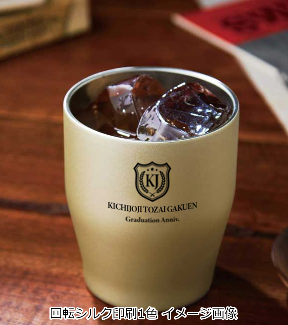 Zalattoサーモラウンドタンブラーは、表面がパウダーマット塗装してあるので滑りにくく、しっかりと持つことのできる個性的なフォルムの真空二重構造タンブラーです。本体の側面にぐるっと広範囲で1色印刷が可能。高級感あるレーザー彫刻印刷もおすすめです。