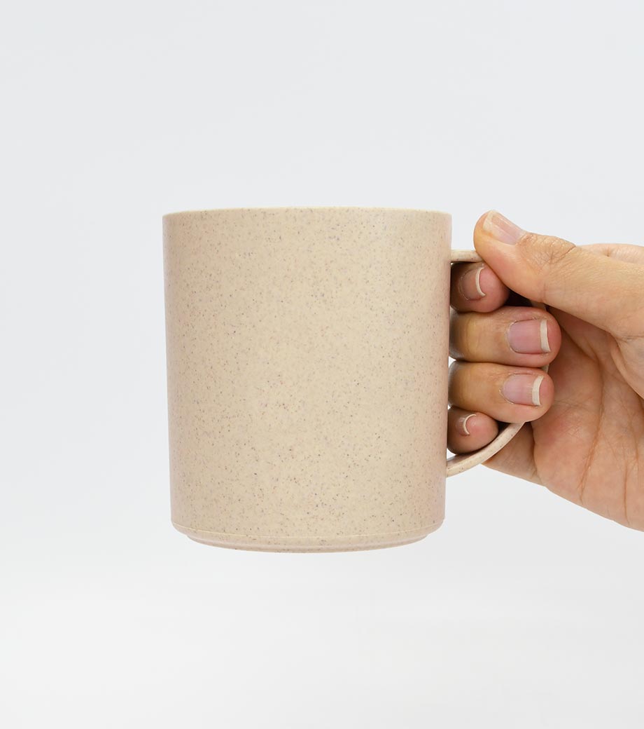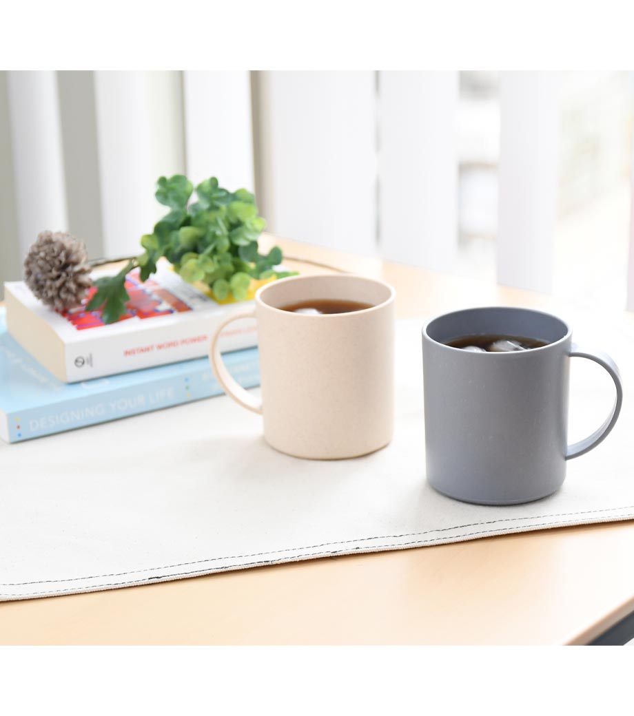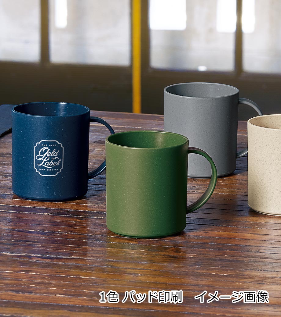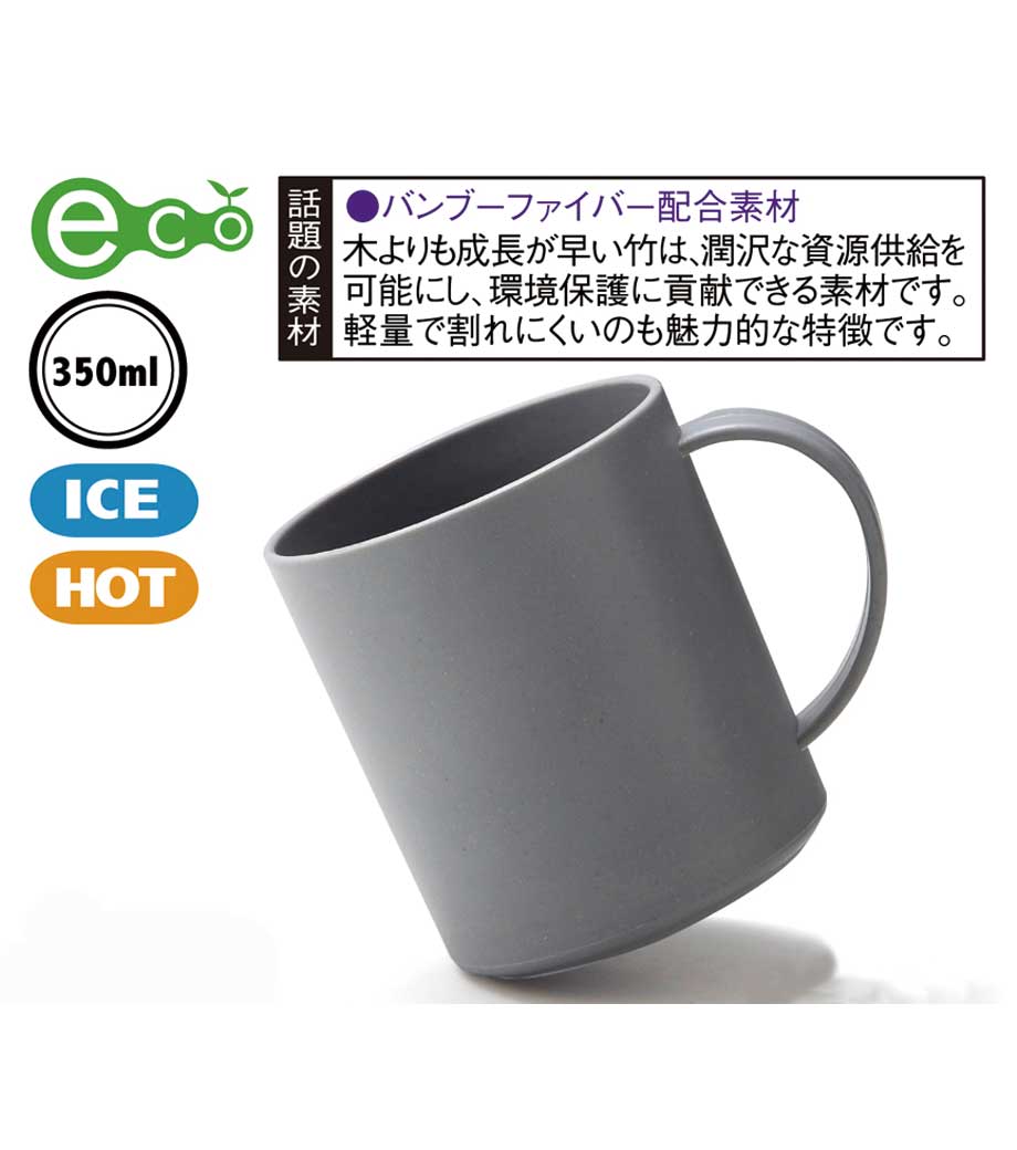 バンブーファイバー配合マグカップは環境に配慮したエコ素材のマグカップです。竹を配合したバンブーファイバー樹脂を使用しています。安価で軽量、割れにくく繰り返し使えるのが魅力です。マットな質感と竹繊維の風合いがお洒落!環境保護に貢献できる素材で作られているので、イベントや展示会での企業アピールに効果的です。