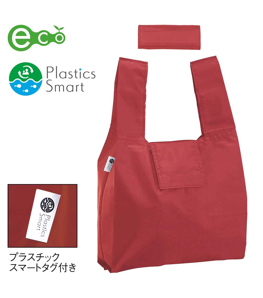 リフェロ・再生PETマイバッグは、回収された使用済みペットボトルを原料として生まれたエコバッグです。バッグ側面には「プラスチック・スマート」賛同商品の証であるタグつき。企業としてリサイクル意識の高さや環境問題への取り組みをさりげなくアピールできますよ。