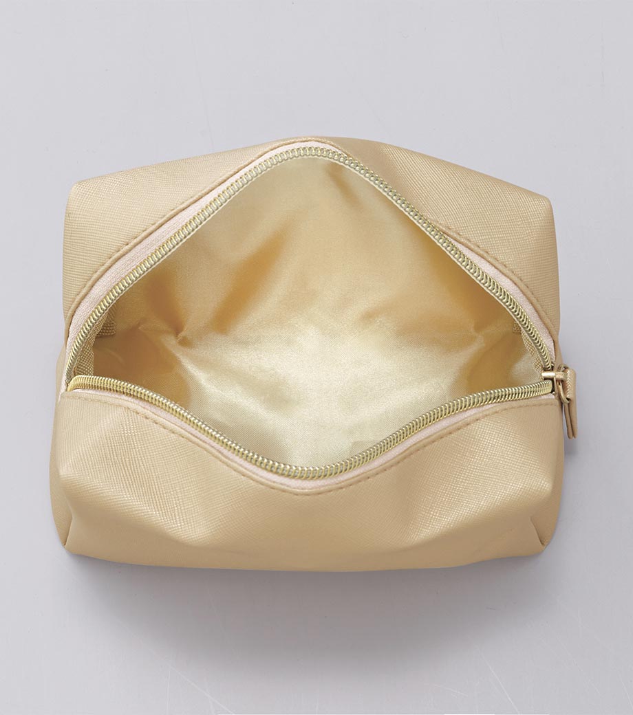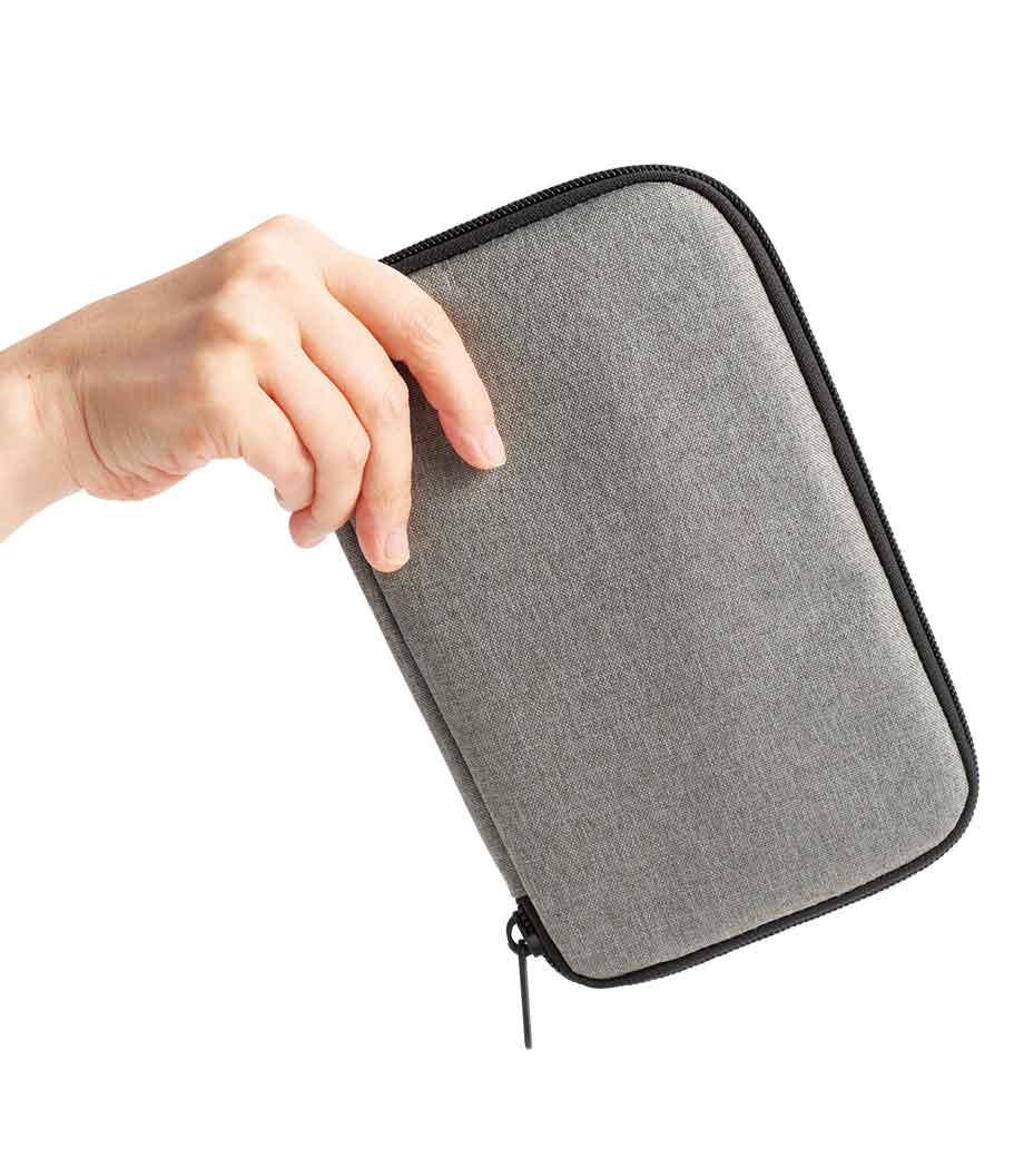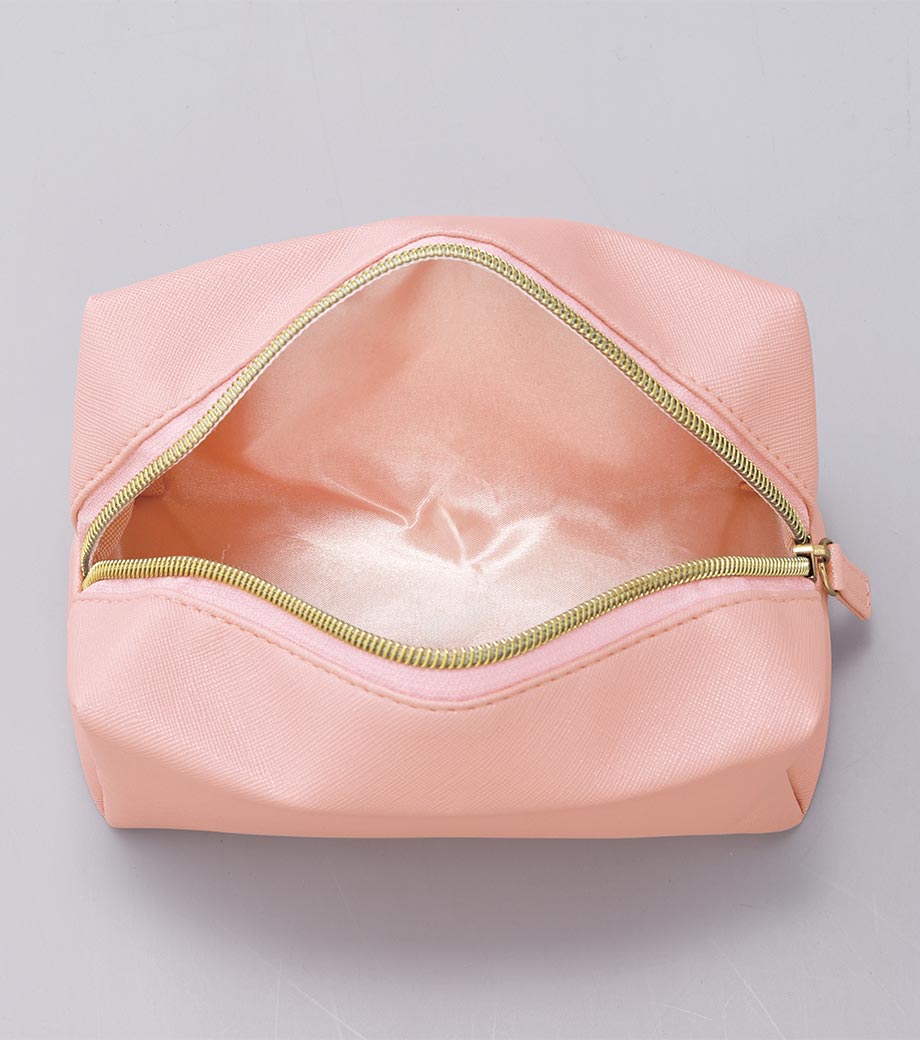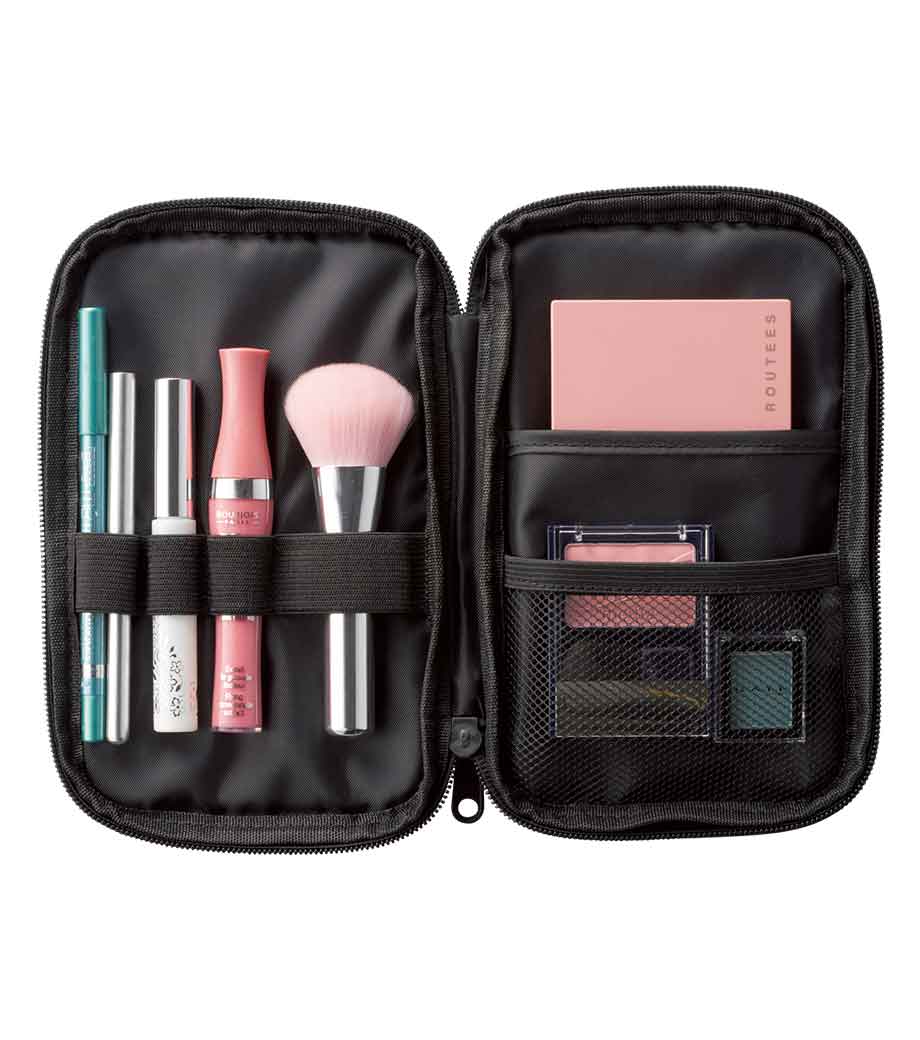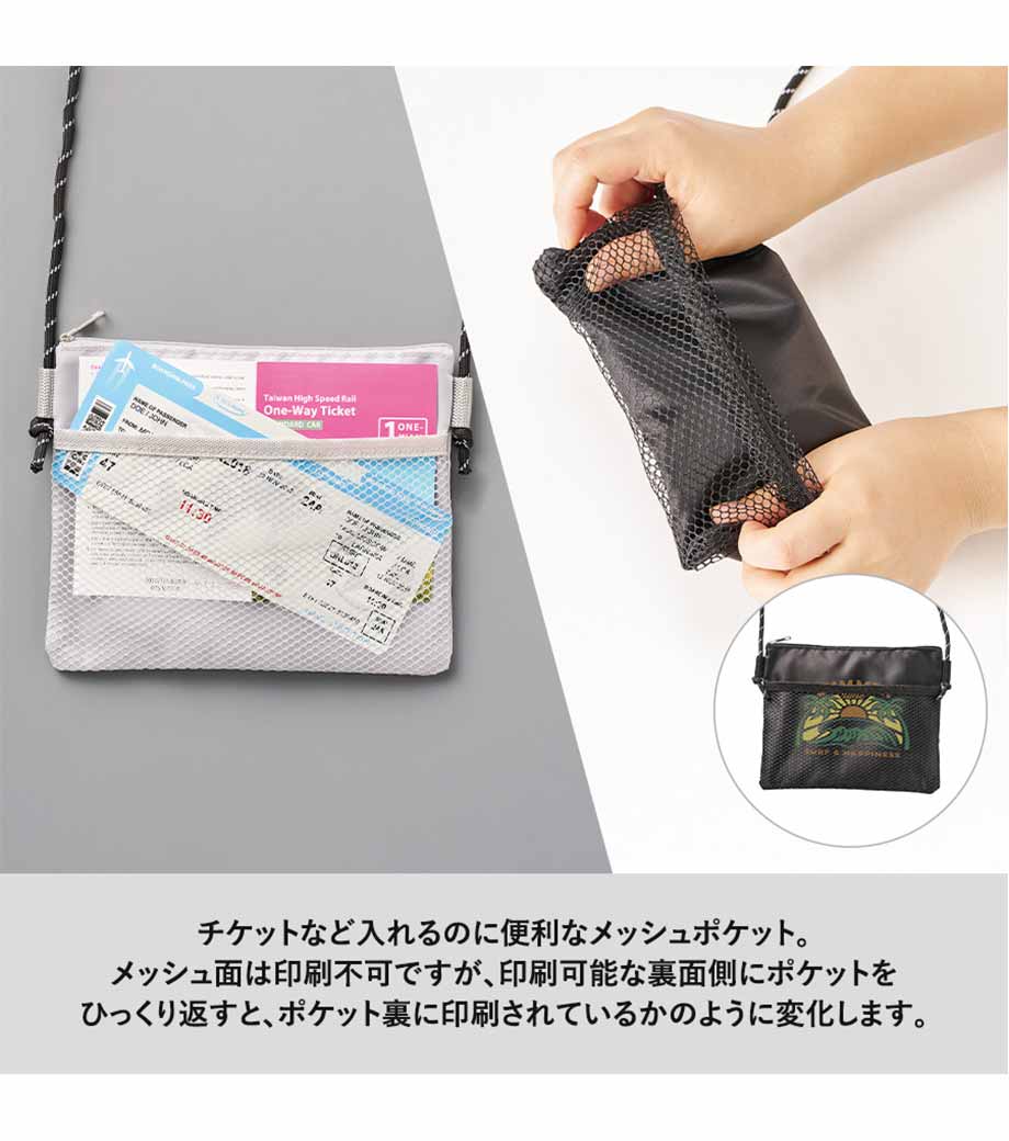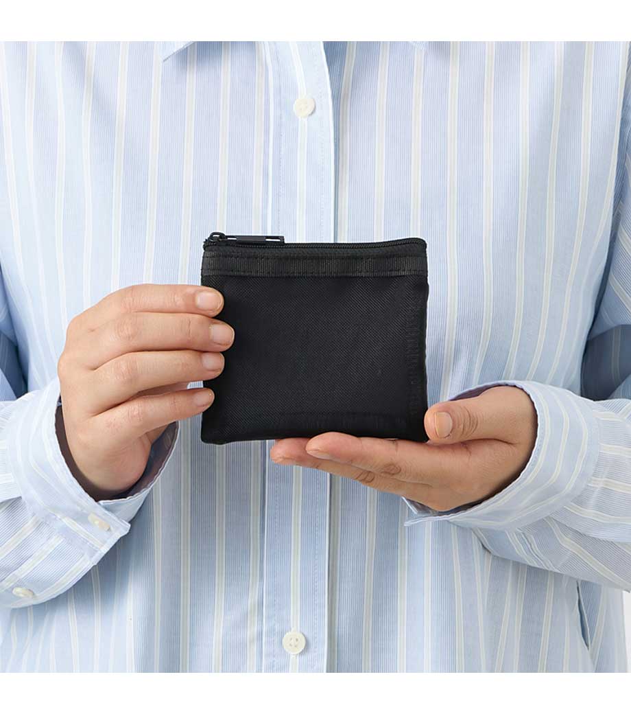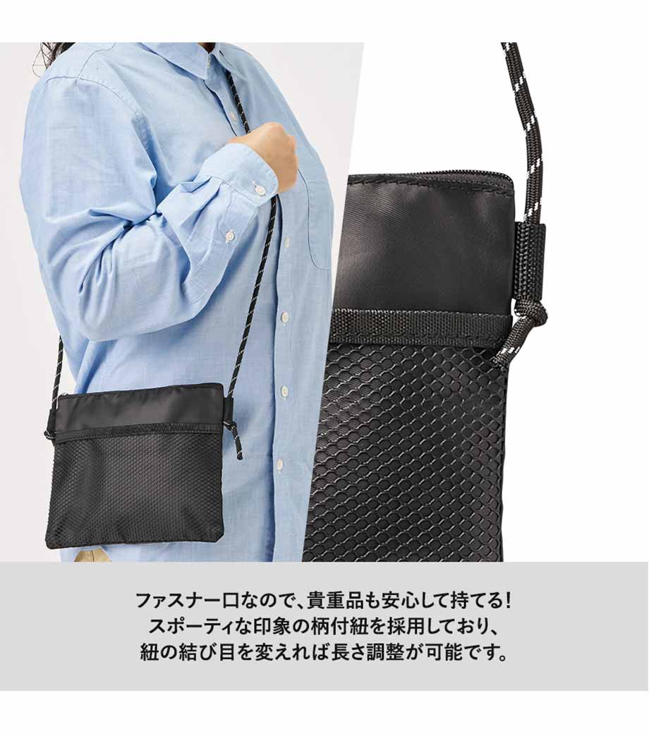 小物の収納にぴったりなミニポーチ。表は中身がひと目でわかるメッシュ素材、裏は目隠しができるポリエステル素材。持つ向きを変えれば、中身を見せたいときにも見せたくないときにも対応できます。イヤホンやリップ、アクセサリーなどをすっきり収納でき、かさばらないフラットタイプだから持ち歩きにも最適。さらに、メッシュ生地はハリがあり型くずれしにくいのもポイントです。