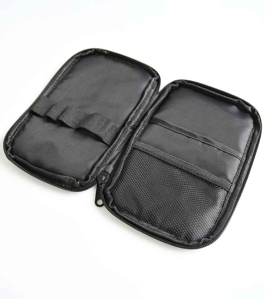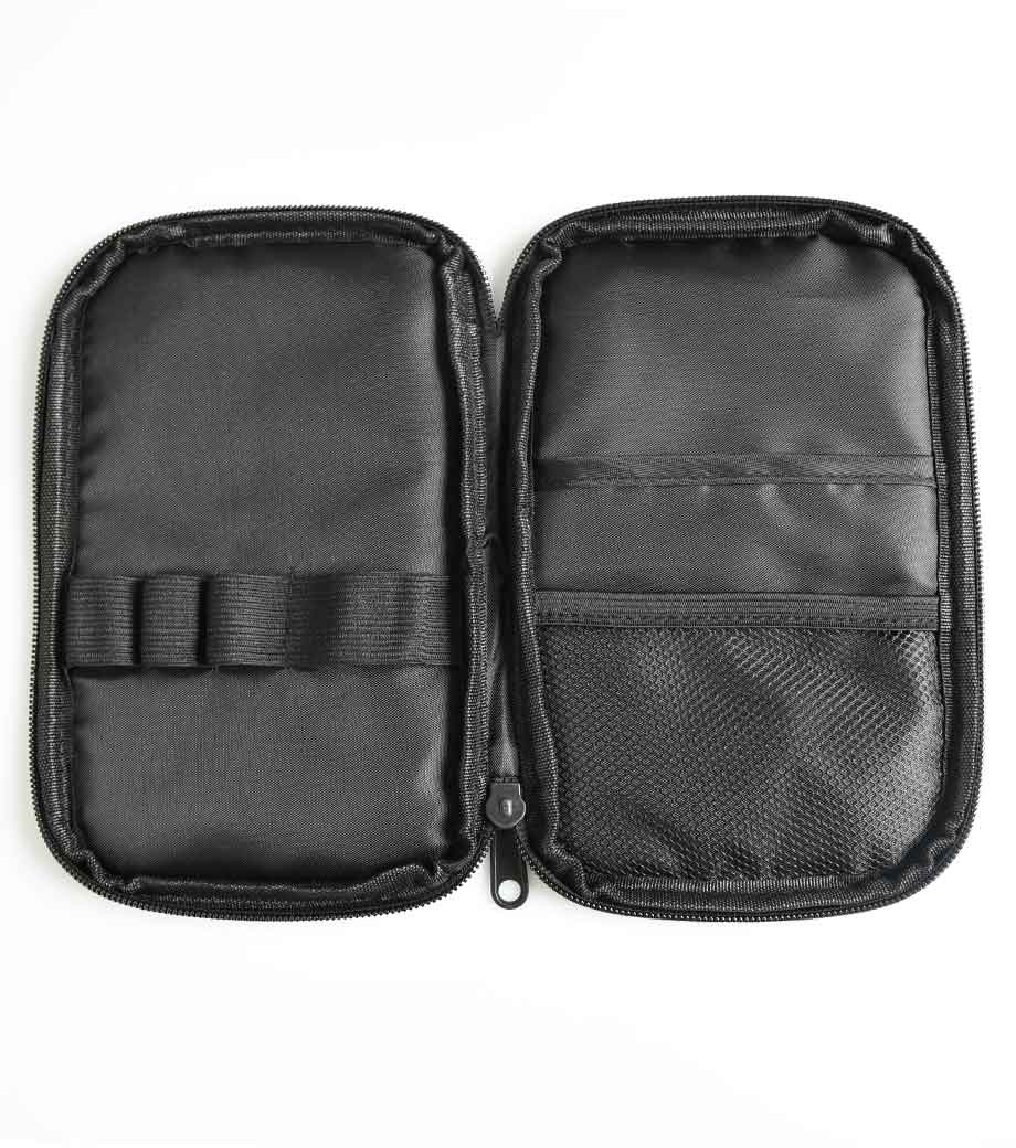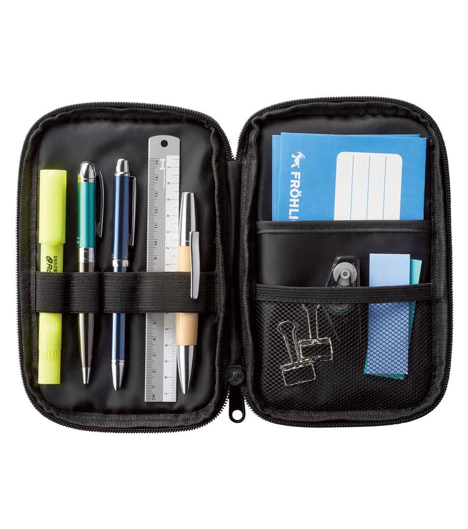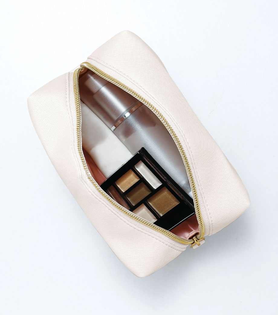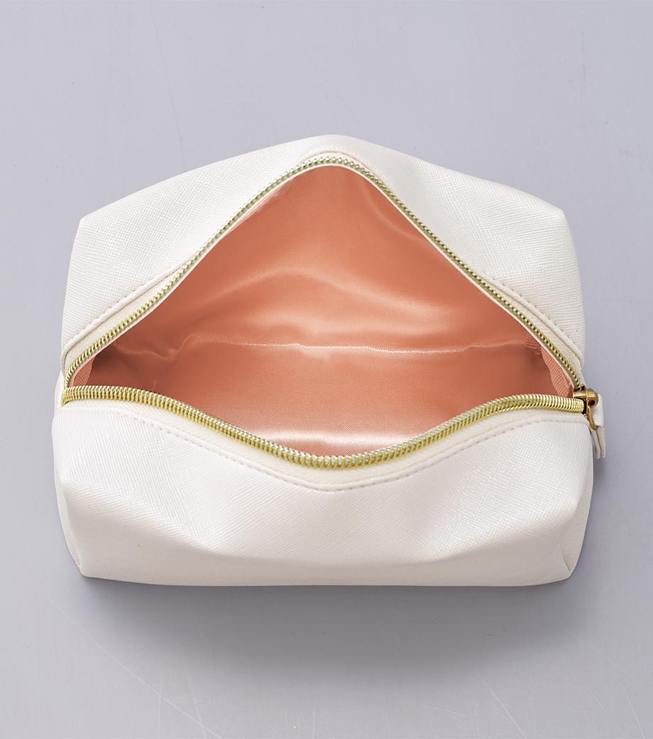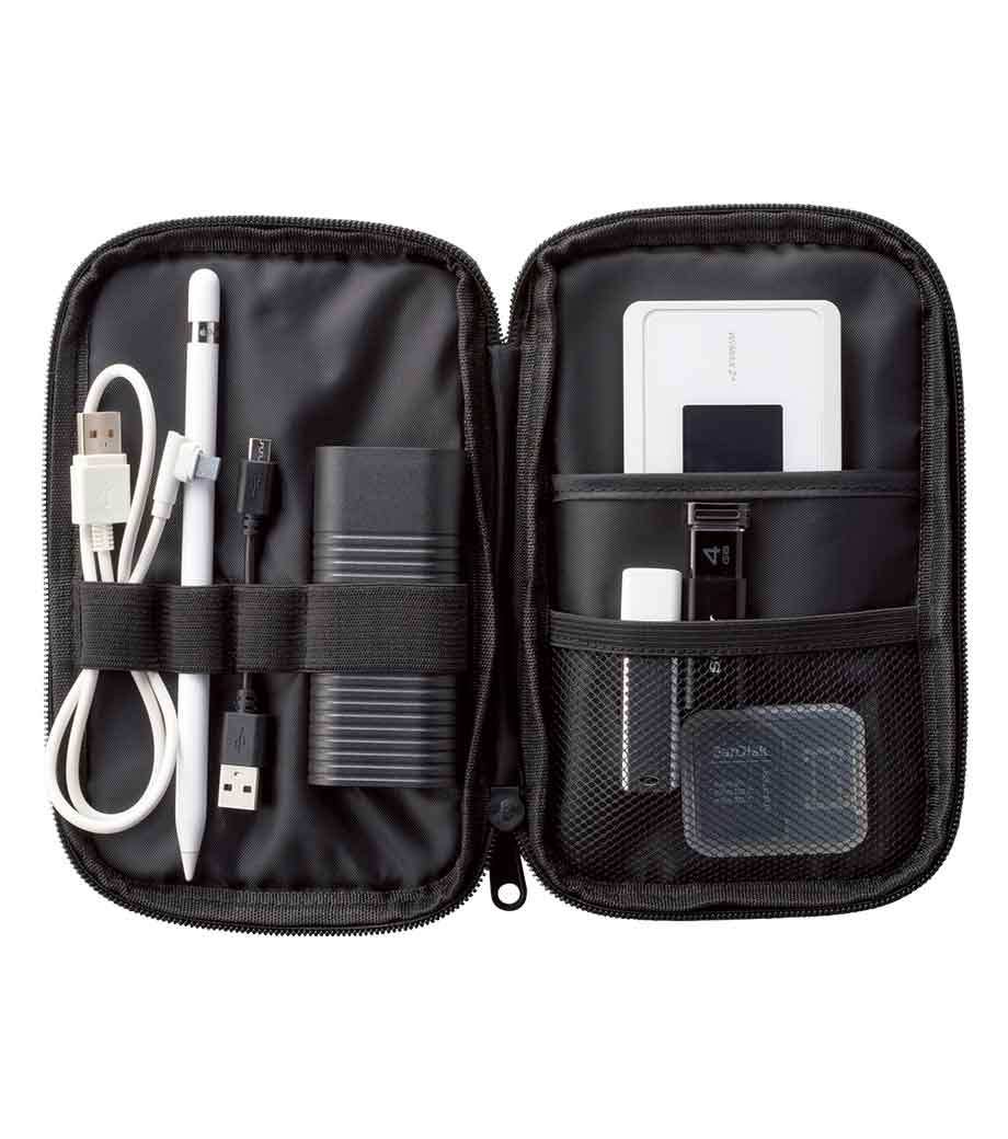 小物の収納にぴったりなミニポーチ。表は中身がひと目でわかるメッシュ素材、裏は目隠しができるポリエステル素材。持つ向きを変えれば、中身を見せたいときにも見せたくないときにも対応できます。イヤホンやリップ、アクセサリーなどをすっきり収納でき、かさばらないフラットタイプだから持ち歩きにも最適。さらに、メッシュ生地はハリがあり型くずれしにくいのもポイントです。