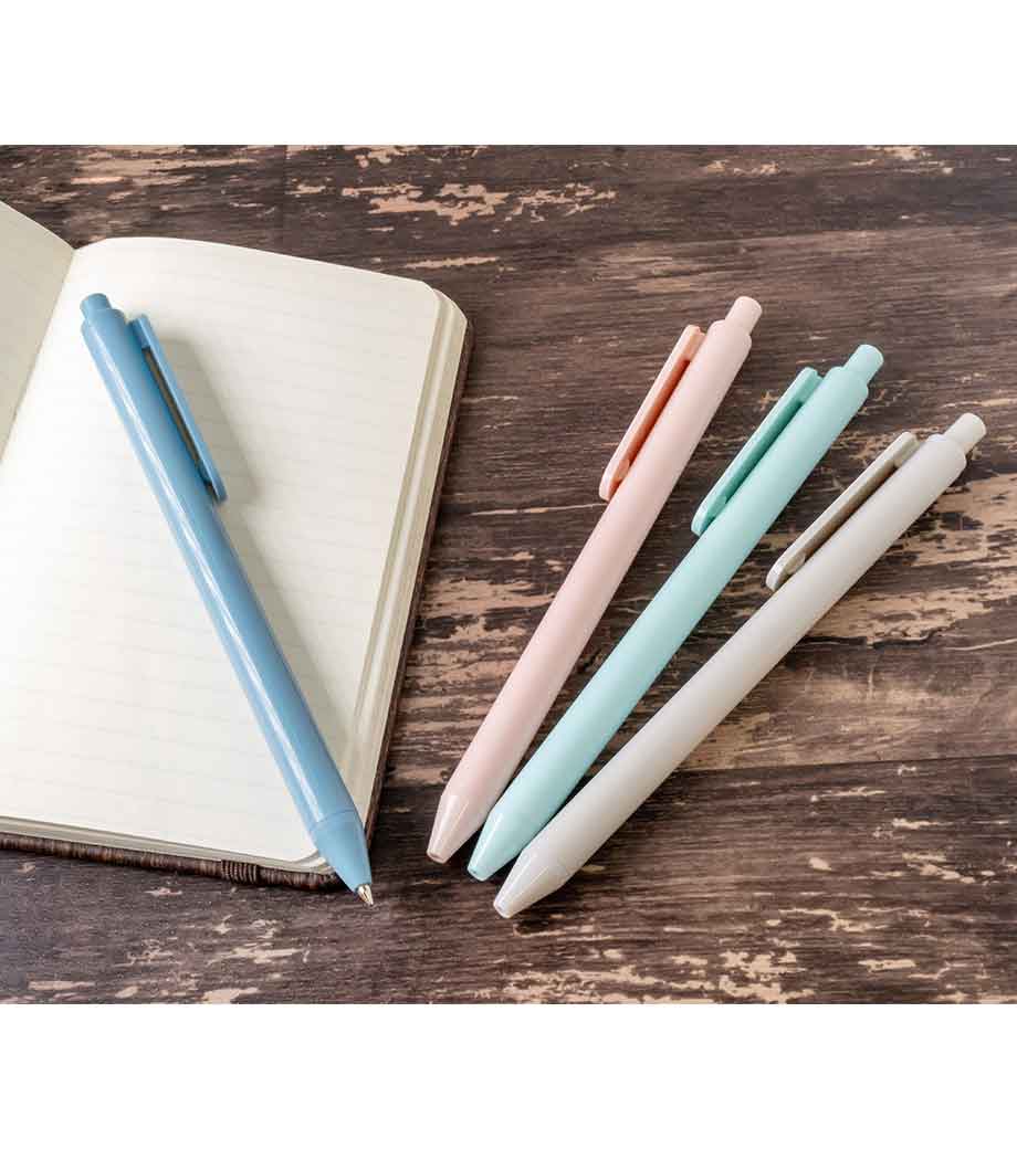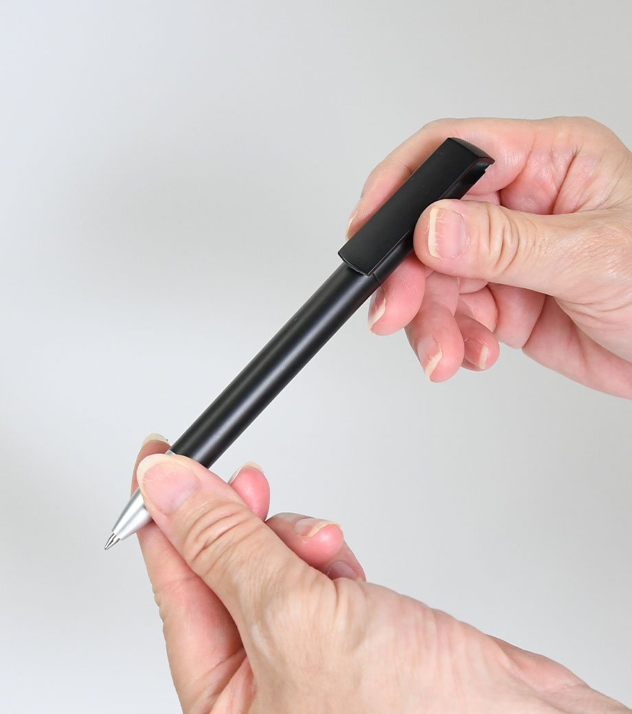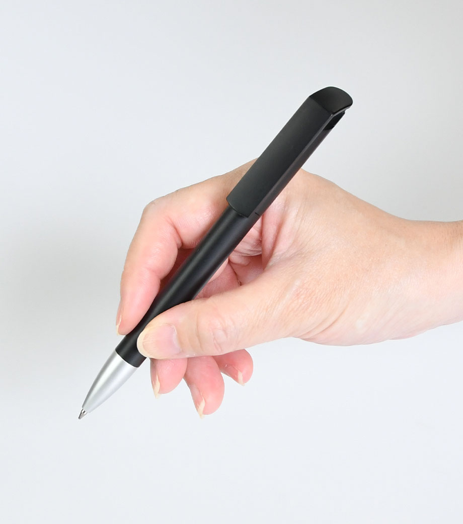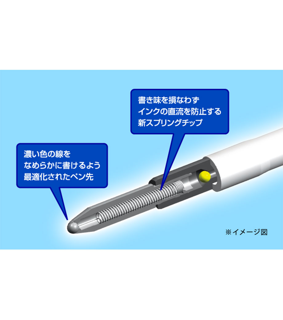 インクはエマルジョンインクを採用。乾きやすくかすれにくいのが特徴で、油性インクと水性インクを「7:3」で配合した"いいところどり"なインクです。1色印刷とフルカラー印刷(白軸のみ)可能。会社名や学校名を入れてオリジナルの3色ボールペンが作れます。