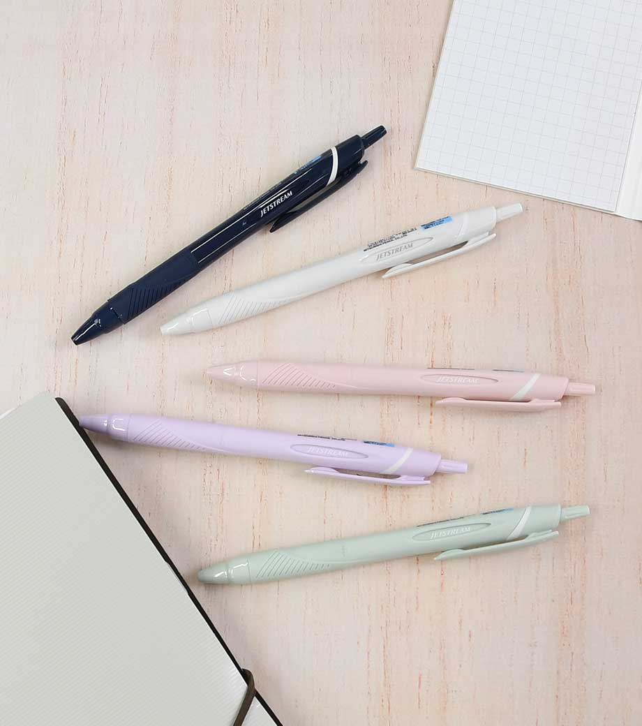 三菱鉛筆 ジェットストリーム 0.5mmは、油性とは思えないなめらかな書き心地がウリのボールペン。速乾性があり、一般的な油性インクよりも濃くしっかりとした字が書けるのも特徴です。いつでもどこでもサッと筆記できるノック式ボールペンは、年代性別問わずもらって嬉しいノベルティ。海外でも支持されている大人気商品です。