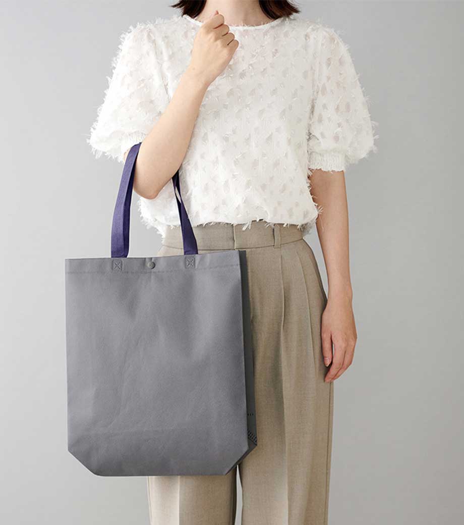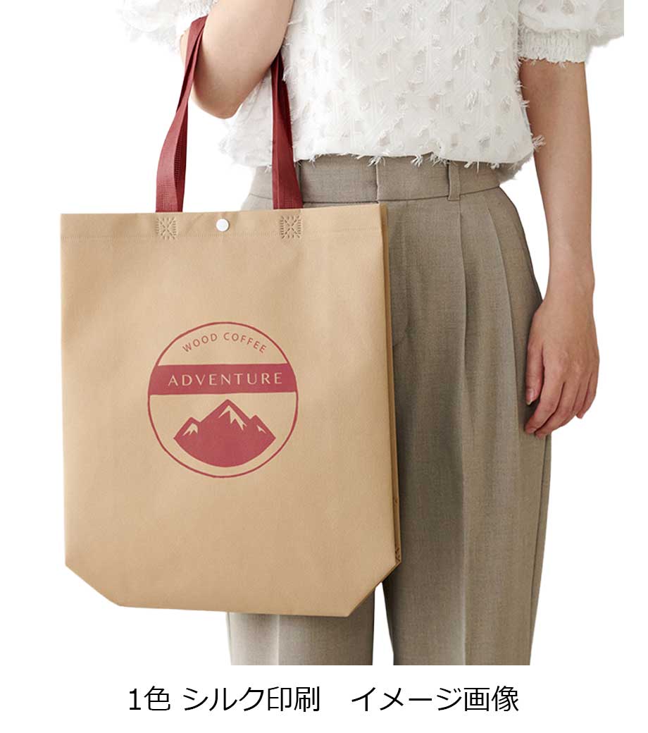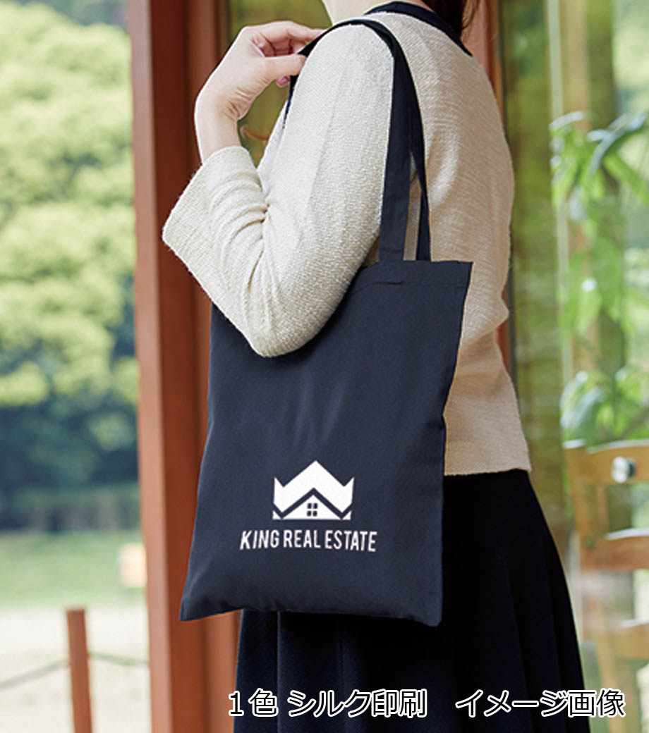 シンプルな無地のデザインのバッグは、ロゴやイラストが映えるのでオリジナルバッグの制作におすすめ。印刷面が広いのでPR効果も抜群!セミナーや会社説明会にも選ばれます。世界にひとつのオリジナルバッグを小ロットで制作できますよ。