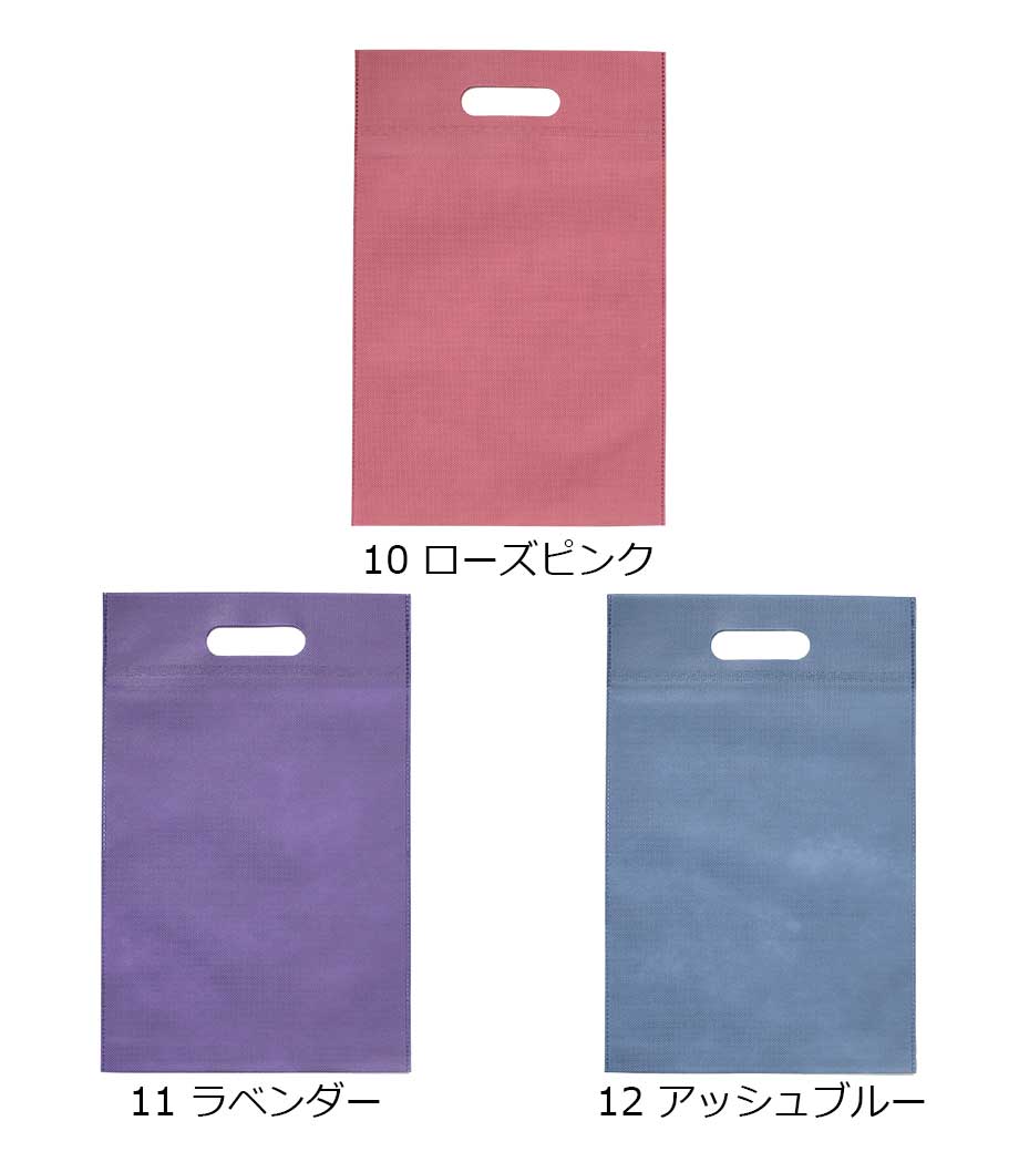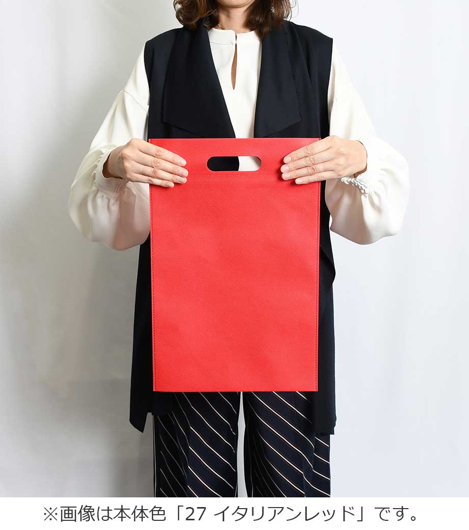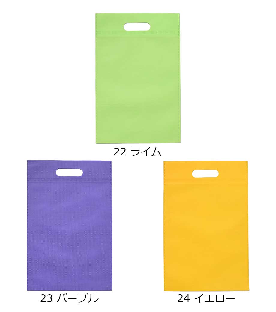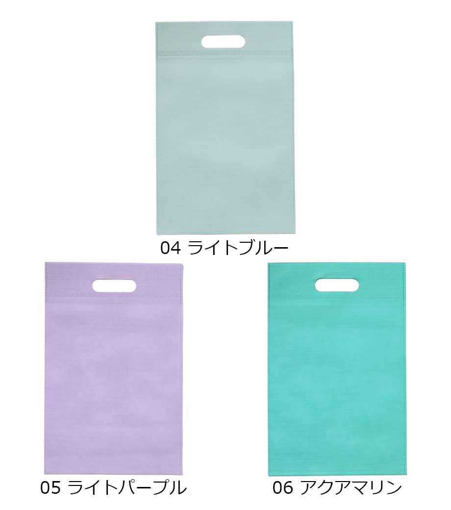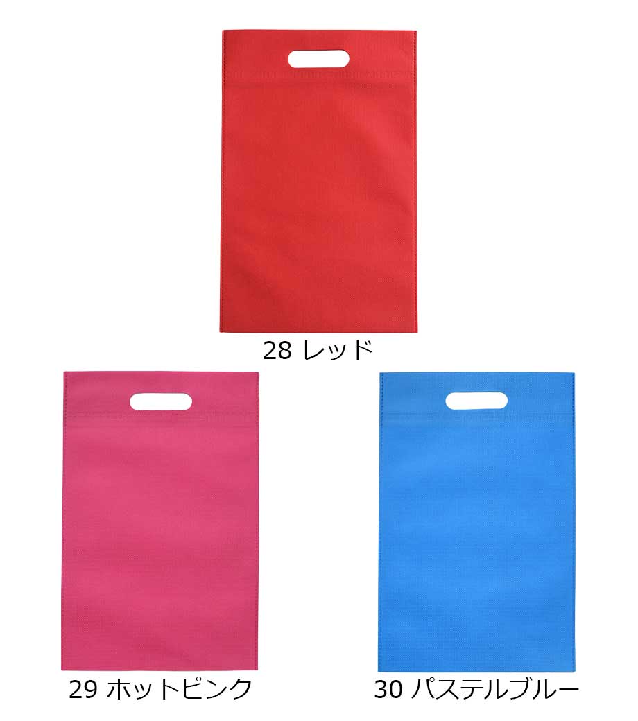 不織布バッグシリーズは、イベントや展示会、大学案内や企業案内用に人気。「不織布小判抜きバッグ」は、持ち運びしやすい小判抜きタイプのデザイン。厚手のA4サイズがすっぽり収まり、書類やパンフレットなどスマートに収納できます。パンフレット配布にはもちろん、旅館アメニティにもどうぞ。本体色は清潔感のあるカラーやビビッド、クールなどバリエーションが豊富です。イメージに合った色が選べます。