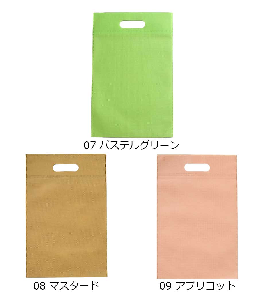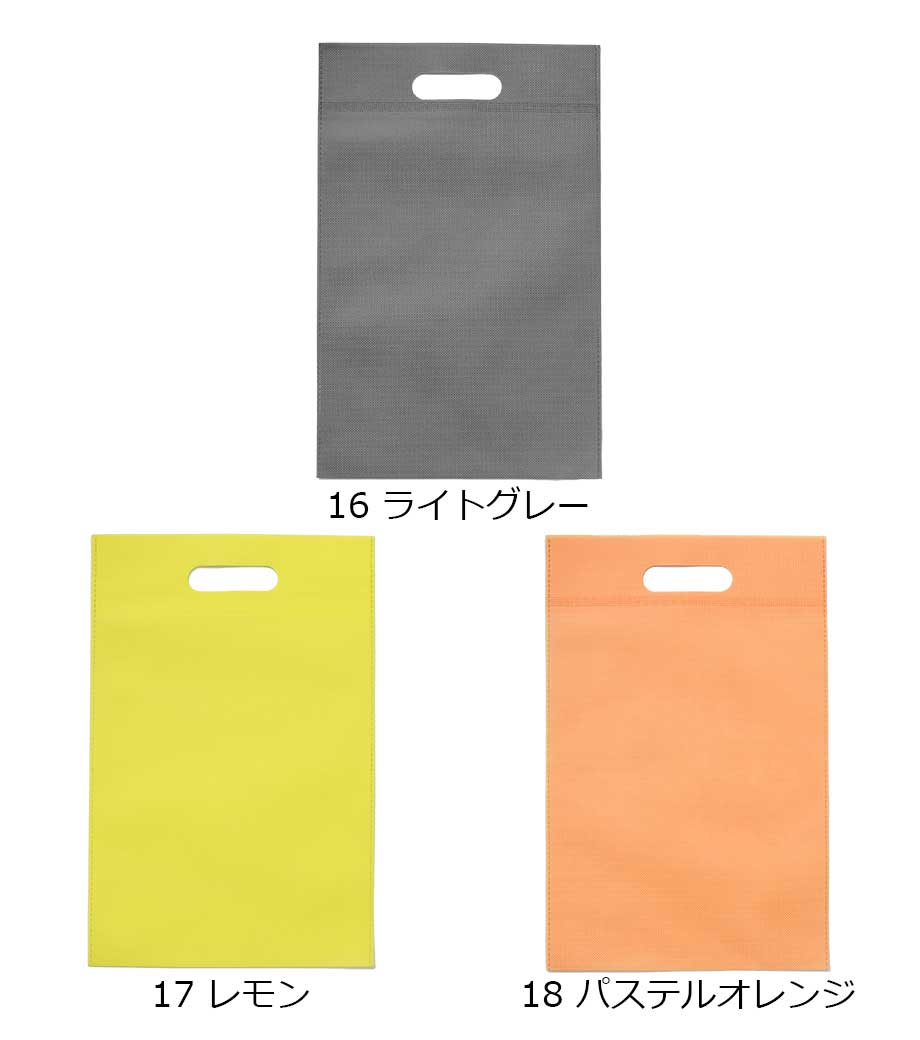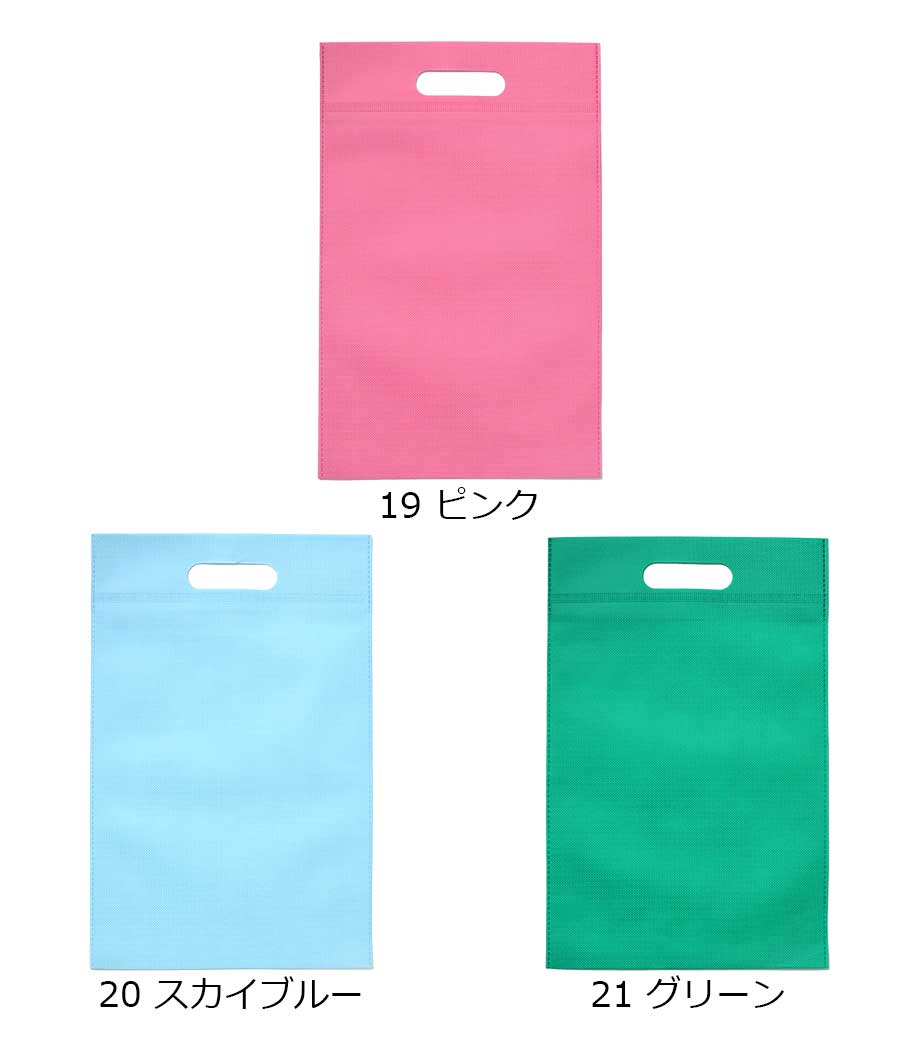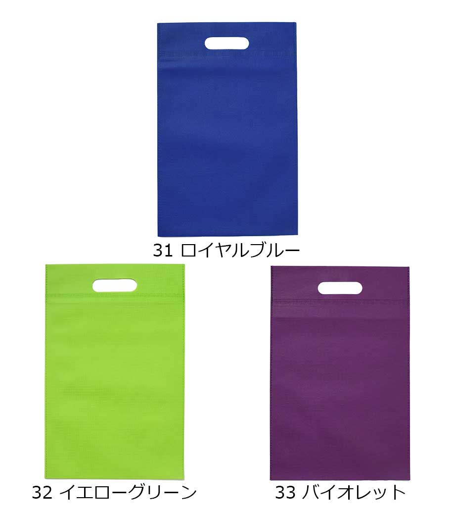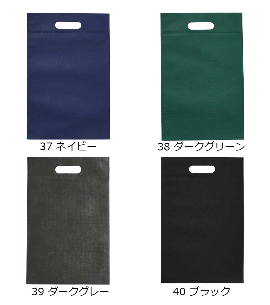 不織布バッグシリーズは、イベントや展示会、大学案内や企業案内用に人気。「不織布小判抜きバッグ」は、持ち運びしやすい小判抜きタイプのデザイン。厚手のA4サイズがすっぽり収まり、書類やパンフレットなどスマートに収納できます。パンフレット配布にはもちろん、旅館アメニティにもどうぞ。本体色は清潔感のあるカラーやビビッド、クールなどバリエーションが豊富です。イメージに合った色が選べます。