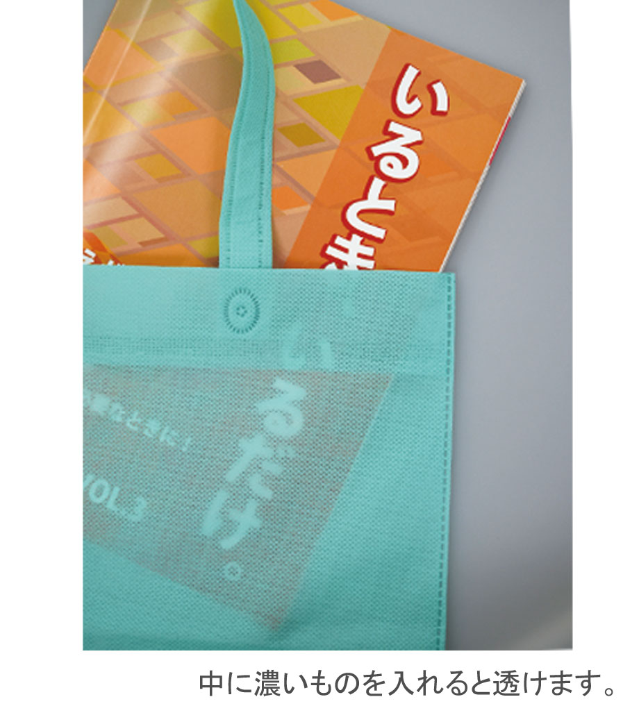 A4サイズがぴったり入るマチなしタイプで入れたものが透けにくいので説明会での資料配布やライブ物販、エコバッグなど幅広い用途で役立ちます。