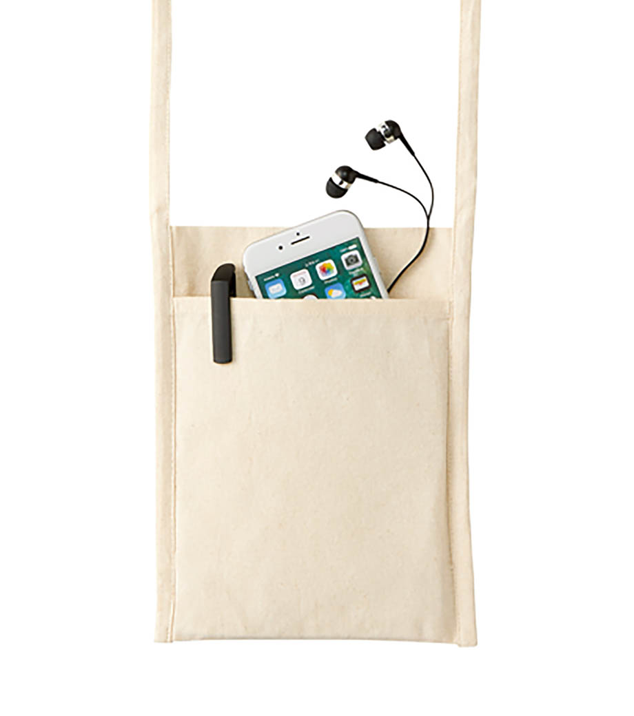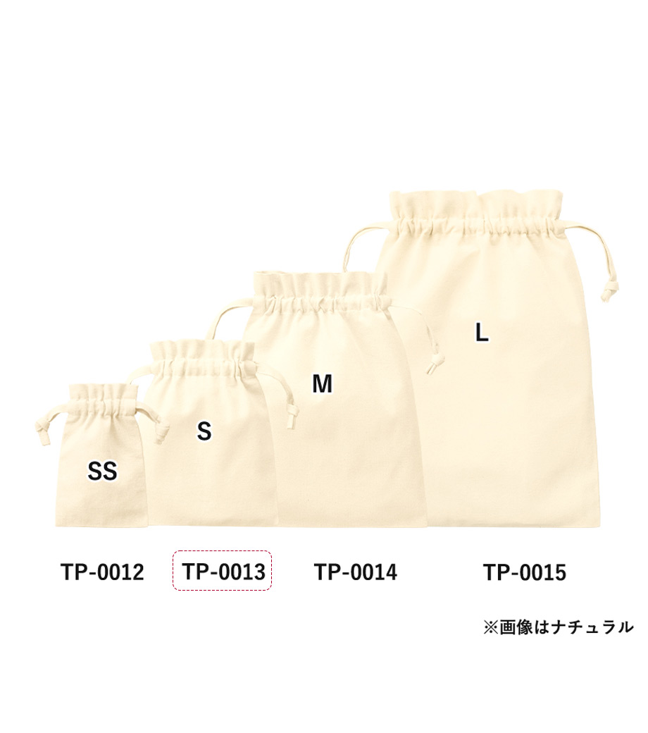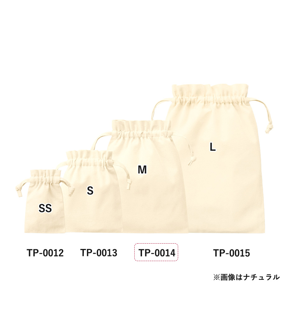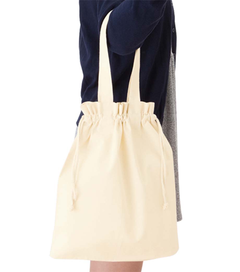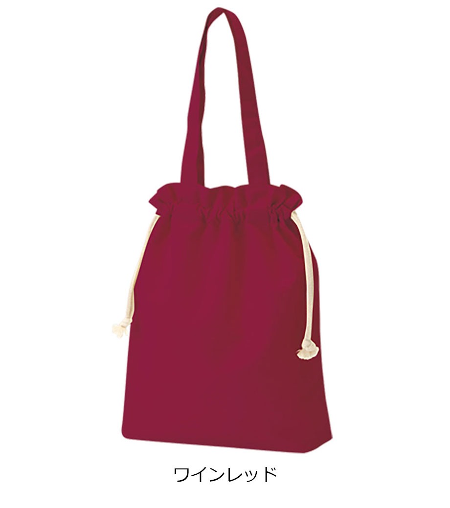 ベーシックで使いやすい5オンスの厚手コットン巾着。マチなしでちょっとしたガジェット入れや、詰め合わせギフト用袋にぴったりです。紐部分は共生地を使用。高級感のある印象です。
