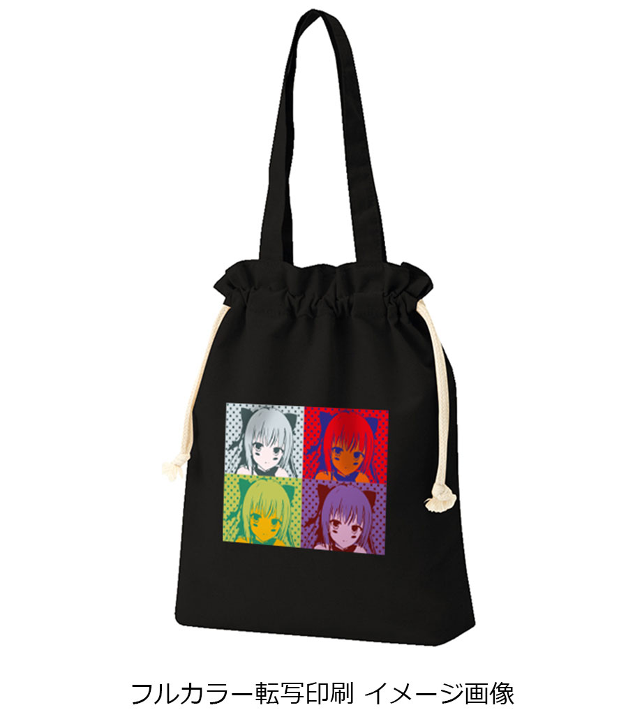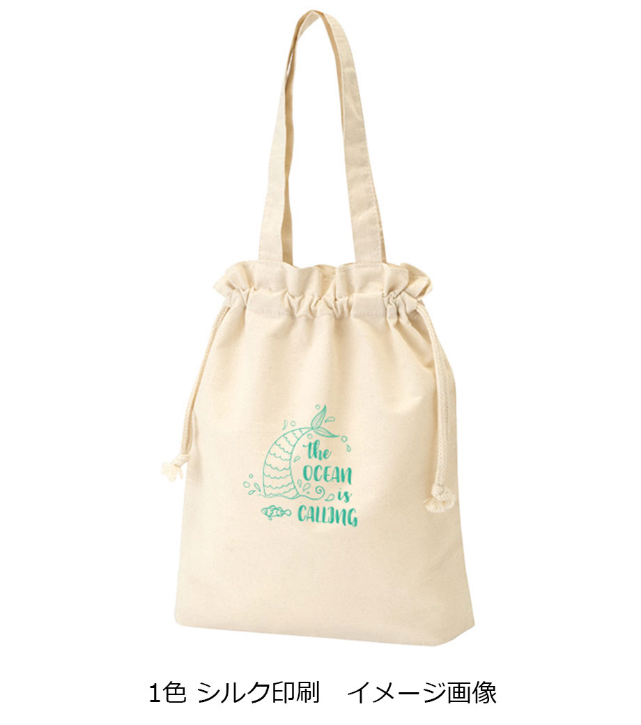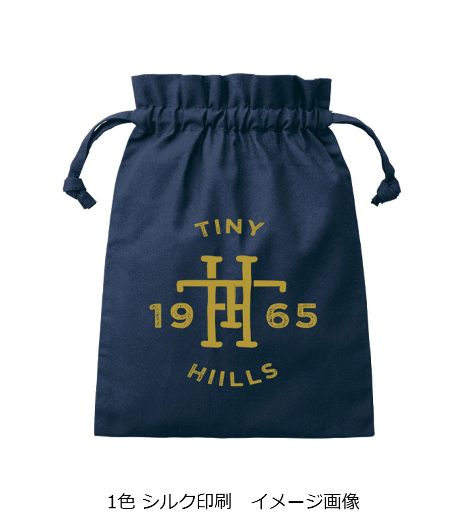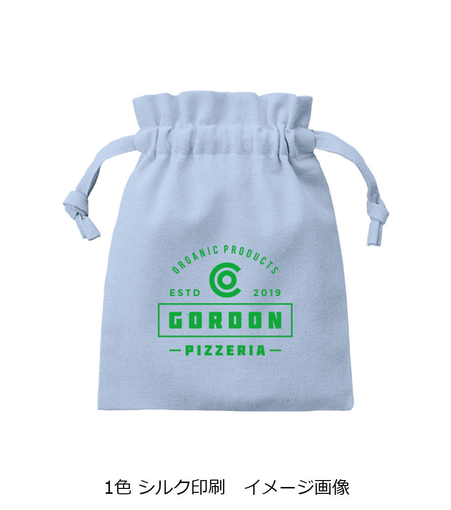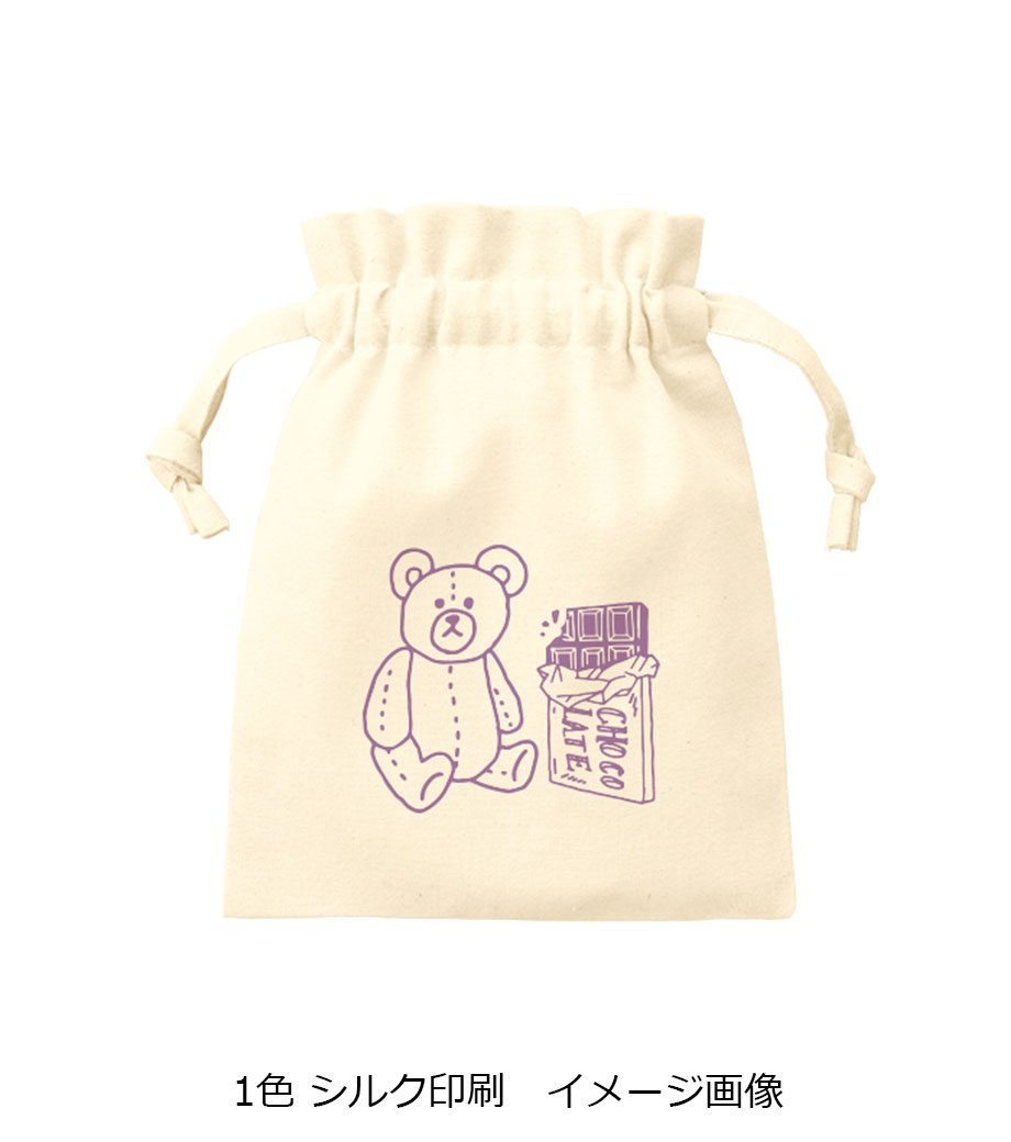 1色ロゴ印刷でオリジナル巾着を製作できます。コスメショップの周年記念や購入特典など、貰って嬉しいノベルティです。