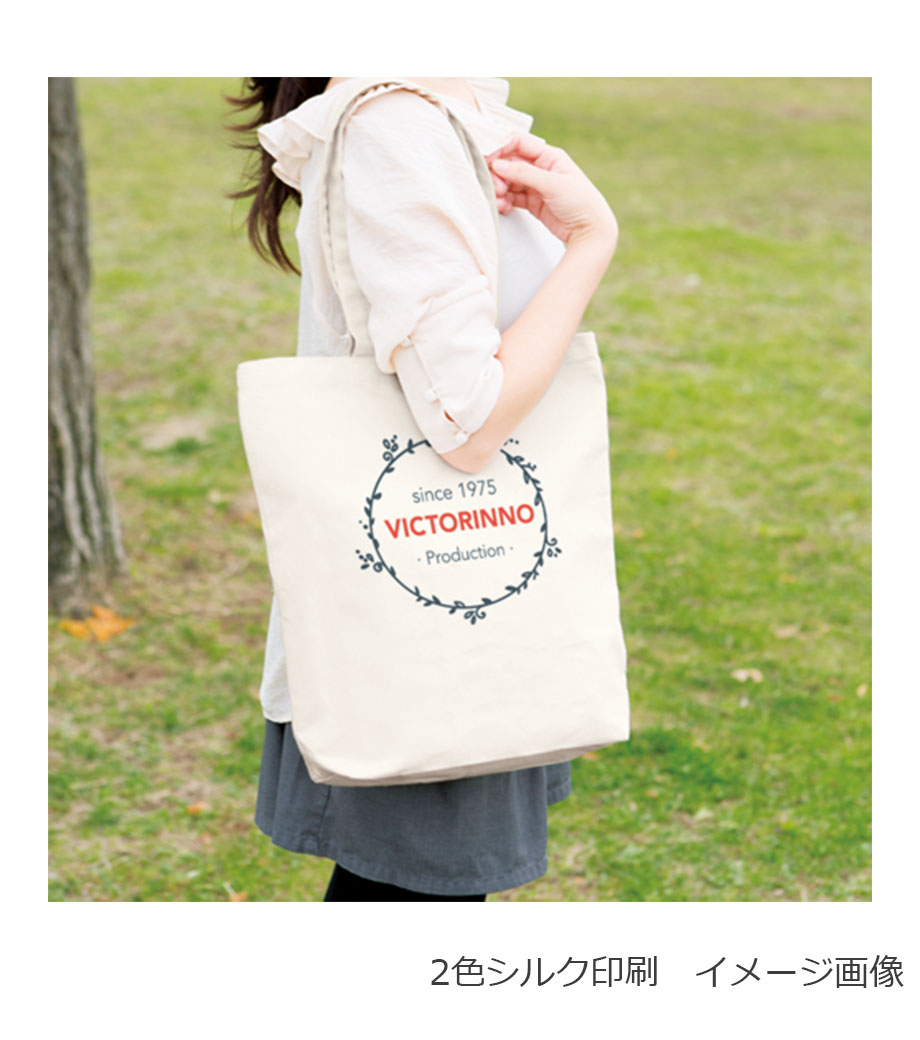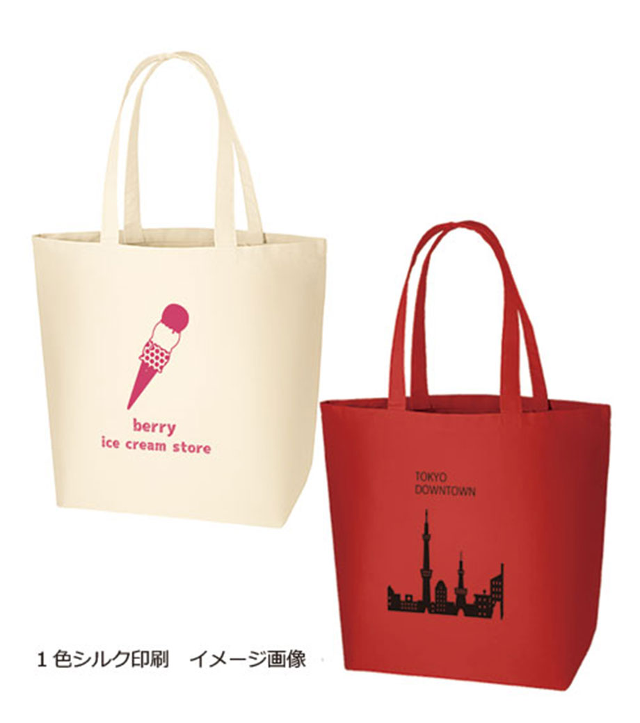 名入れは1色・フルカラーで対応しています。ロゴやイラストを印刷してオリジナルトートバッグを作成してみてはいかがでしょうか?