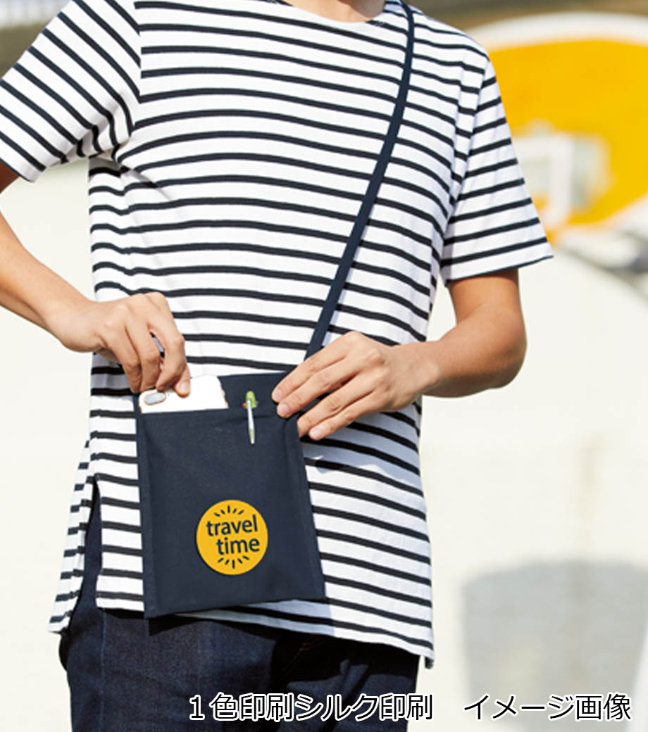 ポケットに1色で名入れ可能。シンプルデザインで大きめなロゴが映えます。郵送できますので、非対面ノベルティとしてもご活用できます。