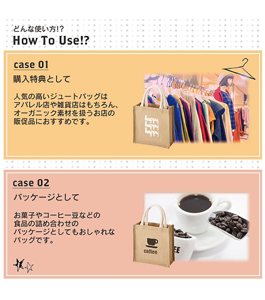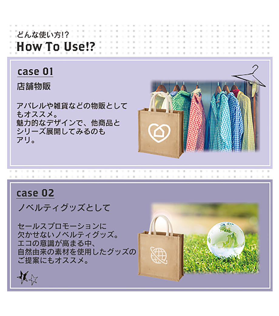 小売店での販売実績もある商品。ロゴ印刷したオリジナルバッグは特別感があるノベルティになること間違いなしです。