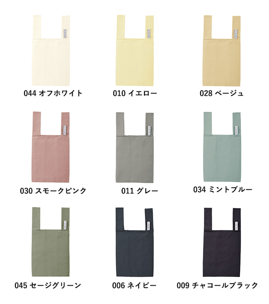 ベーシックカラーからトレンドのくすみカラーまで揃ったカラフルな色展開。企業カラーやイベント・展示会のイメージカラーにあわせて選ぶことができます。印刷面が広いのでPR効果も抜群ですよ。