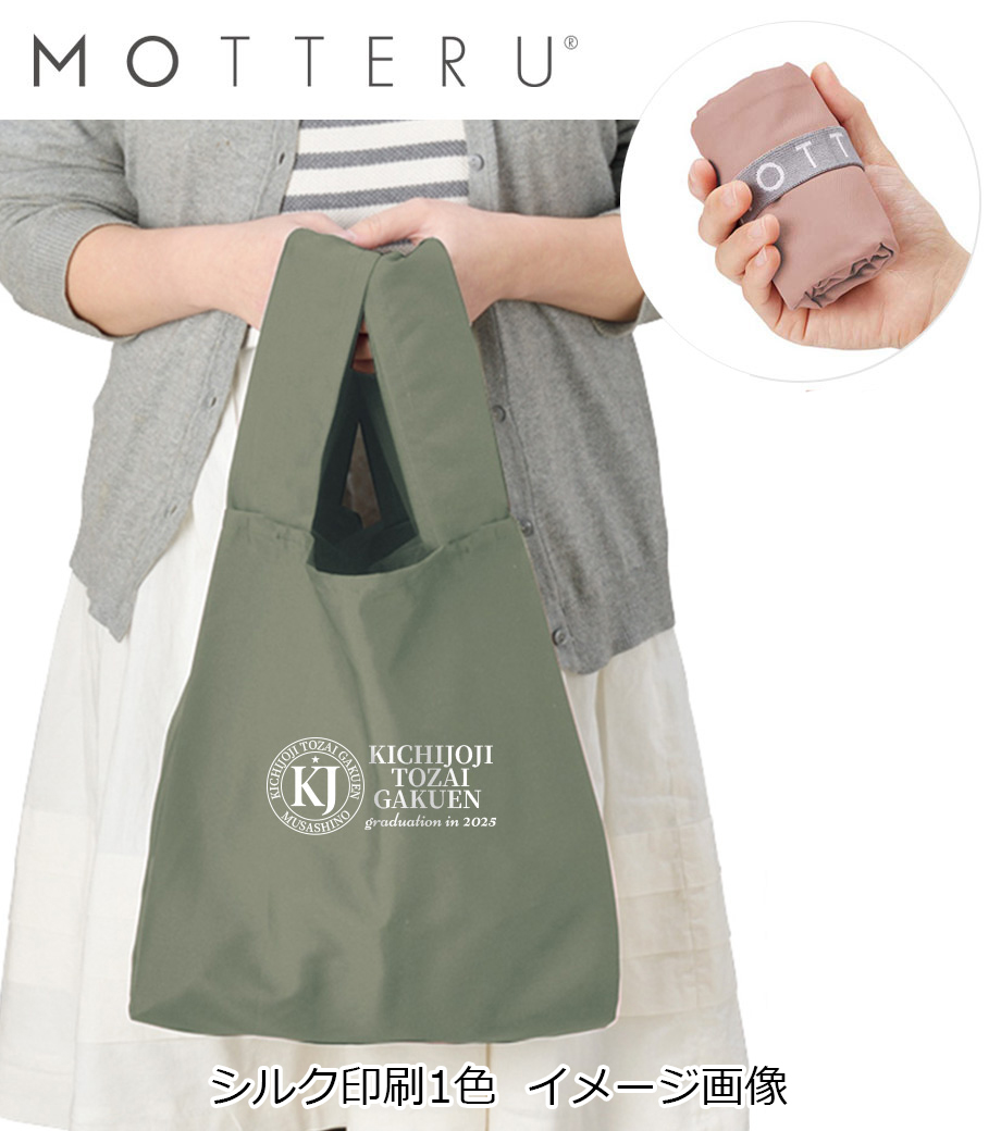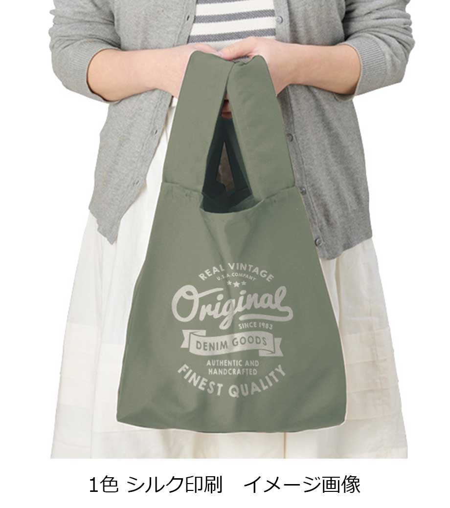 【MOTTERU】クルリト デイリーバッグ newカラーはオリジナル印刷ができるエコバッグ。しっとりとしたなめらかな触り心地で、シワが戻りやすくキレイなまま使えます。クルリとたためば手のひらサイズのコンパクトに。折り畳み用のゴムバンドは縫い付けられているので無くす心配がありません。レジ袋型でかさばる荷物もすっきり収納。一度使うと他のエコバッグに戻れませんよ!