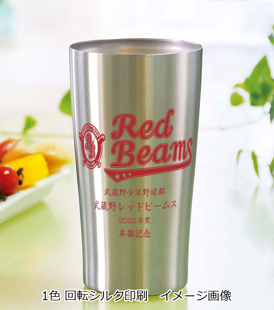1色で名入れが可能。グルッと広範囲に印刷することもできます。