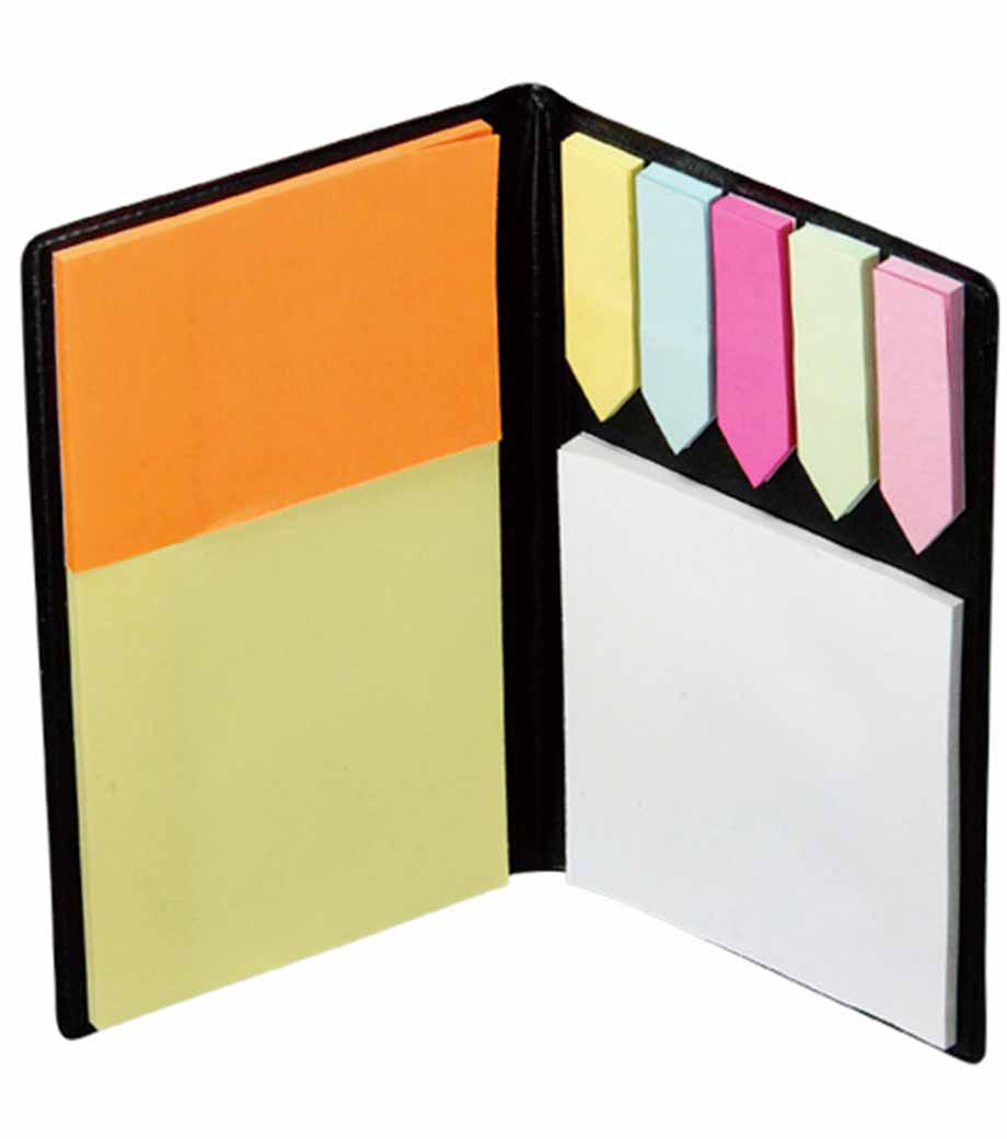 実用的なステーショナリーが、こんなにスタイリッシュに変身。レザー調フセンブックは高級感のあるレザー調のカバーに、5色2サイズの付箋メモをセットしました。