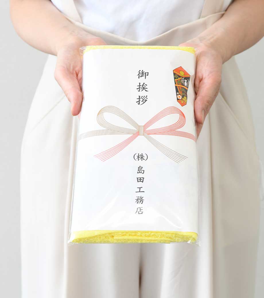自宅でもオフィスでも活用できるフェイスタオルは、ご成約記念品からイベント配布用のノベルティまで幅広く使えます。「上げ落ちジャガード織り」と呼ばれる特徴的な織り方で、イラストや文字の濃淡を表現。タオル独自の風合いを活かした、高級感ある仕上がりになります。日本製で綿100%の生地なので、肌に優しい触り心地です。