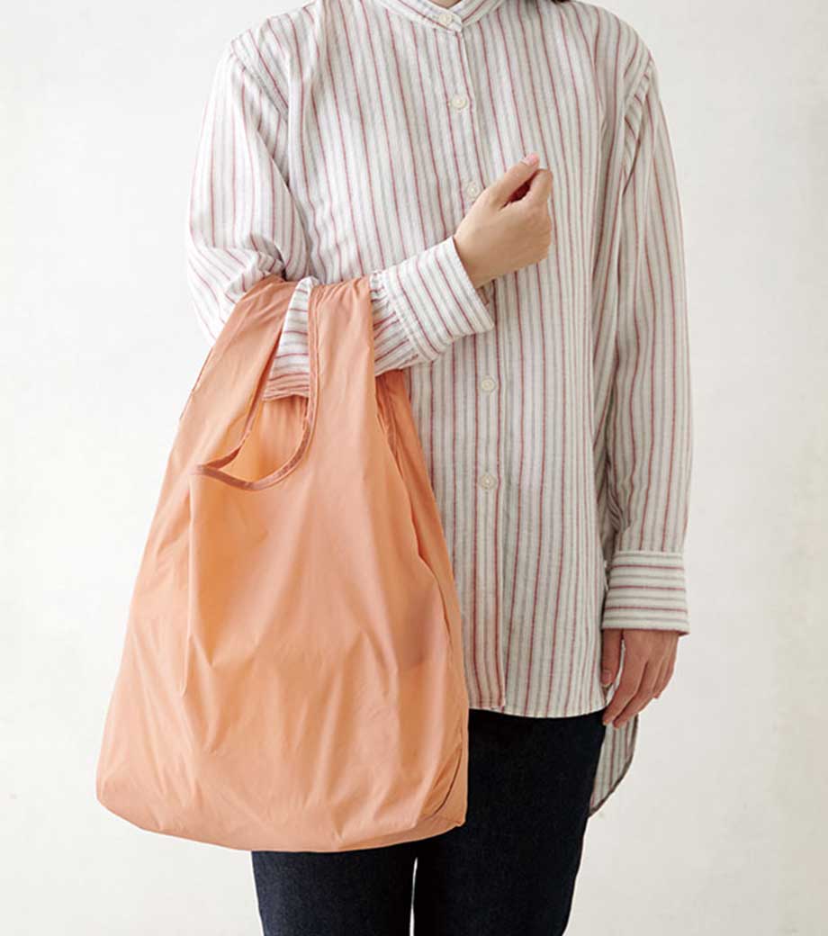 A4サイズが入るほどよい大きさで日常のお買い物はもちろん、急に荷物が増えたときのサブバッグとしても活躍します。軽くて持ち運びやすいナイロン素材のためバッグの中に常備しておけば安心。シンプルで使いやすく毎日のちょっとしたシーンで頼りになる便利なエコバッグです。