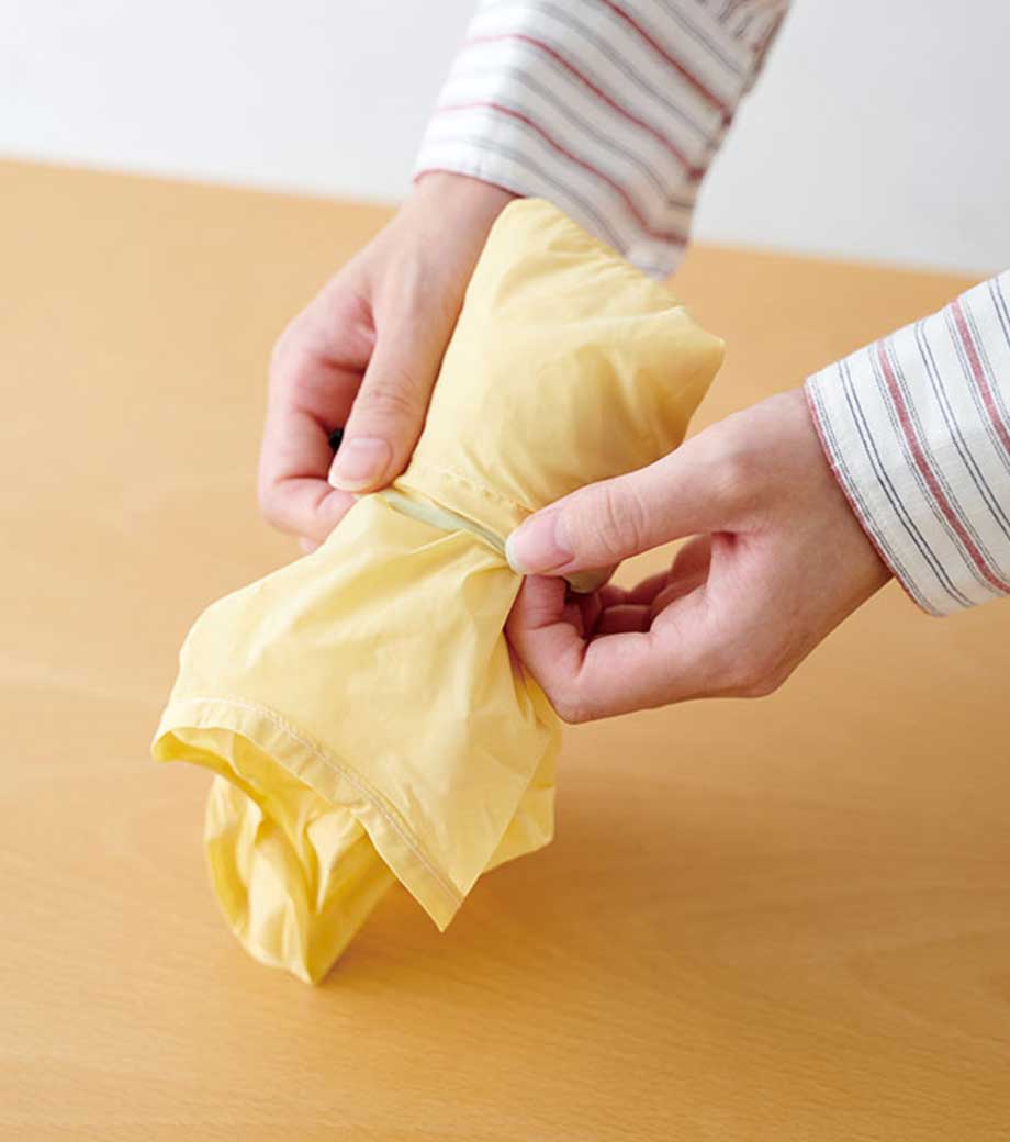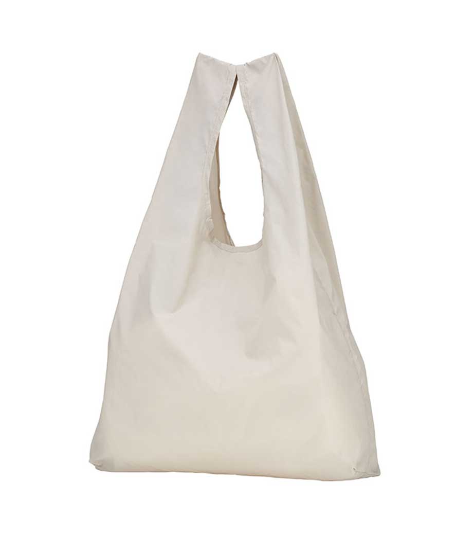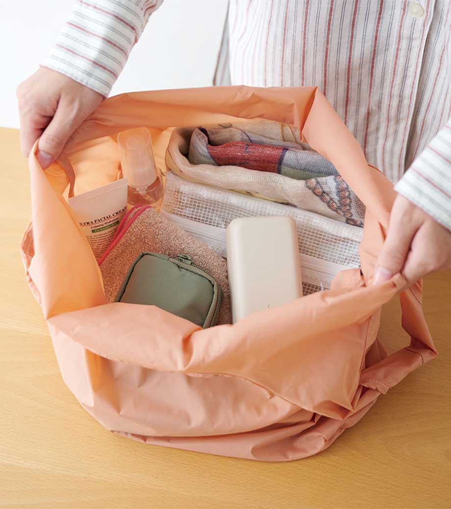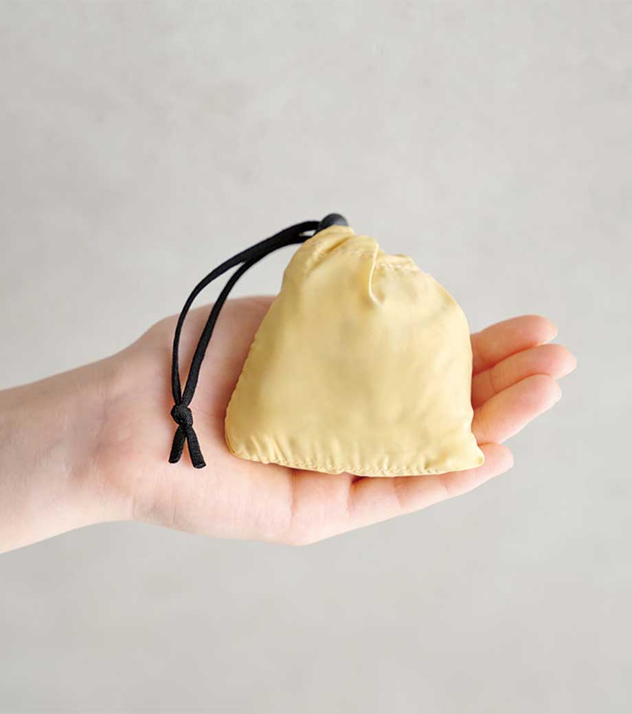 ポケットにクシャっと入れるだけで手軽にコンパクト収納できるナイロンバッグ。面倒な折りたたみ作業がいらないので使ったあともサッとしまえてストレスフリーです。