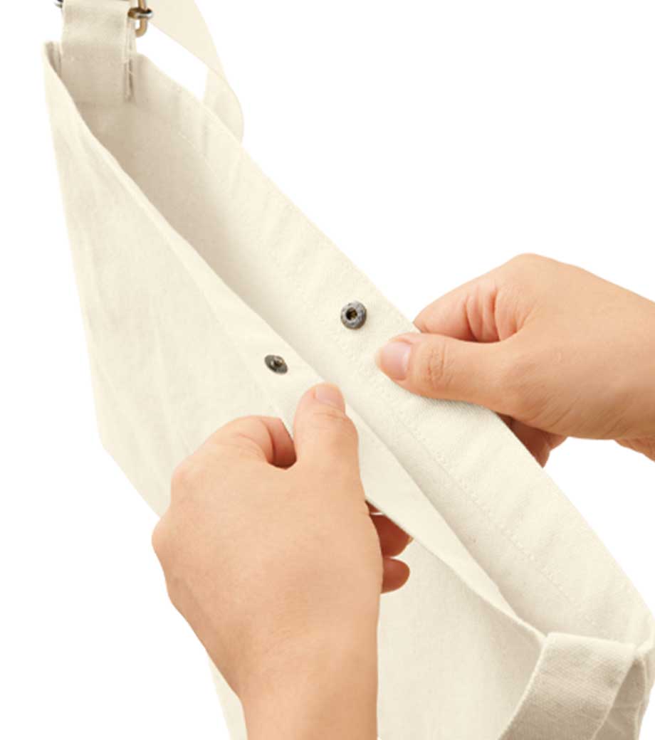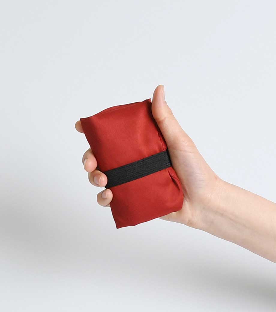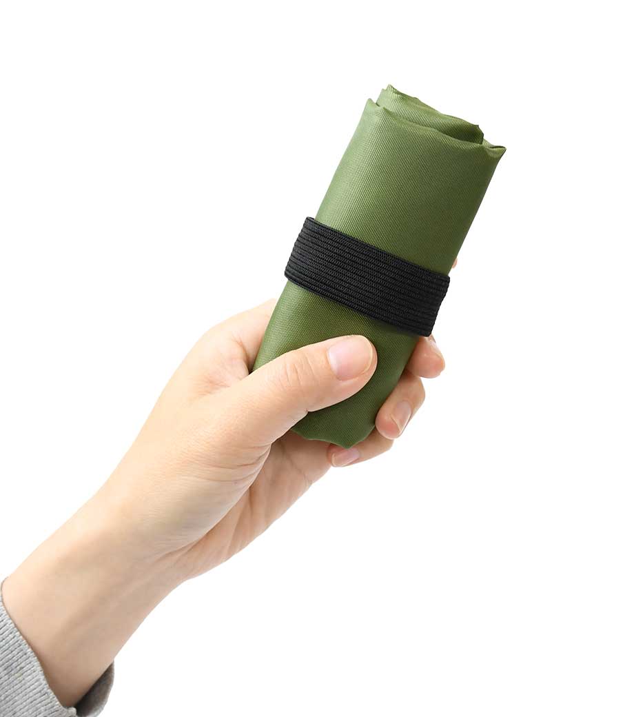 バッグ本体はスッキリとコンパクトに折り畳むことができ、面ファスナーで留めるだけのお手軽さ!普段使うバッグに忍ばせておけばいつでもさっと取り出せます。