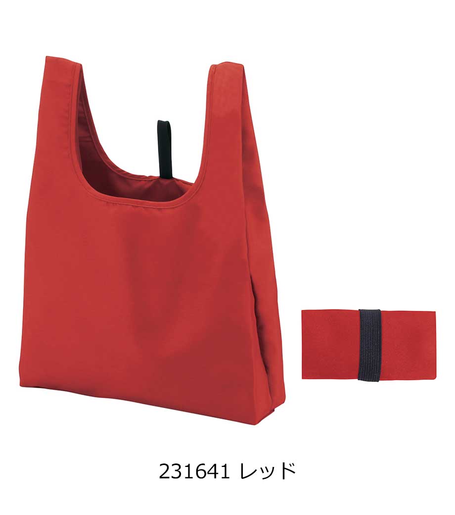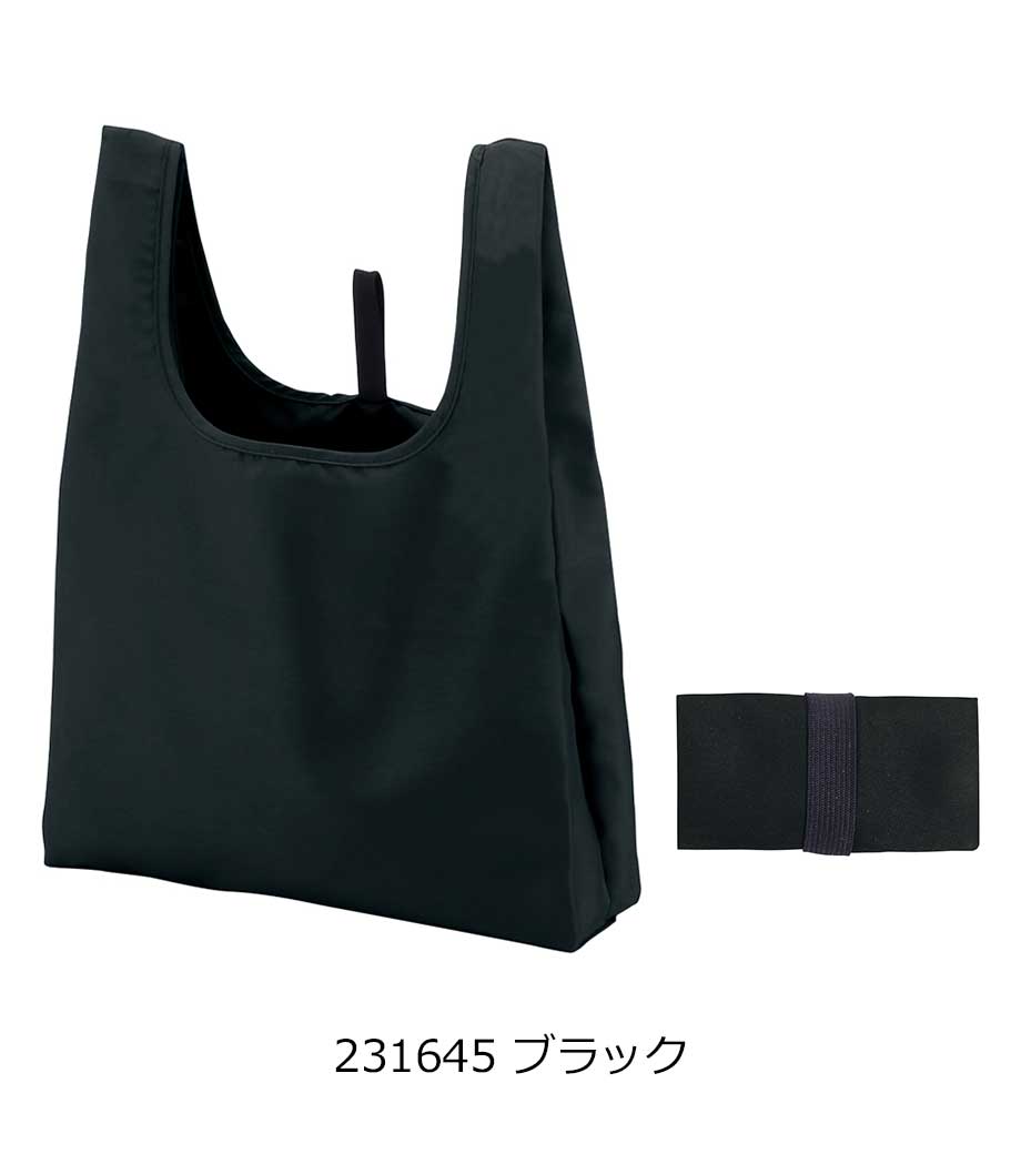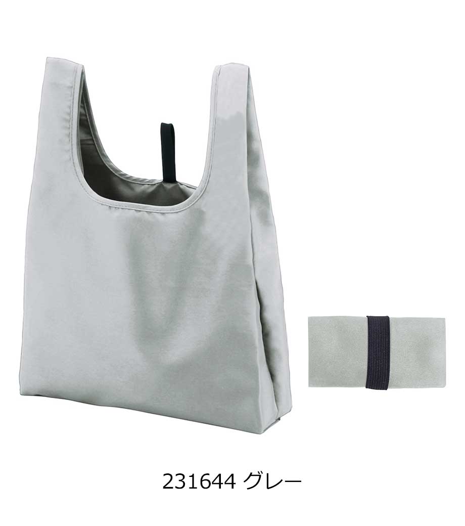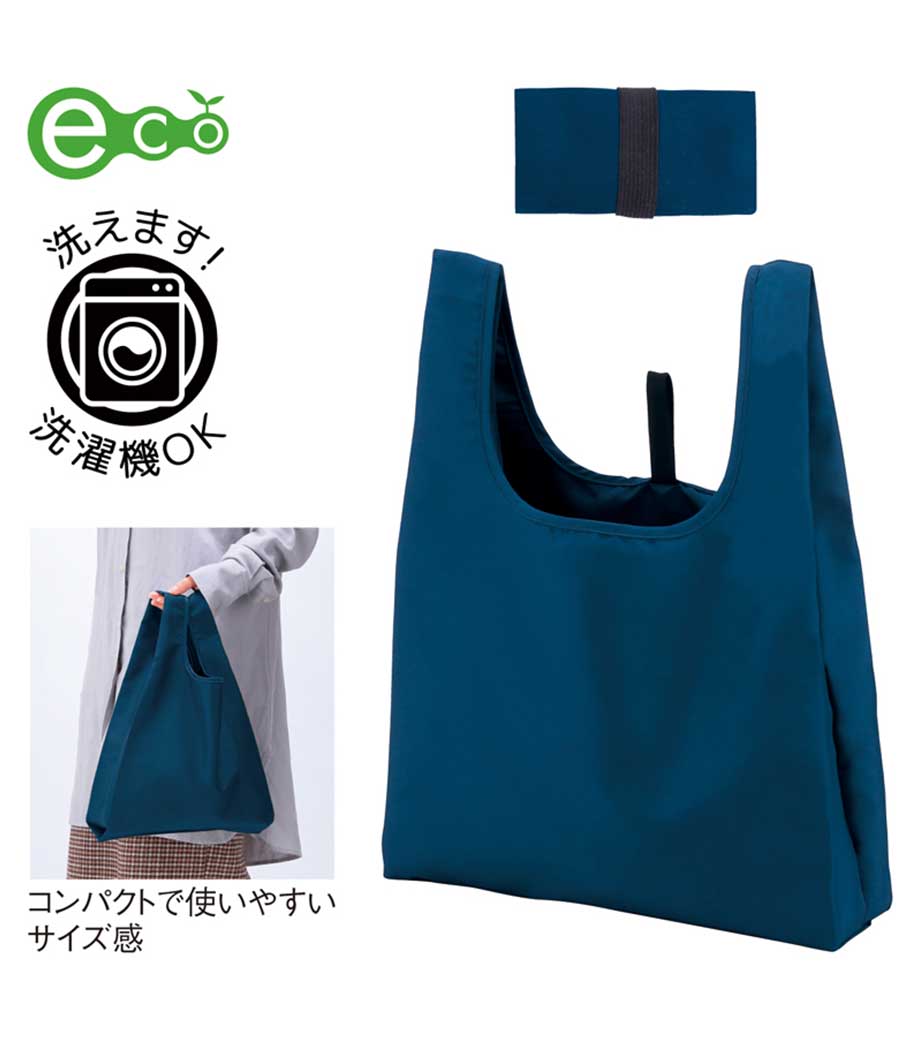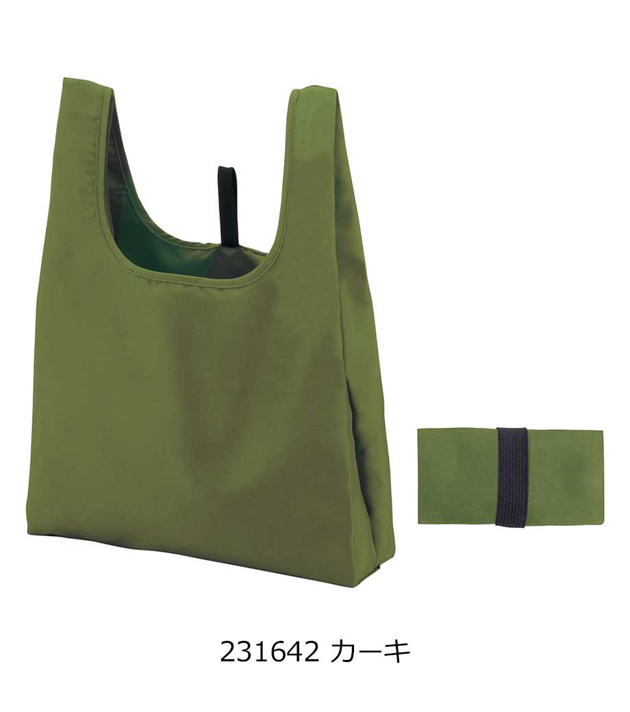ゴムバンド付きのポリエステル製エコバッグ。くるっと畳んでゴムバンドで留めれば、手のひらサイズに早変わり。カバンの中でもかさばらず、持ち運びに便利です。肩にかけられる持ち手で、重い荷物も持ちやすいのがうれしいですね。