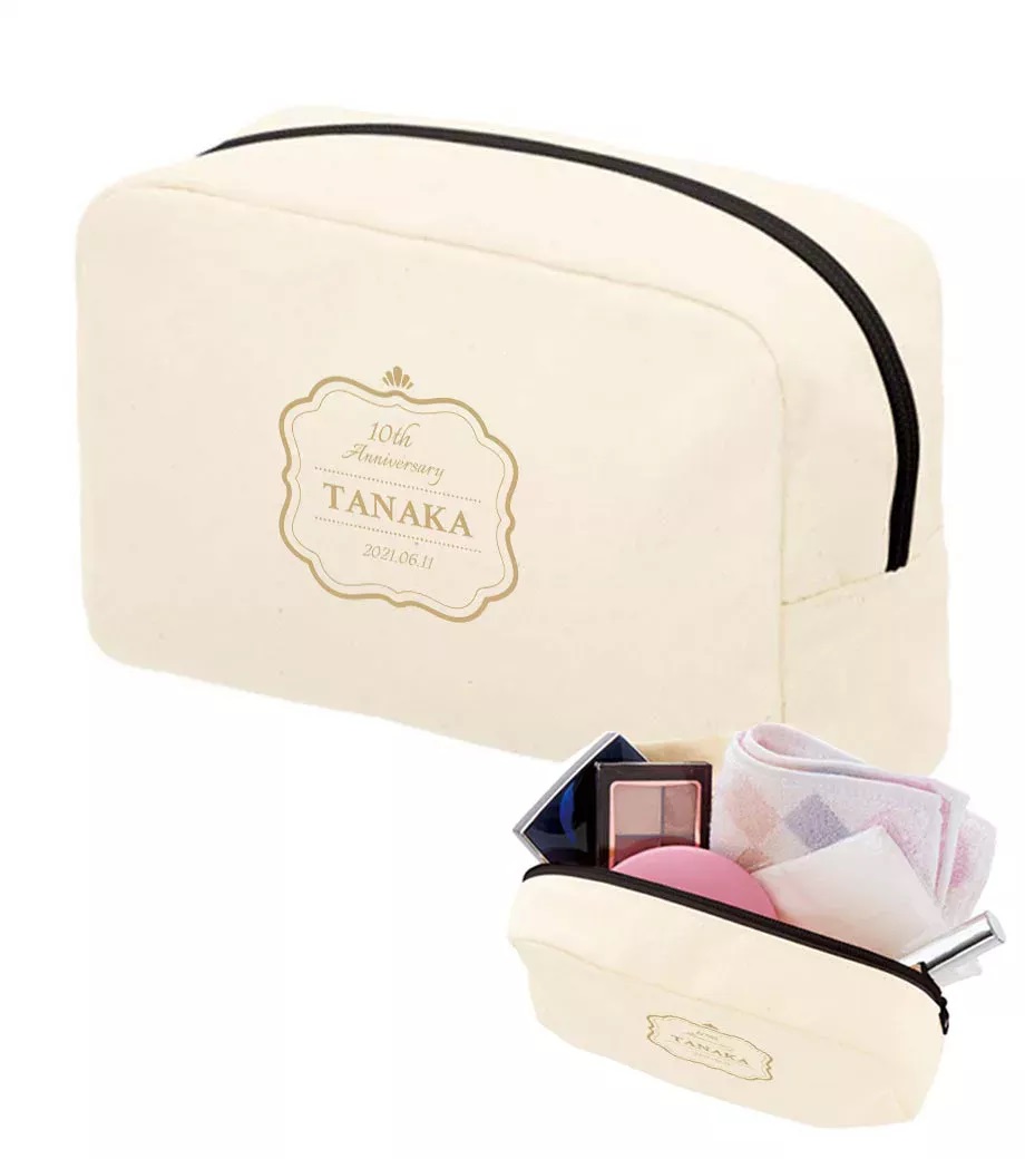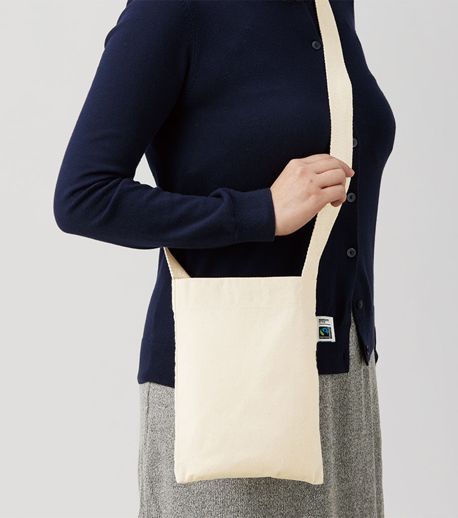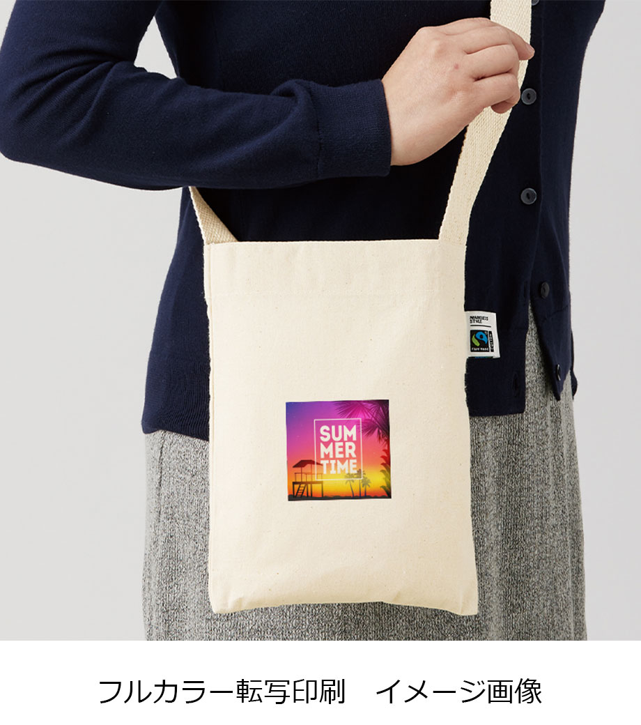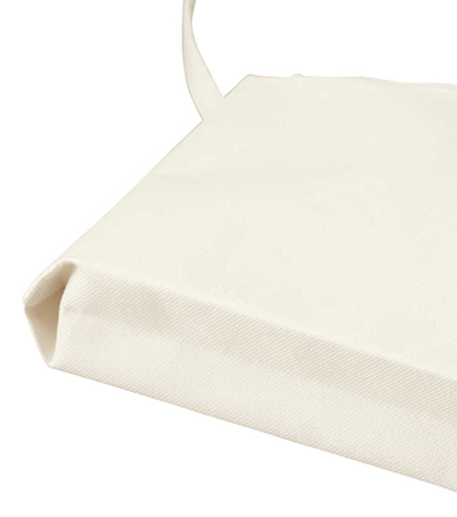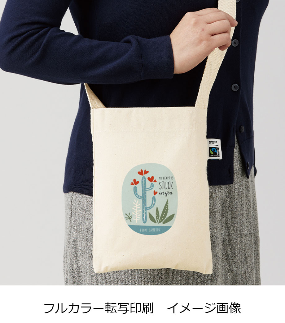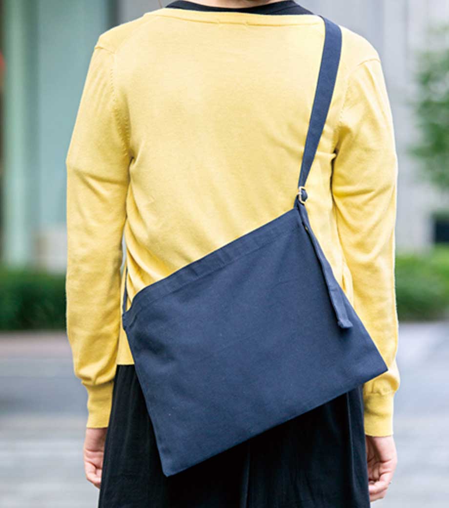 厚手コットンサコッシュは、A4サイズも収納可能なヨコ型のスタイリッシュなバッグ。目が詰まった5オンスの生地を使用しているので、軽量でやわらかさを残しつつ中身が透けにくい仕上がりになっています。名入れがよく映えるシンプルなデザインで、資料が多くなりがちな展示会やオープンキャンパスのノベルティにピッタリです。