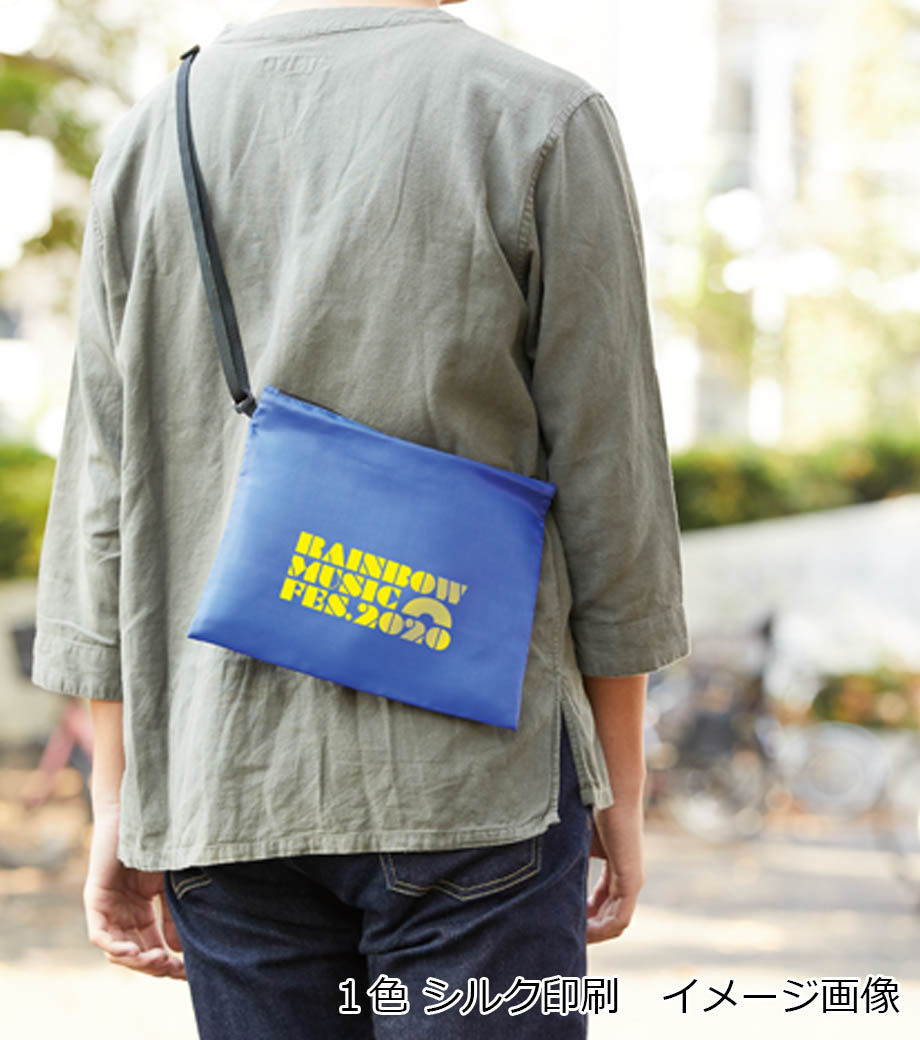 バッグ本体またはフラップ部分に1色・本体にフルカラー名入れ印刷が可能です。バッグ本体は大きく印刷でき、販促効果が期待できます。フラップ部分はワンポイントで印刷でき、折り畳んだ状態でもロゴが見えます。小さく畳んで個包装されているので配布しやすく、メール便でも発送できます。環境問題啓発イベントやキャンペーン、開店記念品や購入特典など幅広いシーンで人気です。