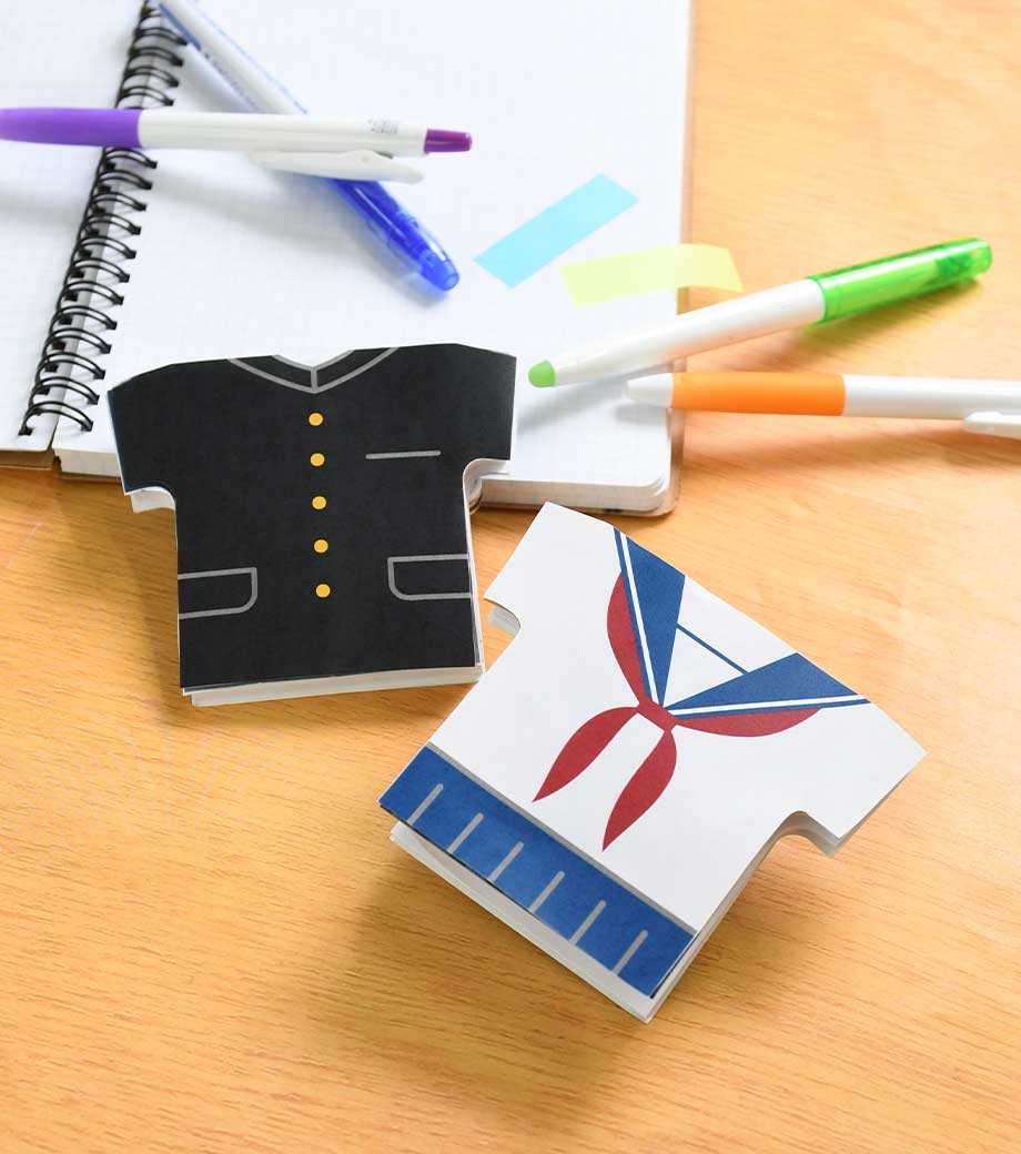 デスクに置いても、手帳に挟んでも、どこでも思い出と一緒。オープンキャンパス・入学・入園の記念品のほか、卒業対策委員の皆様から卒業生や卒団生への贈り物として。青春の1ページを、このふせんで形に残してみませんか?