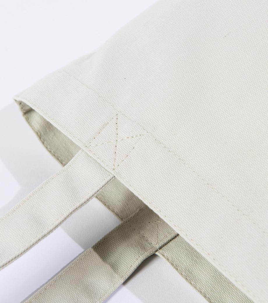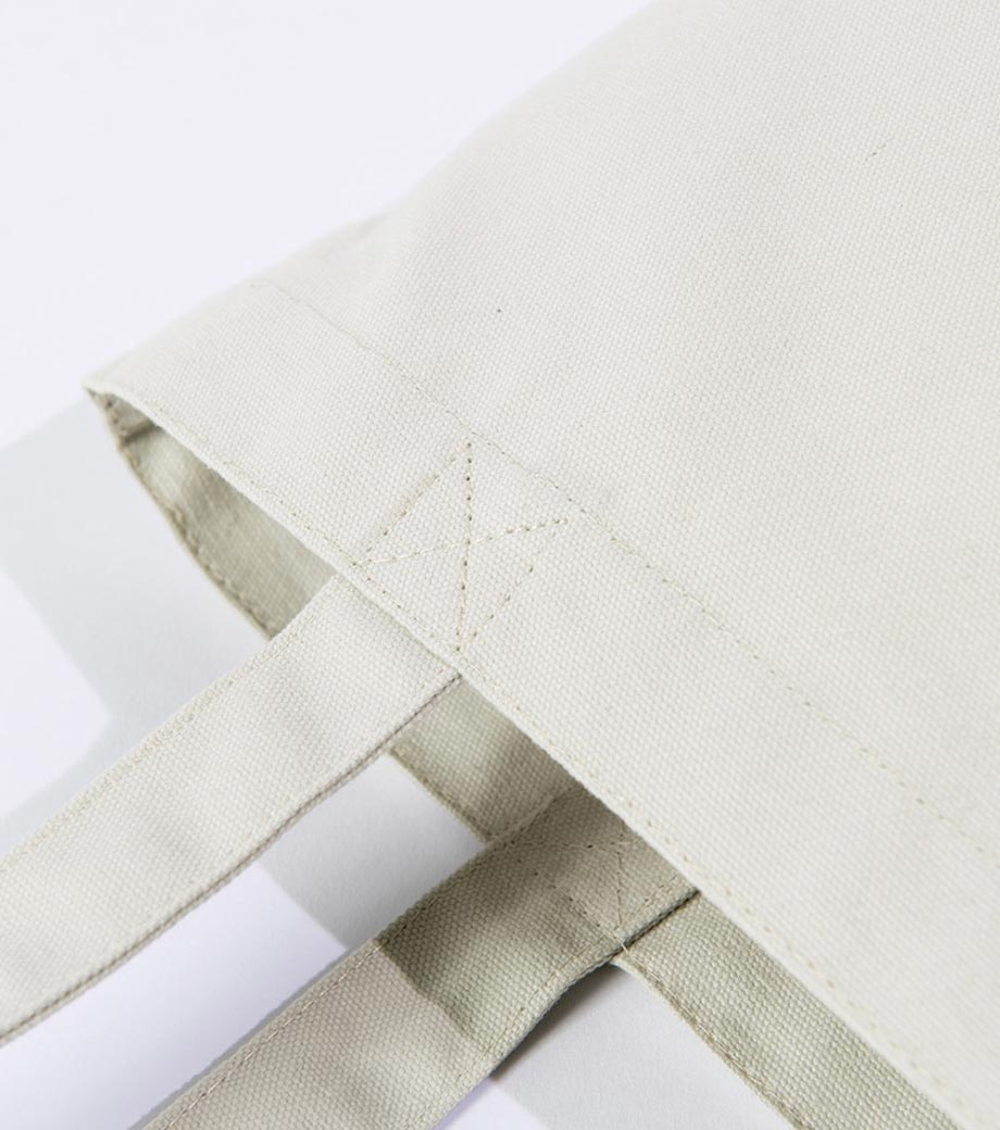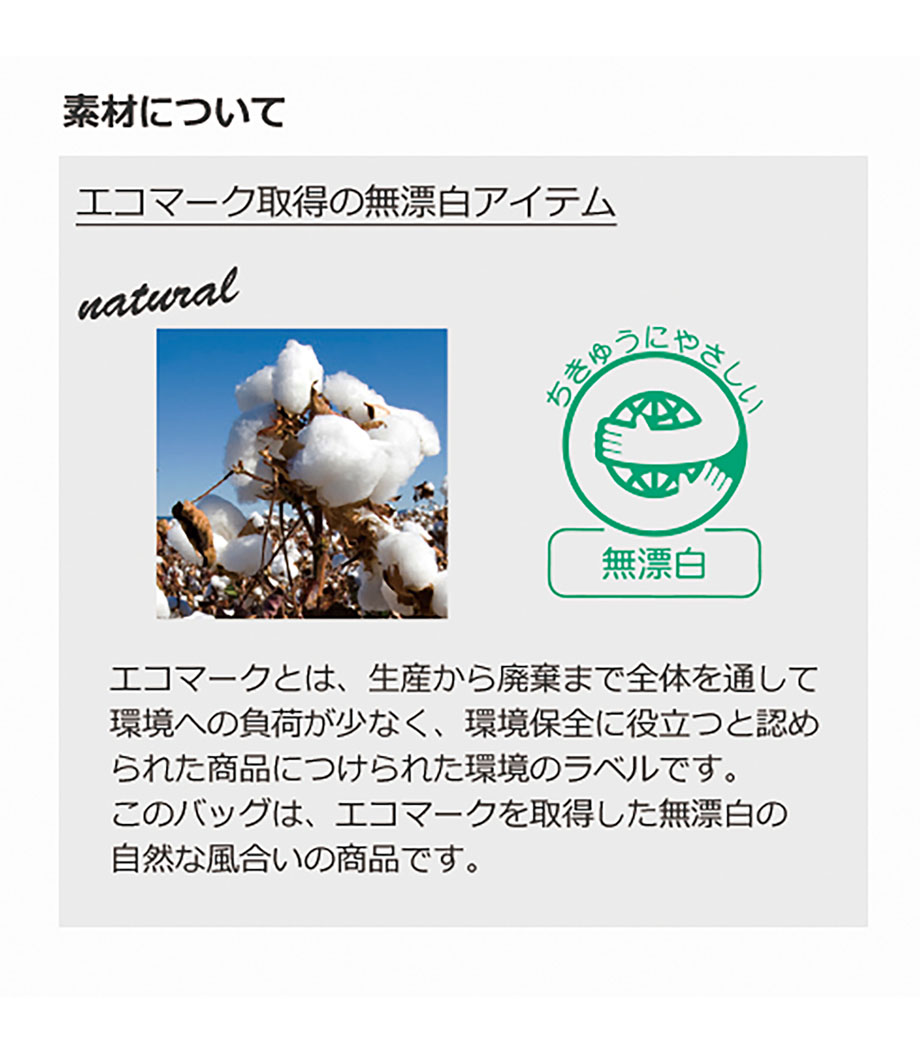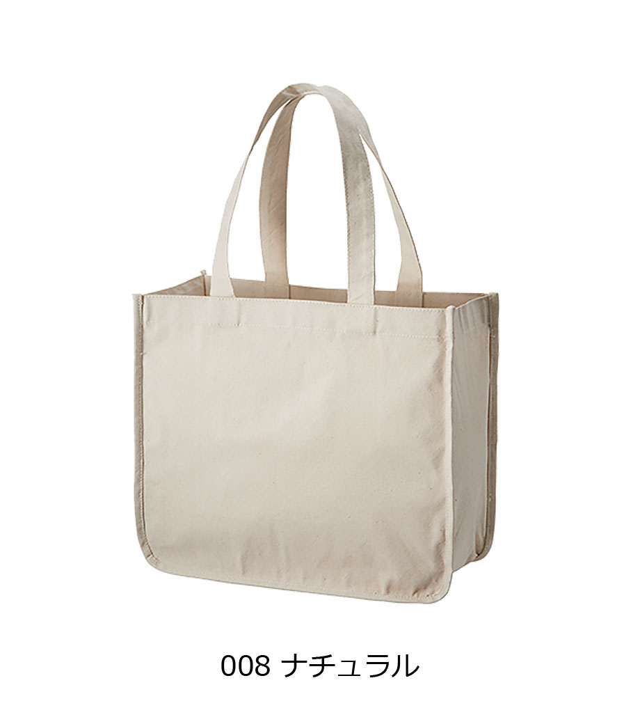 生地は丈夫で厚みのある12オンス生地を採用しています。しっかり収納できるマチ付きで、2Lペットボトルが縦に丁度入る大きさ。普段使いにピッタリなカジュアルなデザインは、世代を問わずお使いいただけます。