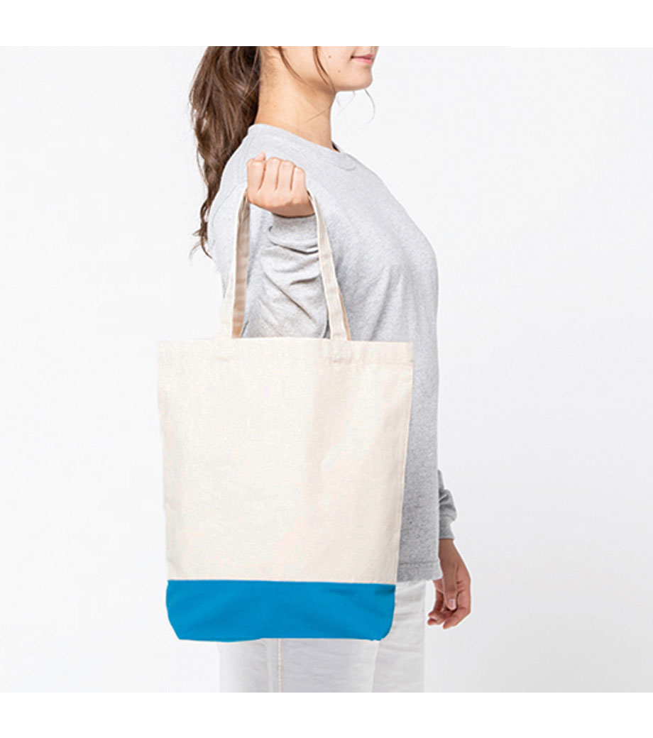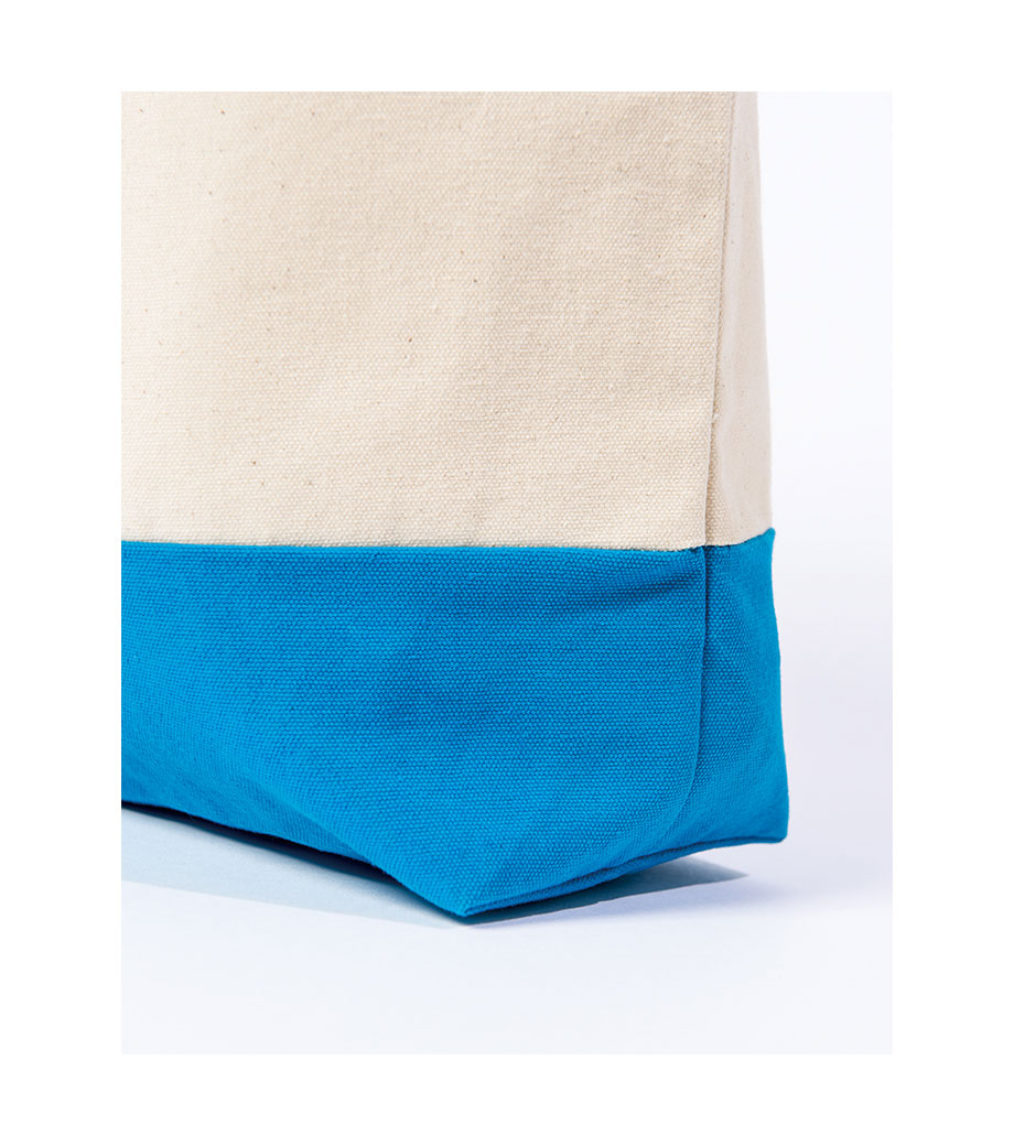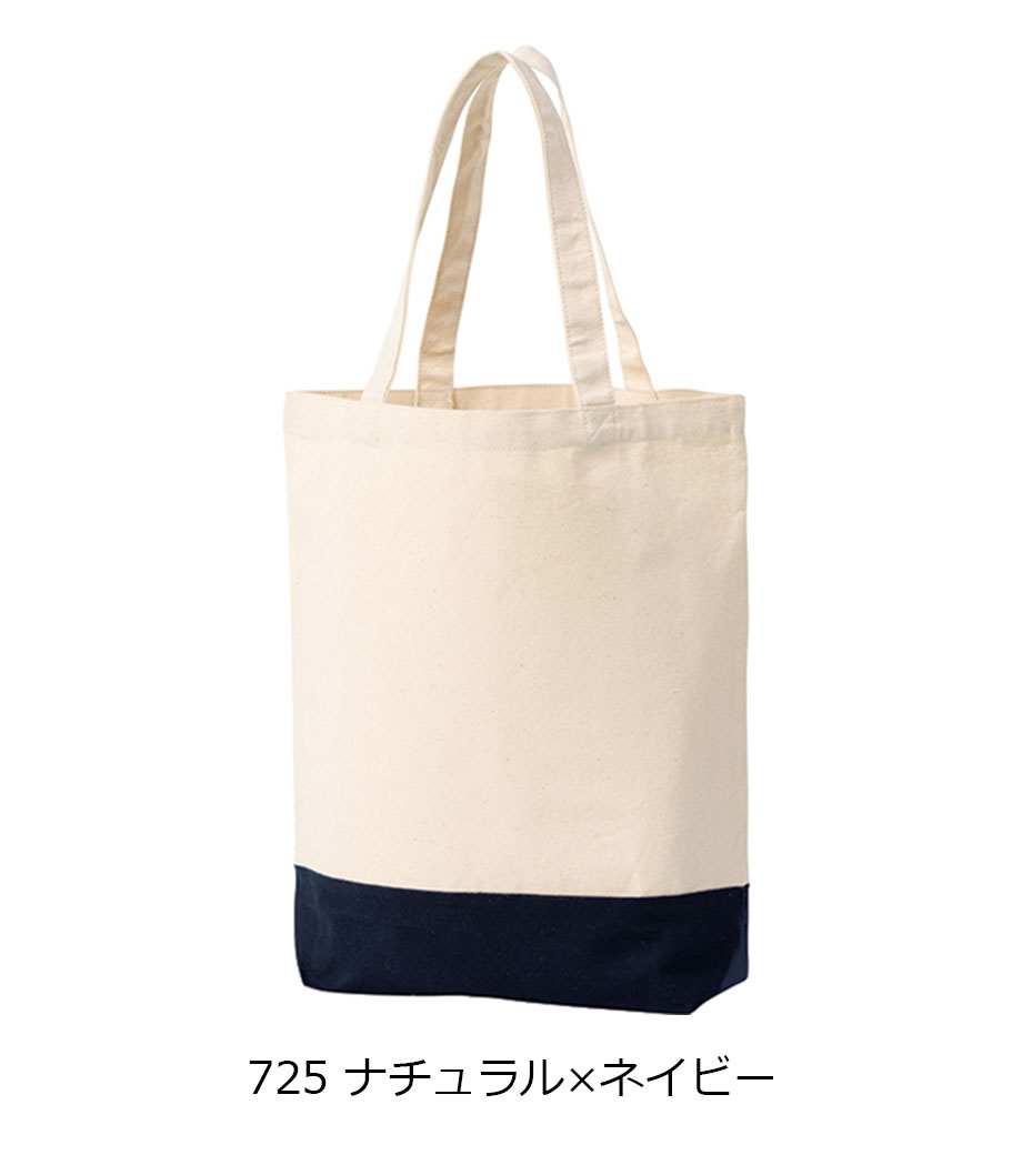 キャンバスツートントート (M)はナチュラルコットンをベースに、バイカラーでアクセントを利かせたトートバッグ。A4サイズがすっぽり入る大きさです。ハリのある少し堅めの12オンス生地で、耐久性も期待できます。