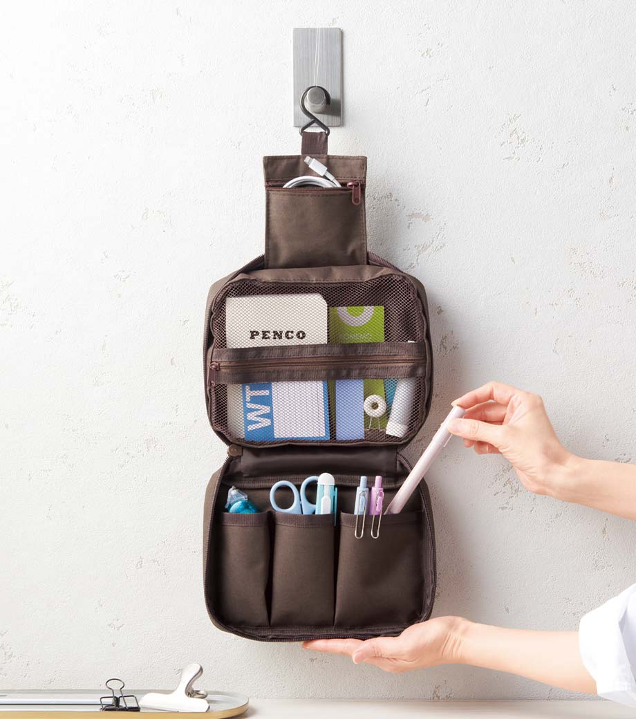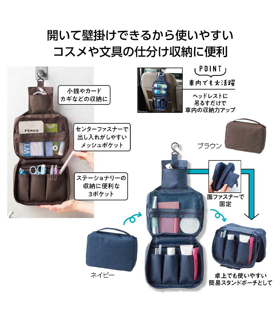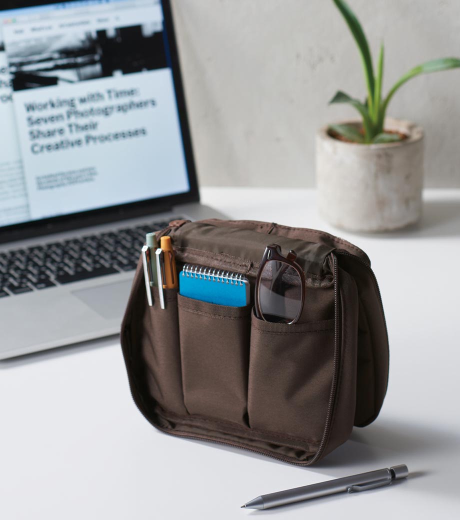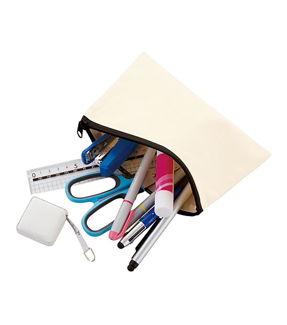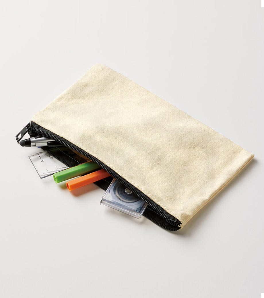 「キャンバスフラットポーチ(S)」はバッグに入れてもかさばらない薄型なので、メイクアップ用品やアクセサリー、ステーショナリーなどの持ち運びに便利。