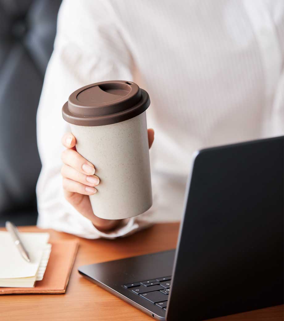 バンブーファイバー配合マグカップは環境に配慮したエコ素材のマグカップです。竹を配合したバンブーファイバー樹脂を使用しています。安価で軽量、割れにくく繰り返し使えるのが魅力です。マットな質感と竹繊維の風合いがお洒落!環境保護に貢献できる素材で作られているので、イベントや展示会での企業アピールに効果的です。
