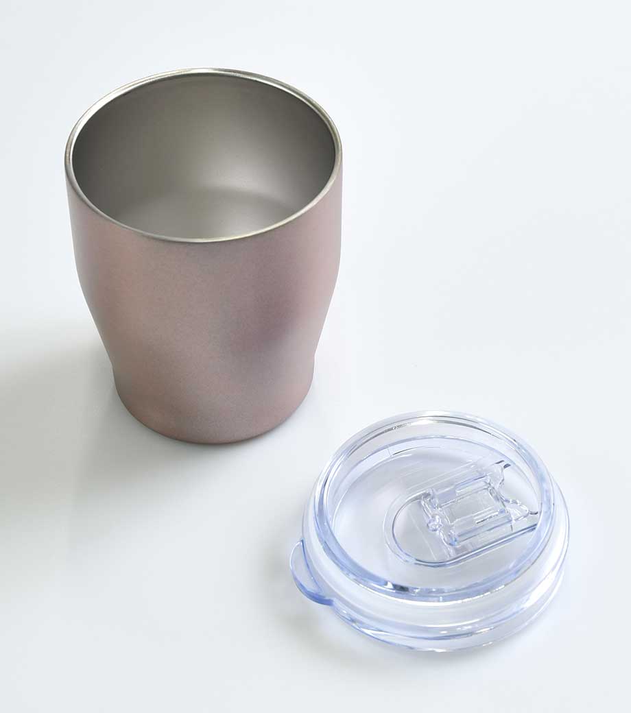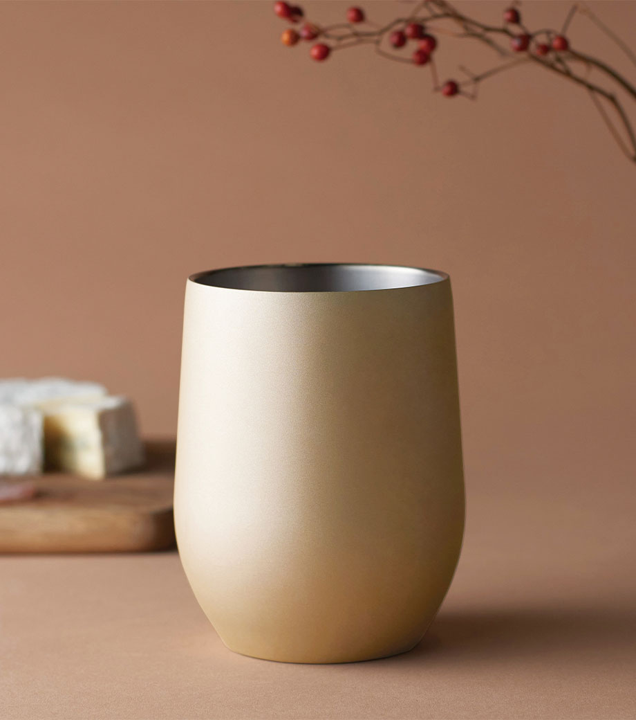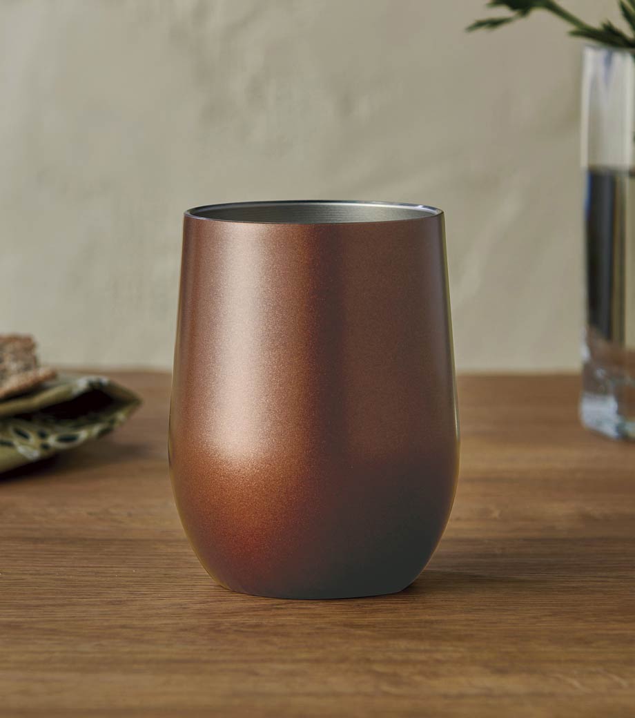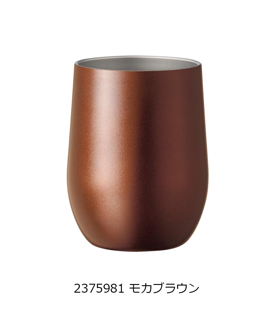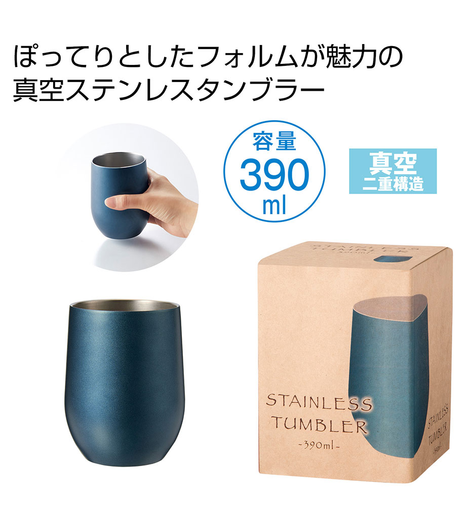 真空ステンレスサーモタンブラー 390ml 1個は、保冷温効果抜群の真空二重構造タンブラー。価格以上に高級感があり、ご成約記念品などのノベルティに大人気です。手に馴染む安定感ある丸みをおびたフォルム。幅の広い口径で飲みやすく、大きな氷もすんなり入ります。冷たい缶ビール1本が泡ごと楽しめる、容量390mlです。ゴージャスで光沢感あるシャンパンゴールド・ネイビー・ブラック・モカブラウン4色からお選びいただけます。