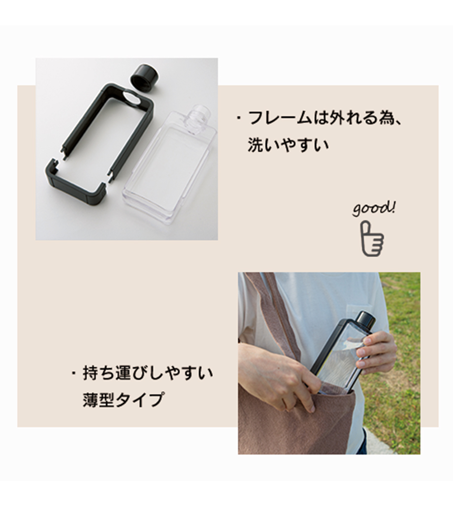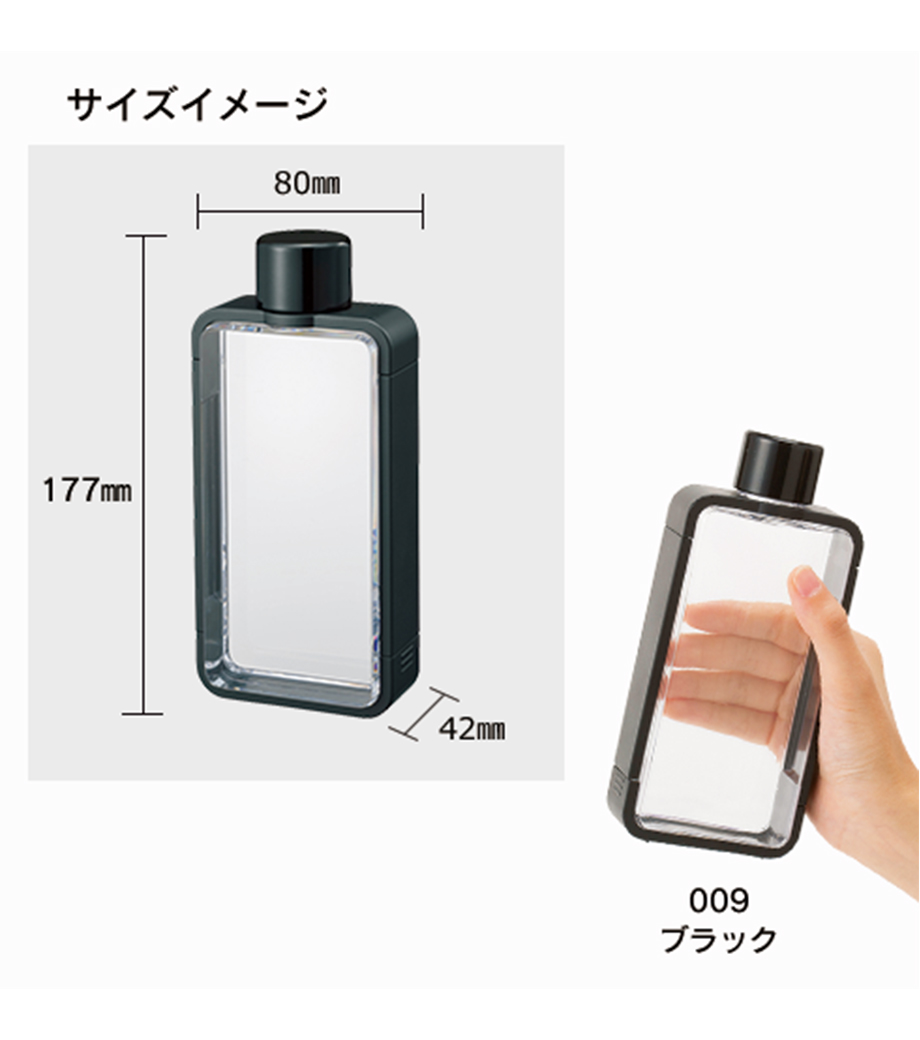 スリムクリアボトルはフルーツティーやアイスティーをおしゃれに持ち歩けるマイボトル。雑貨屋さんでも見かけるクリアボトルに、オリジナルのプリントができます。容量は約500mlで、飲み物だけでなく布製品や食品を入れるパッケージ用途にも人気です。