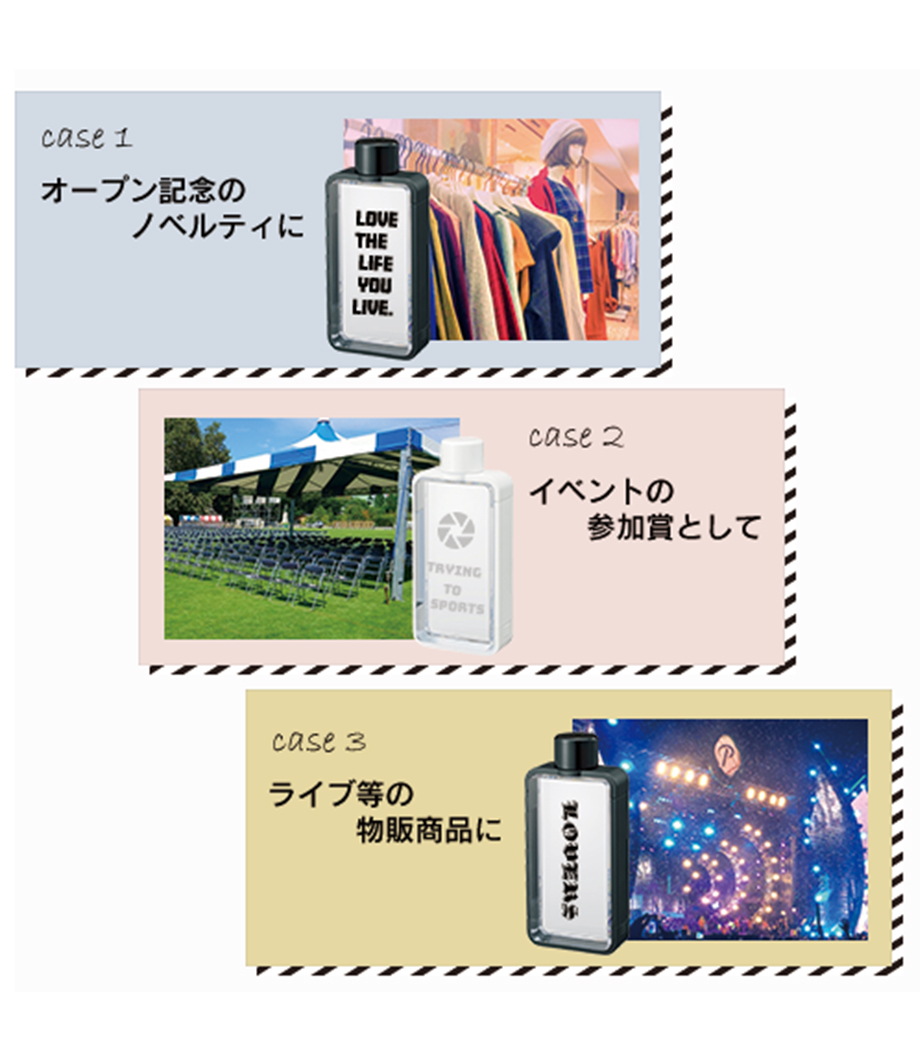 名入れは1色からフルカラーまで対応しており、オリジナルのノベルティを製作できます。広めのプリントができるので宣伝効果もバツグン。ノベルティとしてはもちろん、お店の物販やライブグッズとしてもおすすめです。
