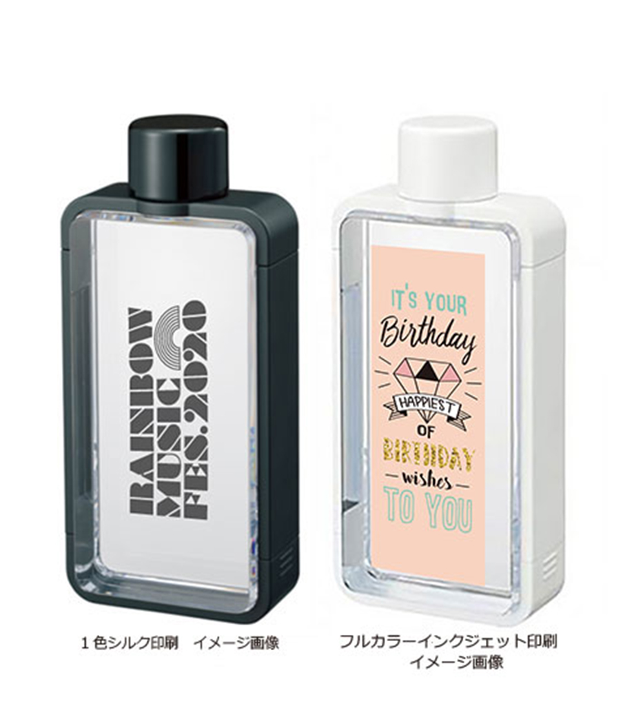 名入れはケース上部または下部に1色印刷が可能です。ブランドやショップロゴを入れた購入特典などにいかがでしょうか。厚さ3mmと薄型なのでメール便を使ったポストインでのお渡しも可能です。