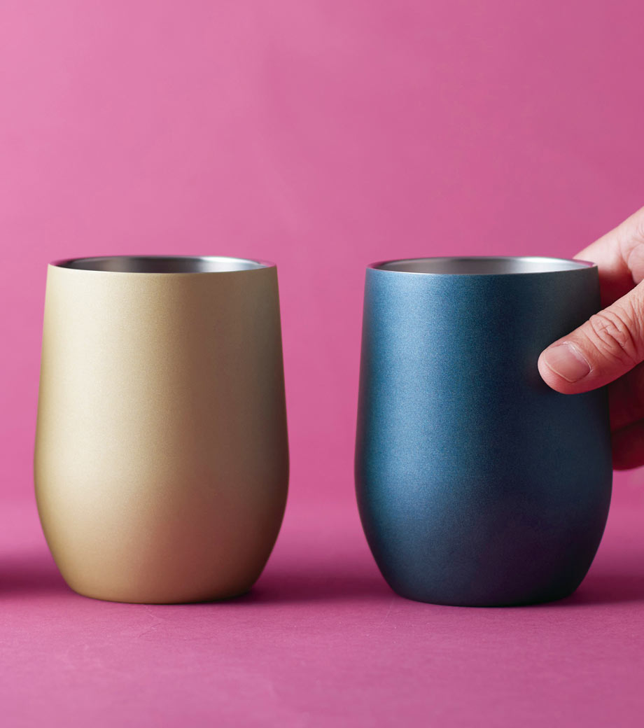 真空二重構造でしっかり保冷温できる大人気のタンブラー。シックで重厚感があるので男性の手にも馴染み、がっしりホールドできる持ちやすい大きさです。幅の広い口径で飲みやすく、大きな氷もすんなり入れられます。お値段以上の高級感で幅広い層で使いやすいカラー4色展開。