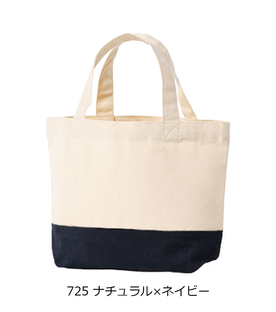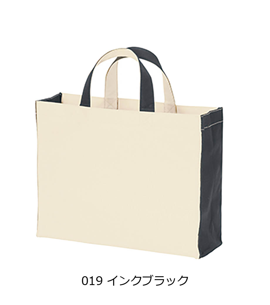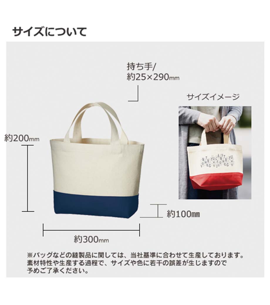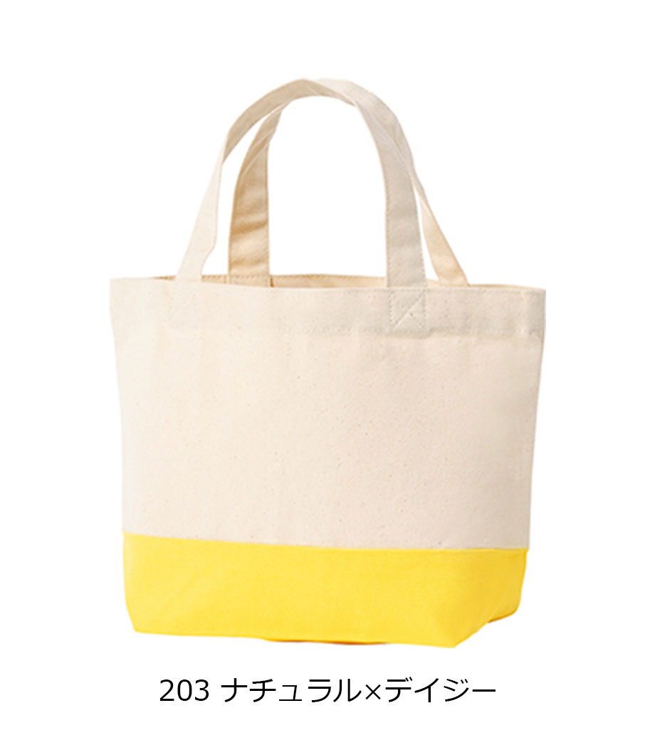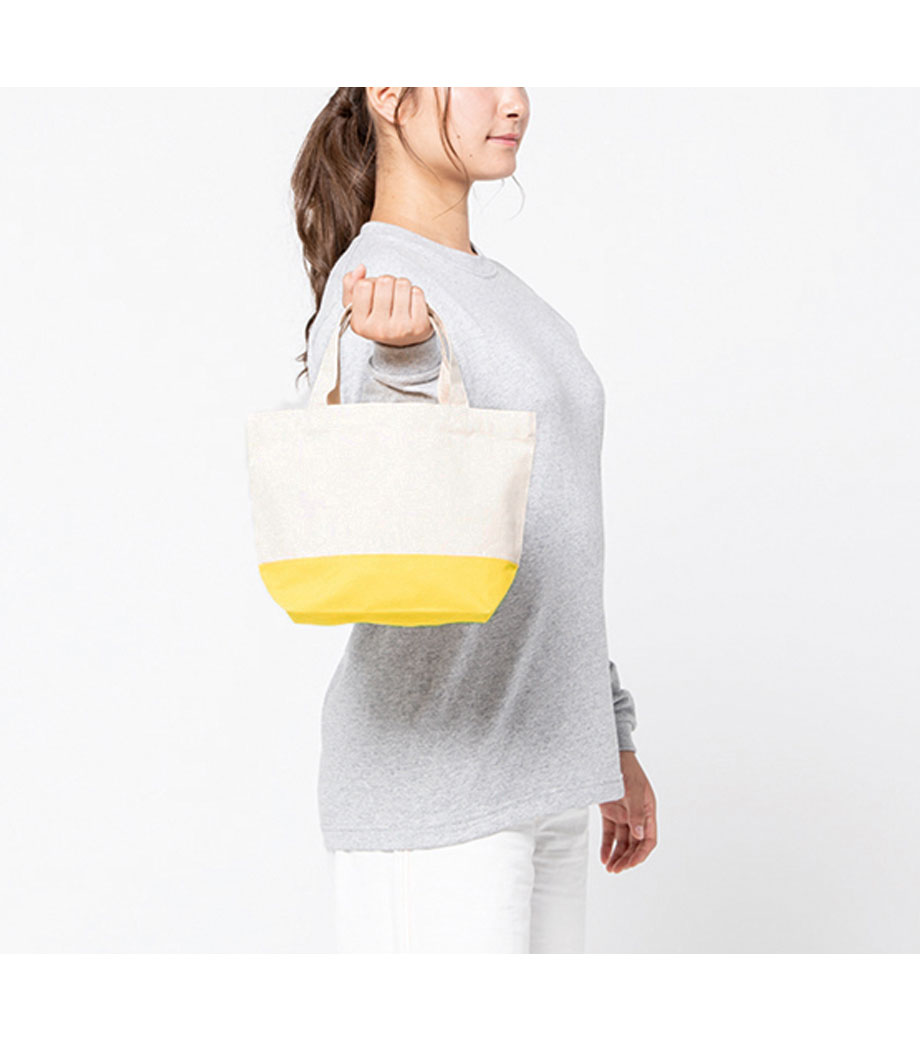 キャンバスカラーボトムトート(S) は、ツートンカラーがポイントのマチ付きランチバッグです。名入れ部分を広く取れるのが特徴で、 本体色をアクセントにオリジナルの名入れがしっかり目立ちます。