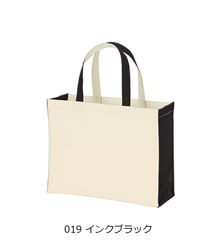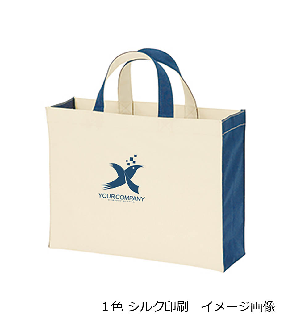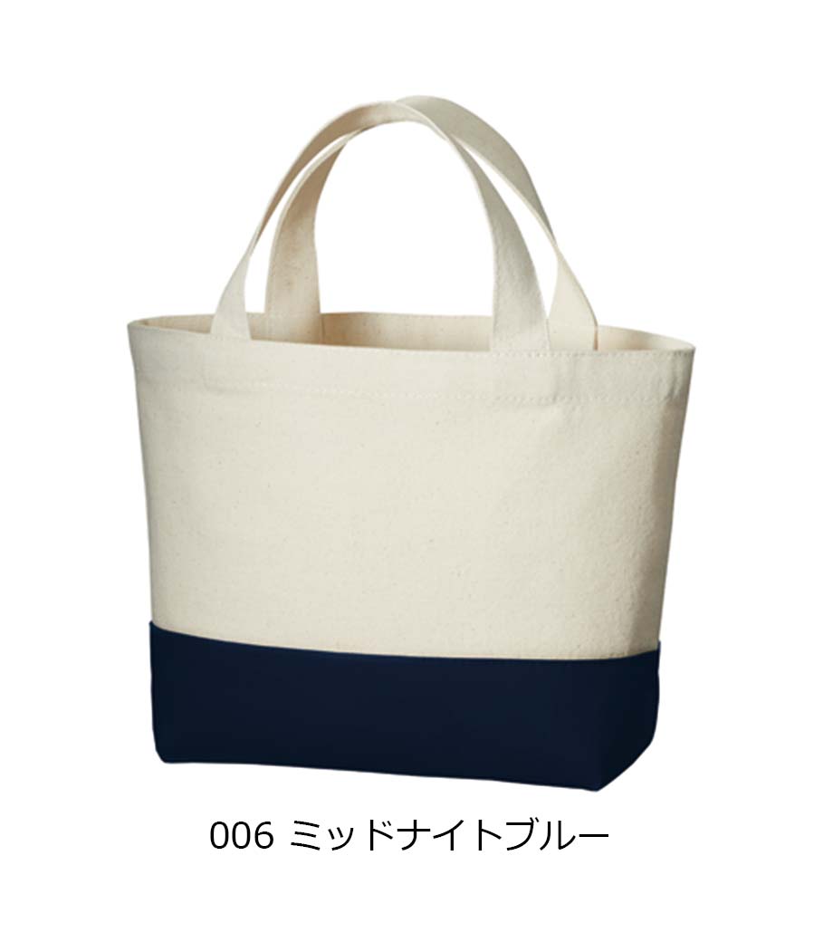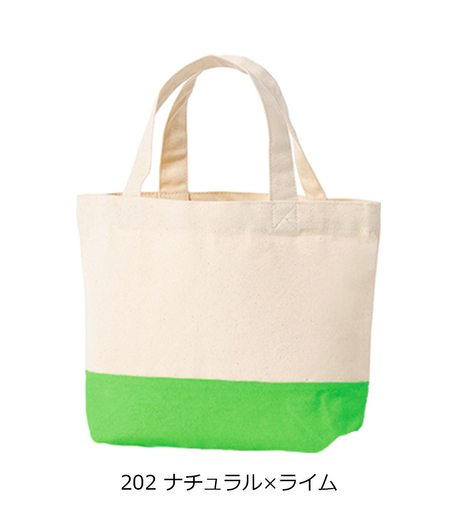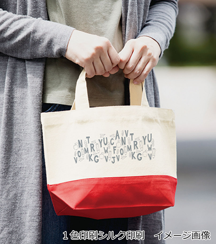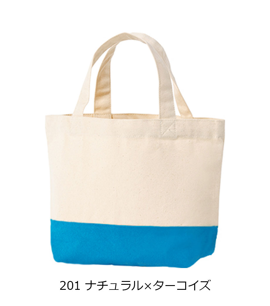 キャンバスカラーボトムトート(S) は、ツートンカラーがポイントのマチ付きランチバッグです。名入れ部分を広く取れるのが特徴で、 本体色をアクセントにオリジナルの名入れがしっかり目立ちます。