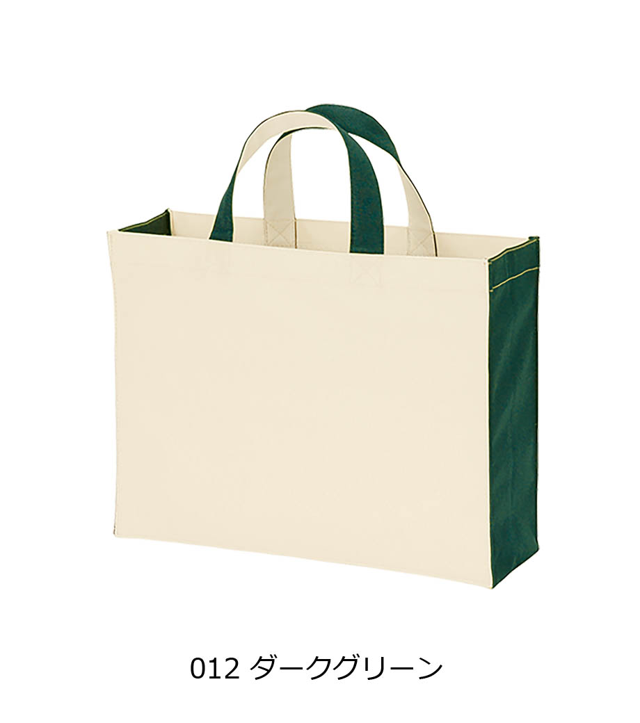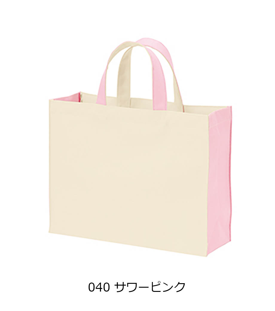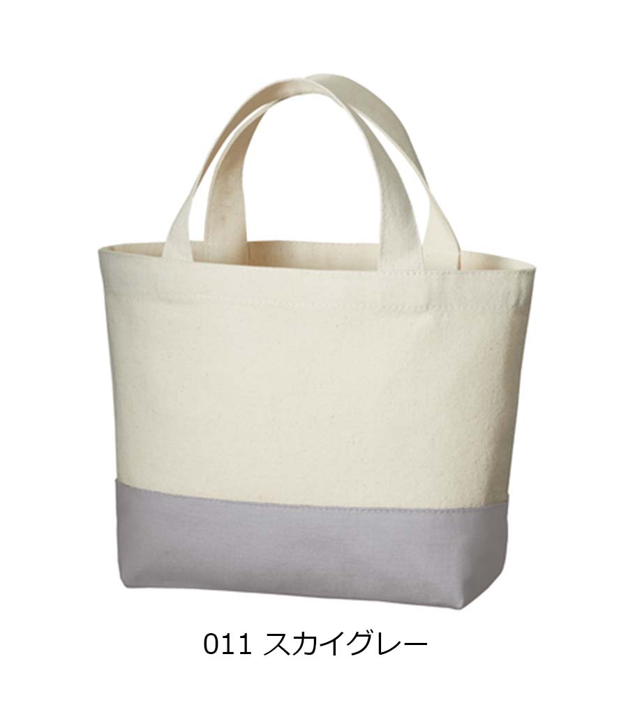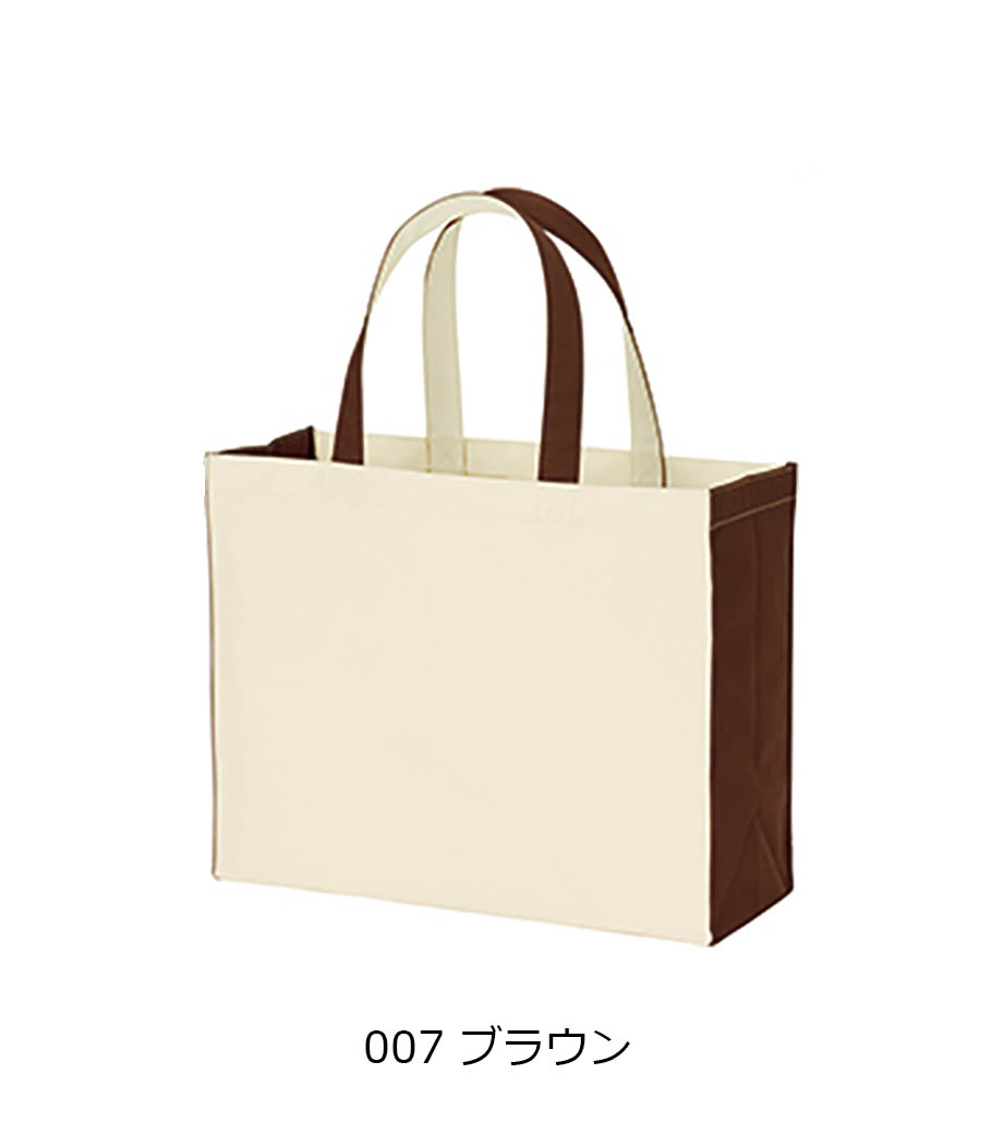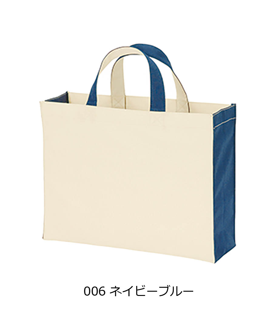 キャンバスカラーボトムトート(S) は、ツートンカラーがポイントのマチ付きランチバッグです。名入れ部分を広く取れるのが特徴で、 本体色をアクセントにオリジナルの名入れがしっかり目立ちます。