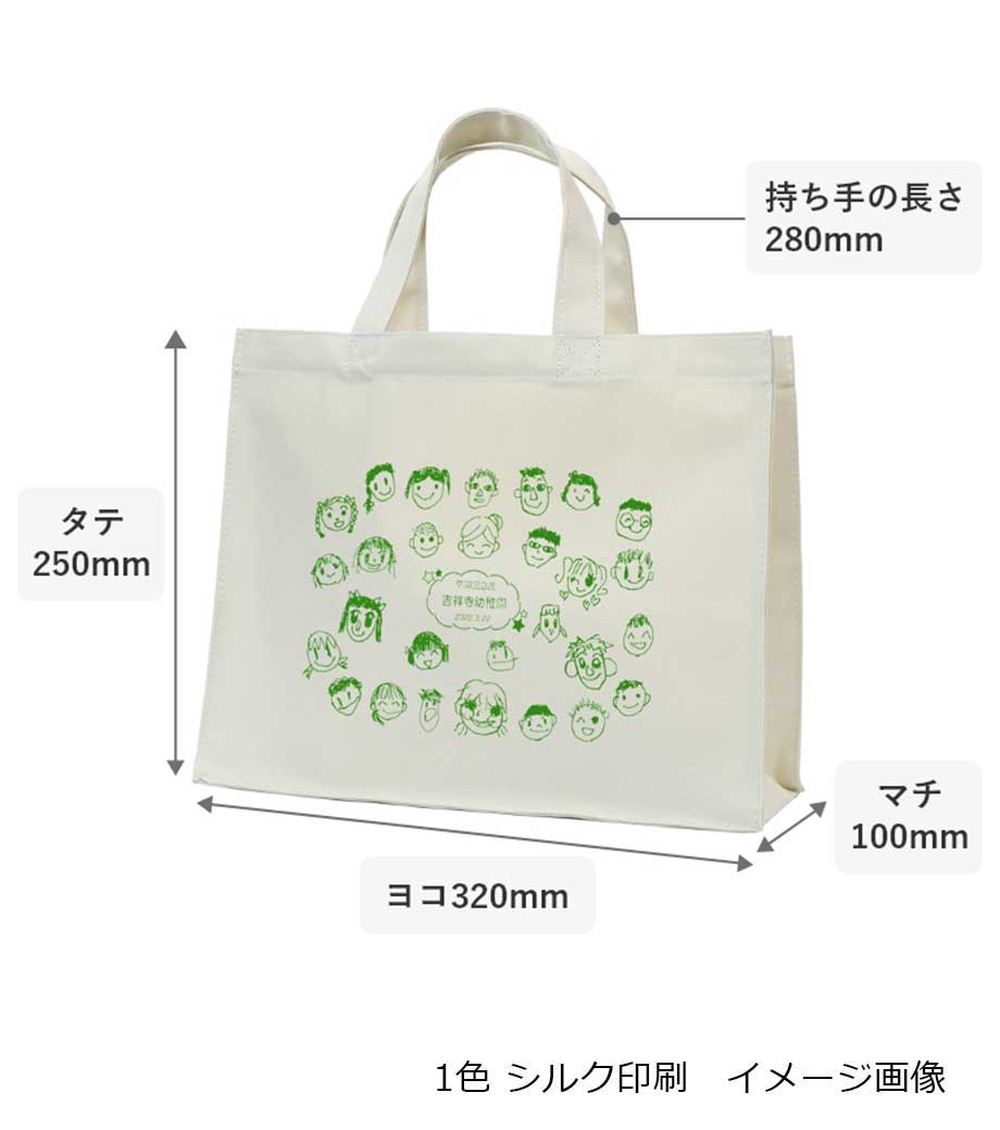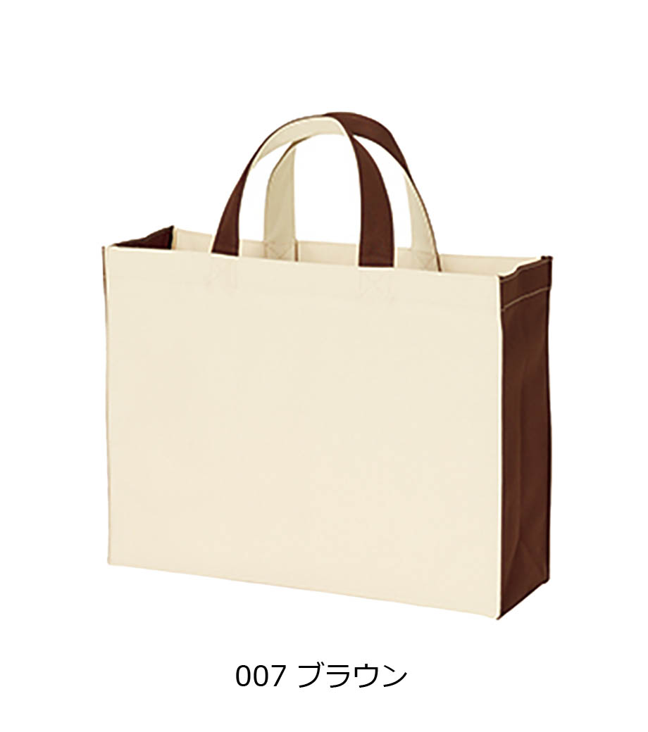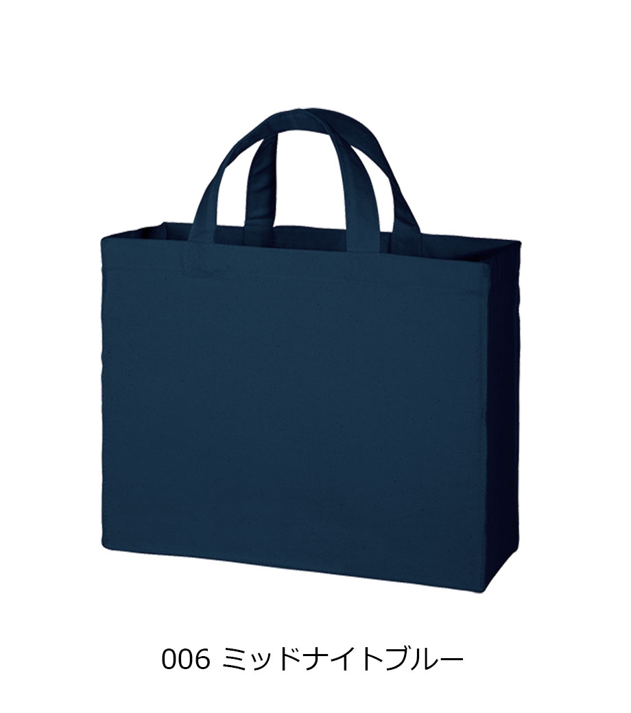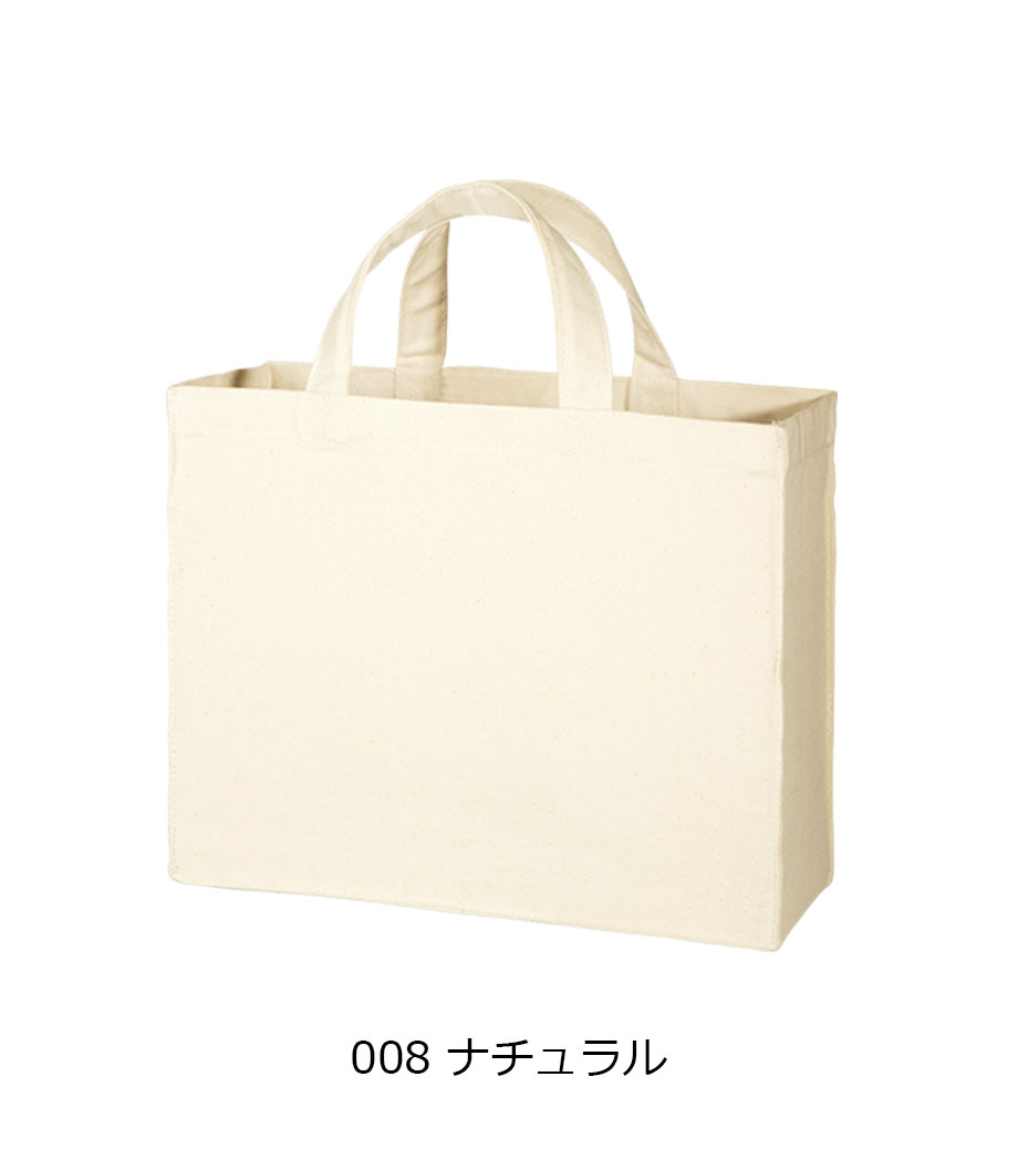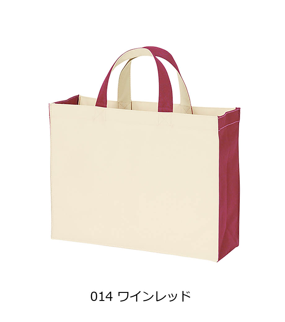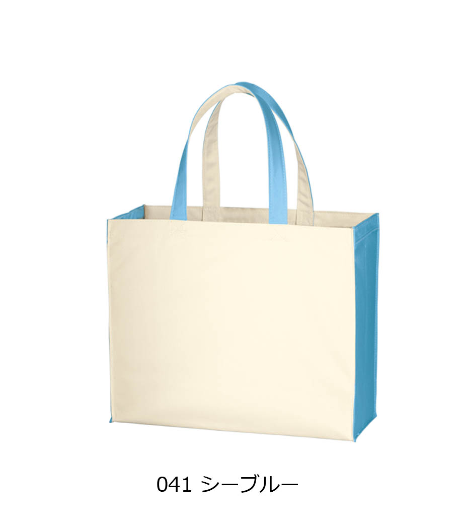 キャンバスカラーボトムトート(S) は、ツートンカラーがポイントのマチ付きランチバッグです。名入れ部分を広く取れるのが特徴で、 本体色をアクセントにオリジナルの名入れがしっかり目立ちます。