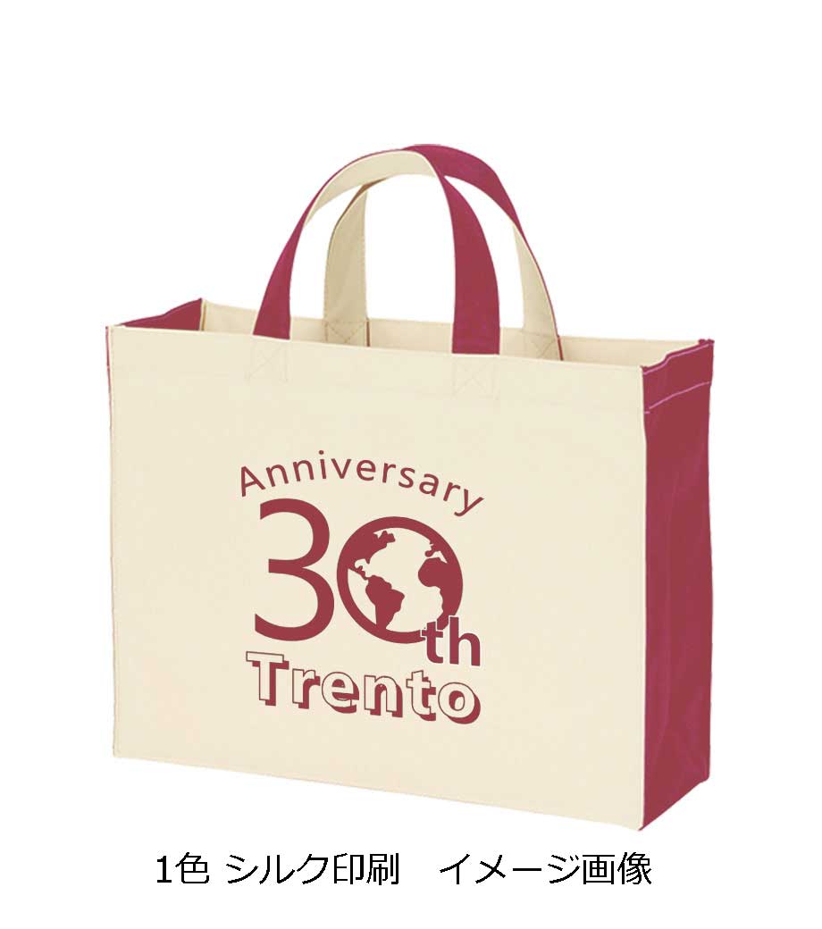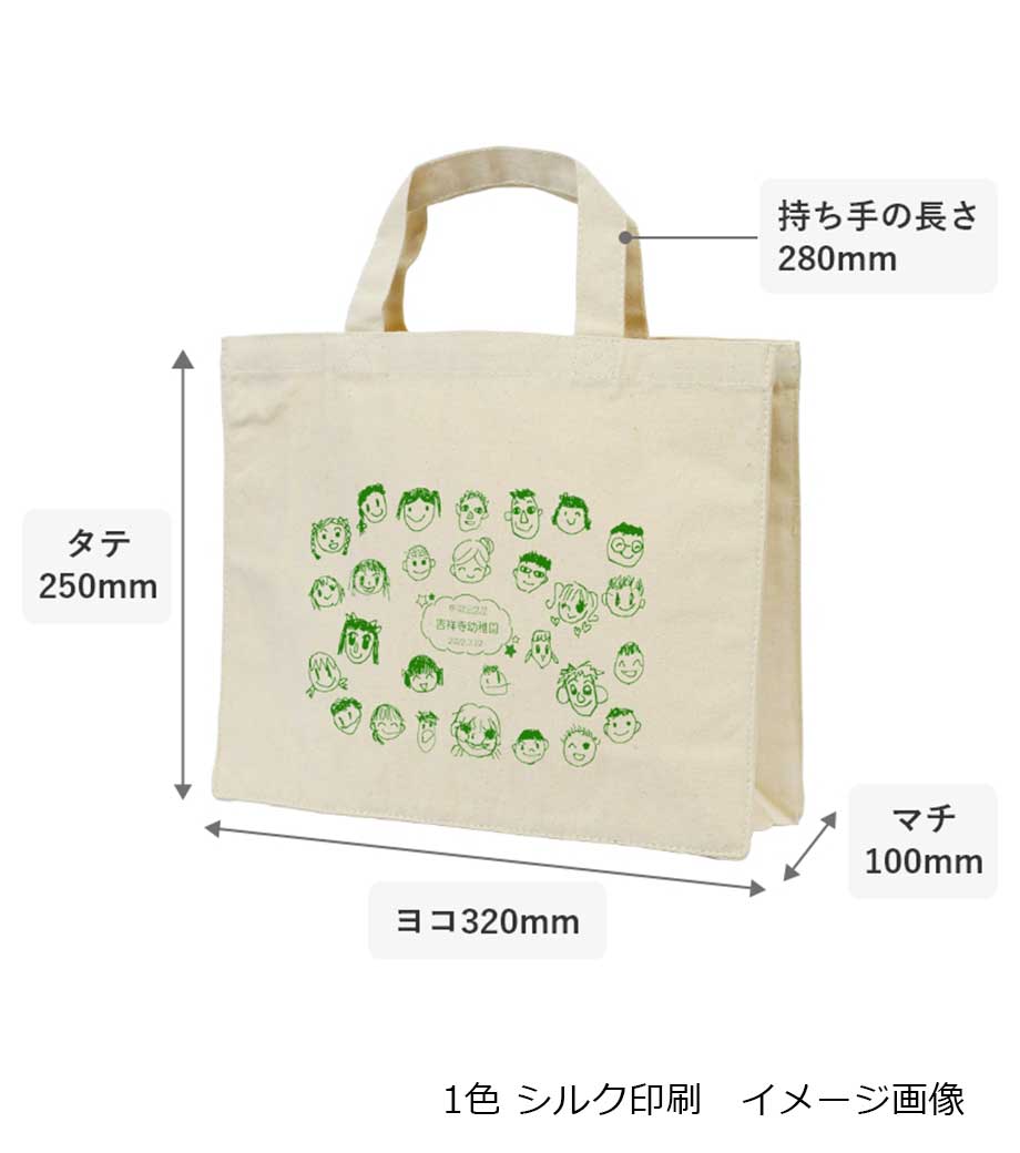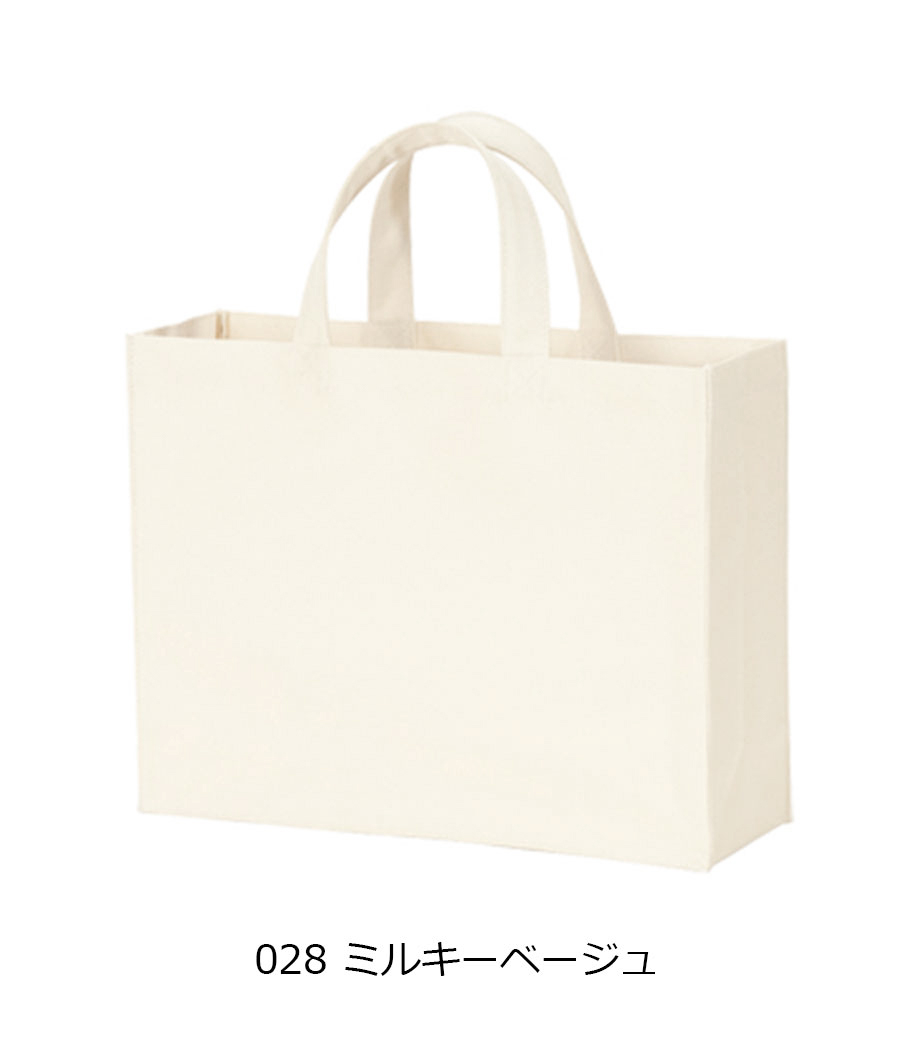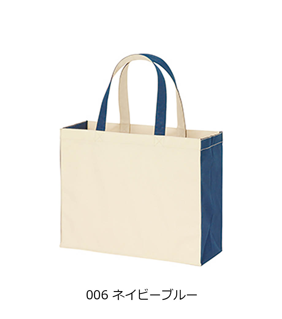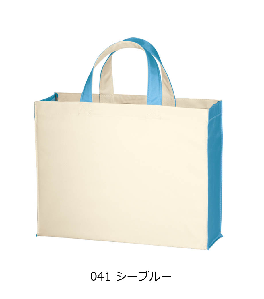 キャンバスカラーボトムトート(S) は、ツートンカラーがポイントのマチ付きランチバッグです。名入れ部分を広く取れるのが特徴で、 本体色をアクセントにオリジナルの名入れがしっかり目立ちます。