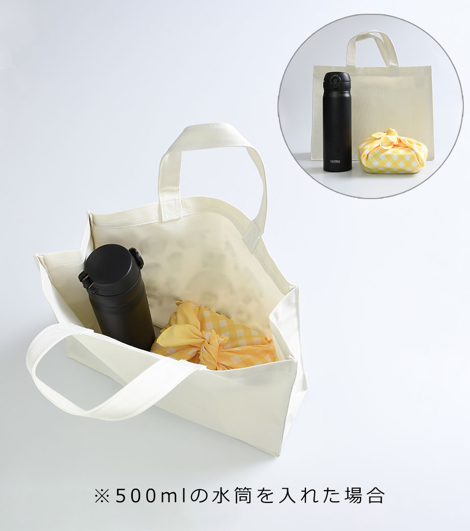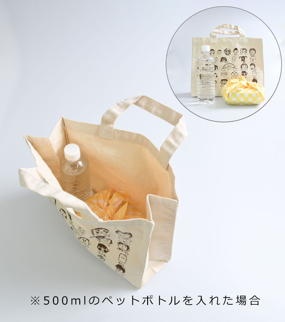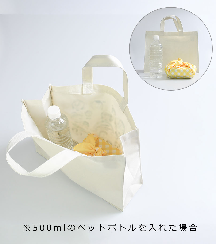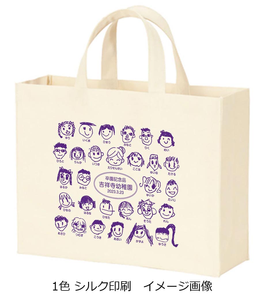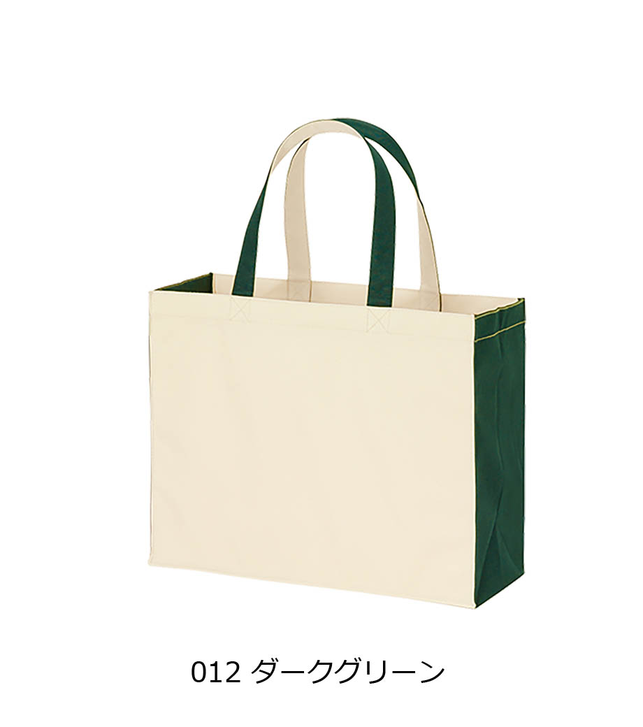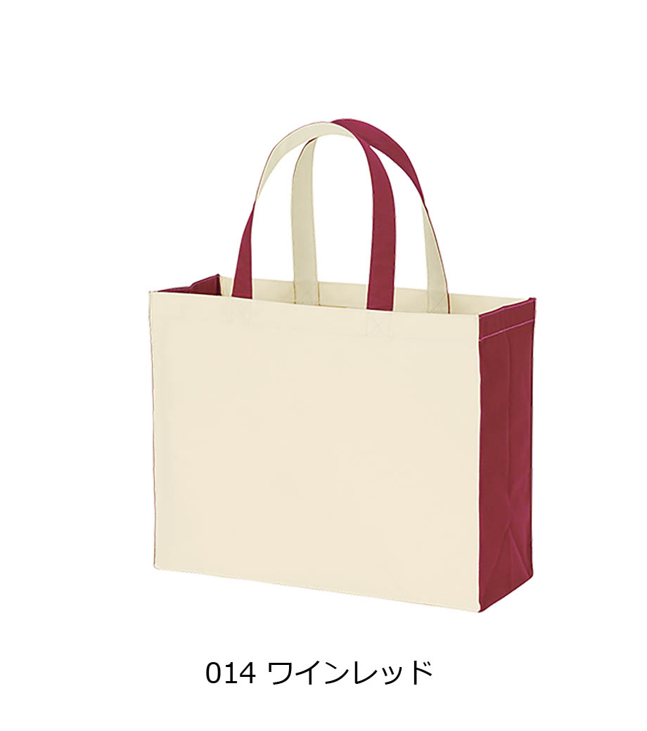 キャンバスカラーボトムトート(S) は、ツートンカラーがポイントのマチ付きランチバッグです。名入れ部分を広く取れるのが特徴で、 本体色をアクセントにオリジナルの名入れがしっかり目立ちます。