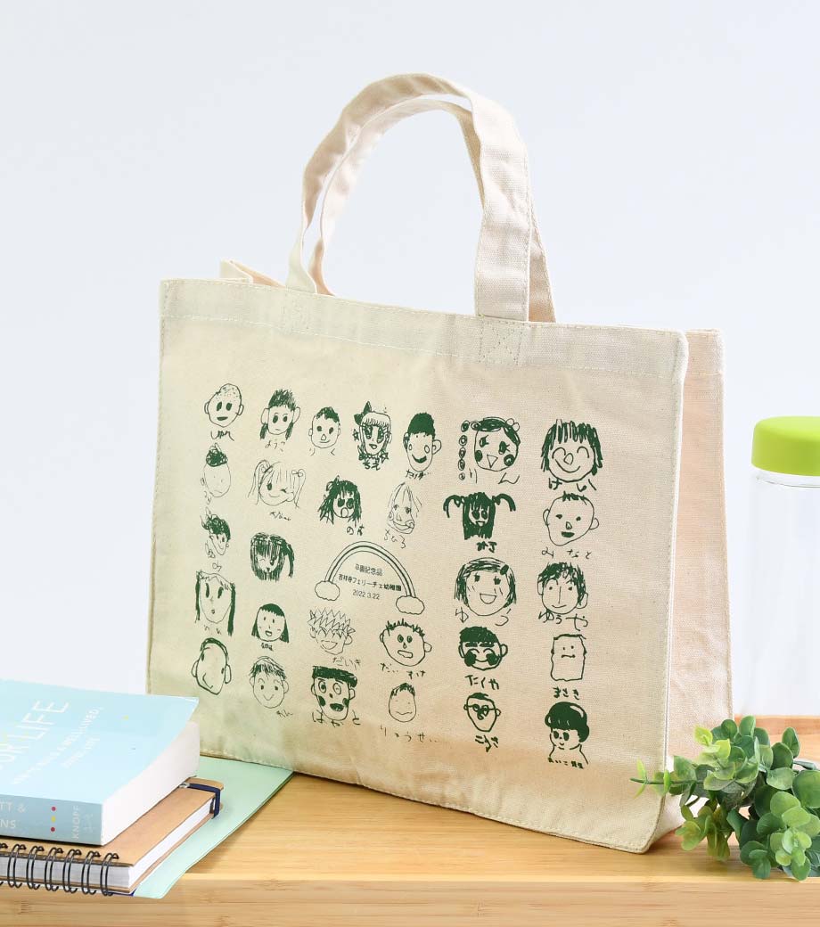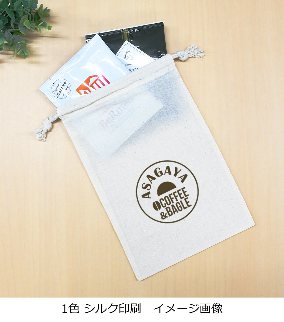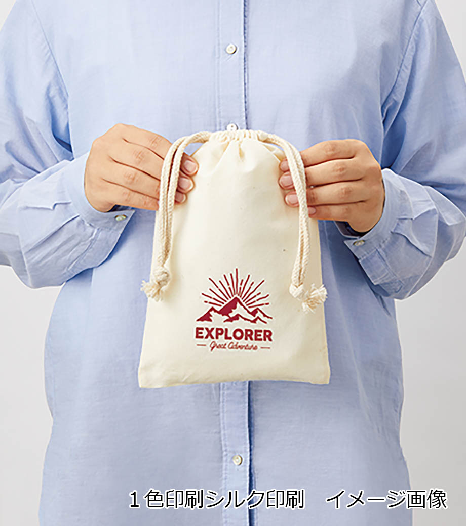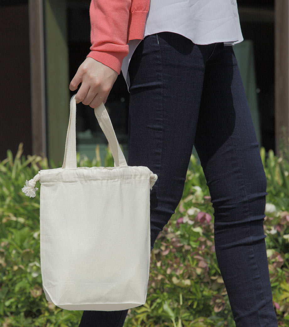 「コットンエコ巾着」は、口がキュッと閉まる巾着タイプのトートバッグ。通勤・通学のお弁当入れや、手軽なサブバッグにいかが。地球環境にやさしい無漂白コットンを使い、ナチュラルな風合いに仕上げました。