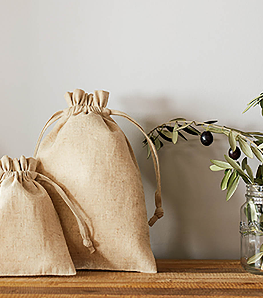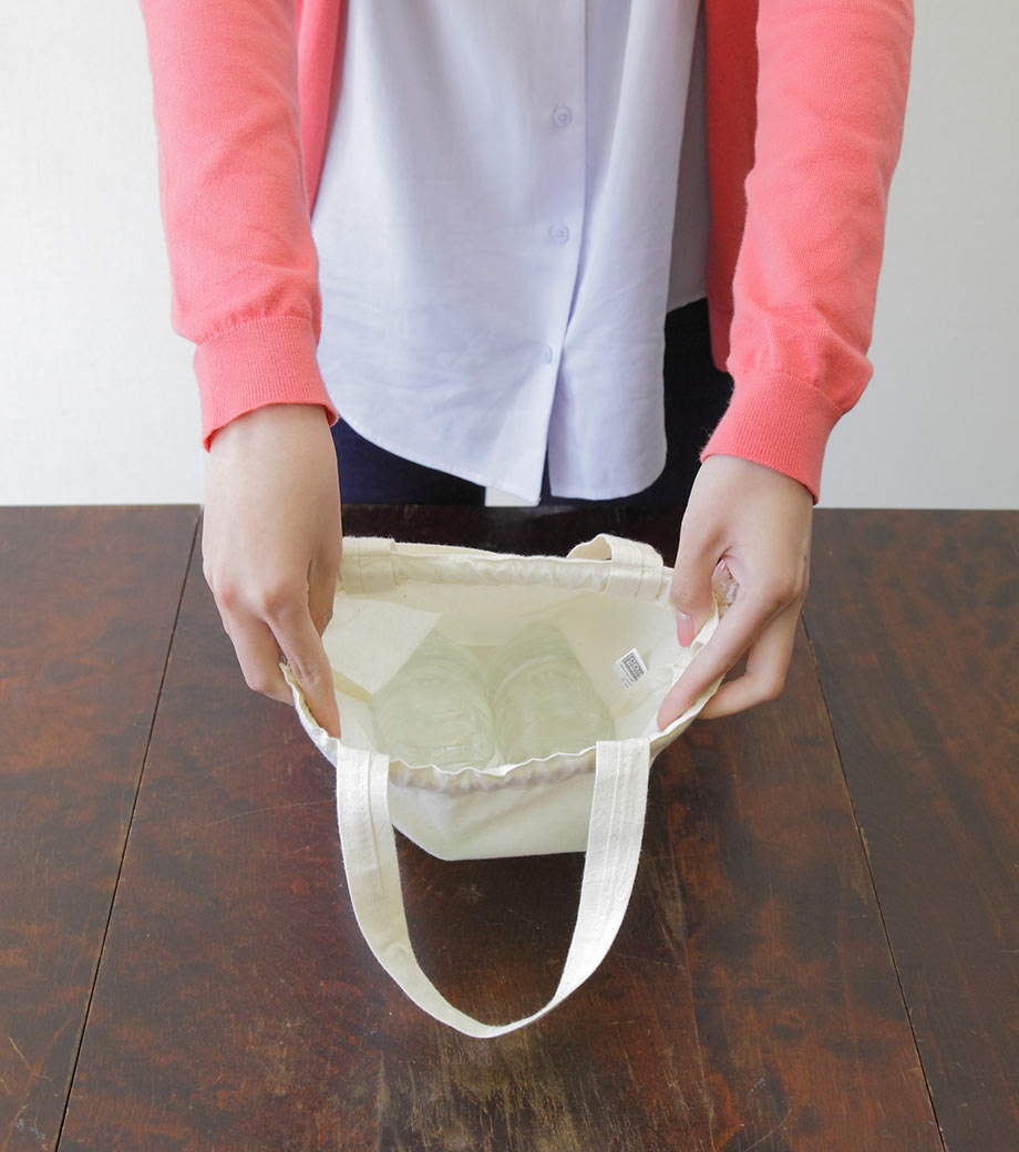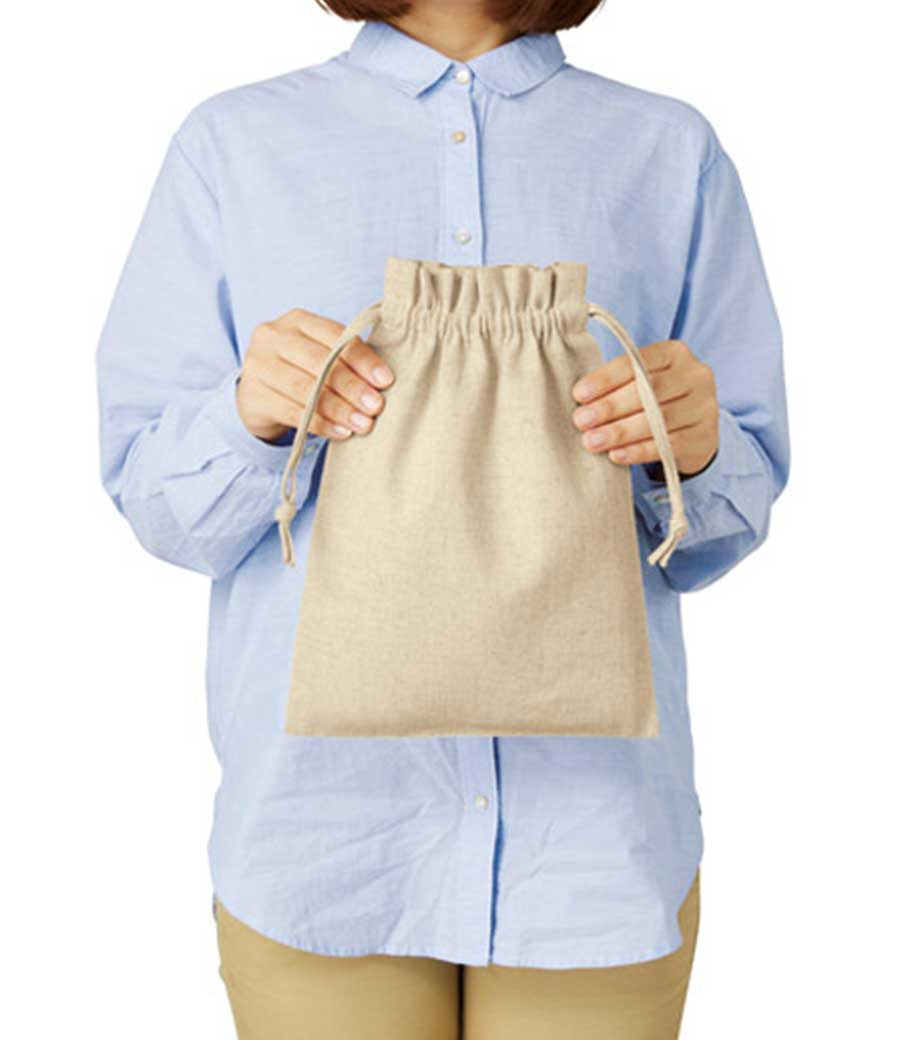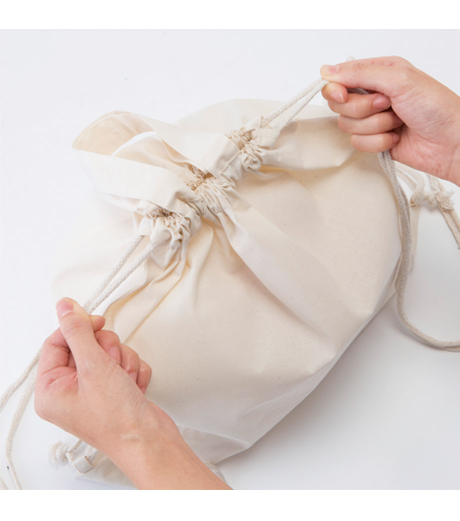巾着タイプだから使いやすい無漂白コットンのエコトート